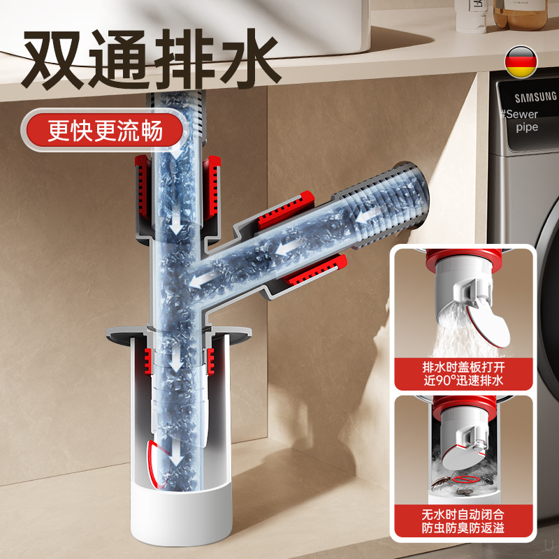 - 新升级【单接洗衣机/洗手盆】地漏/管道通用