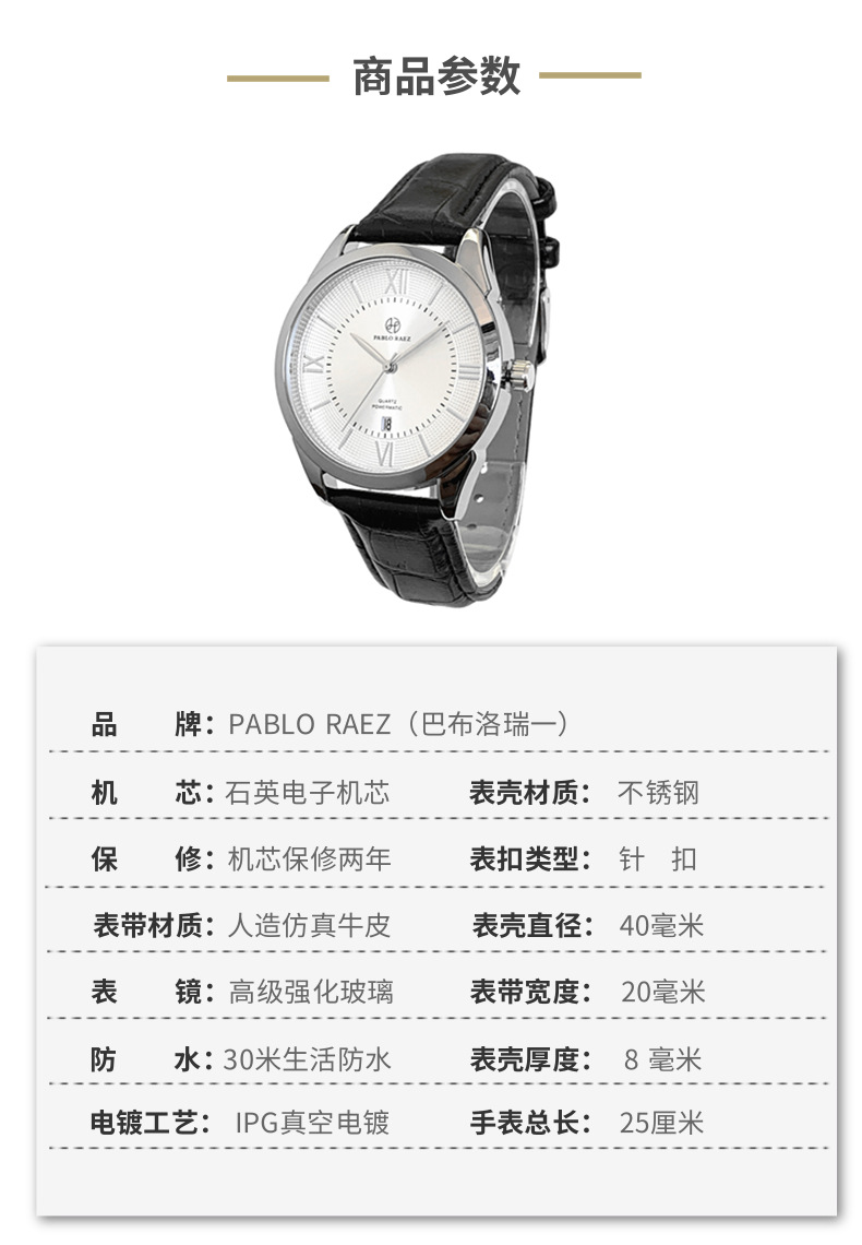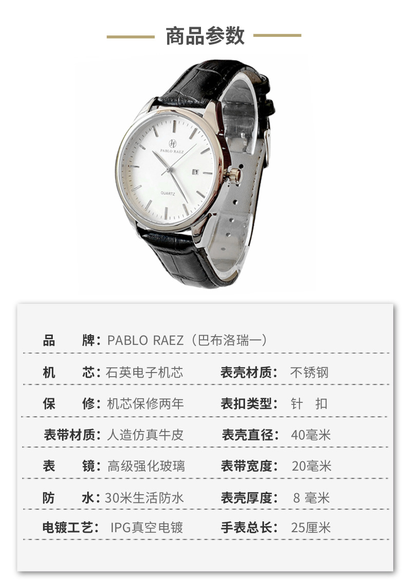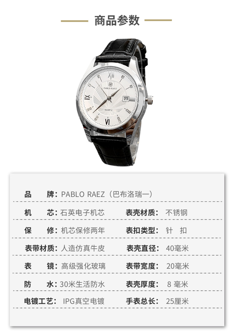 PABLORAEZ男手表军旗商务全自动防水石英表