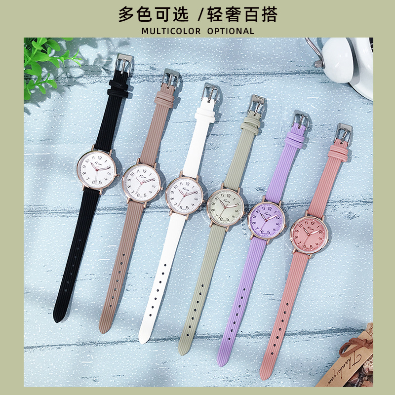 新款学生手表女初中生韩版简约i小清新数字夜光防水石英腕表