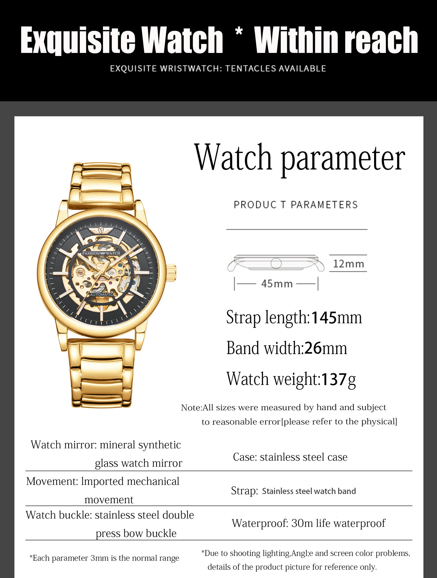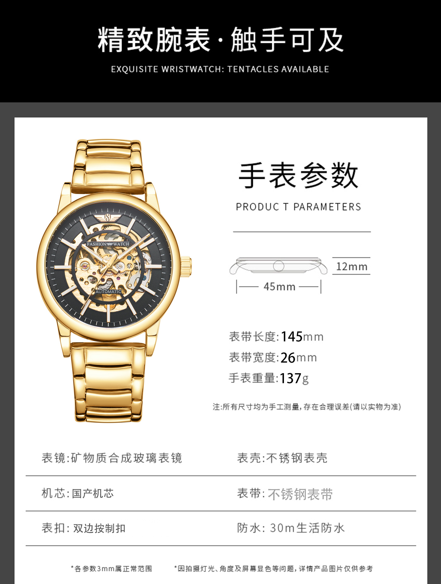 镂空男士手表全自动机械表博士通BESTWIN防水男表金腕表