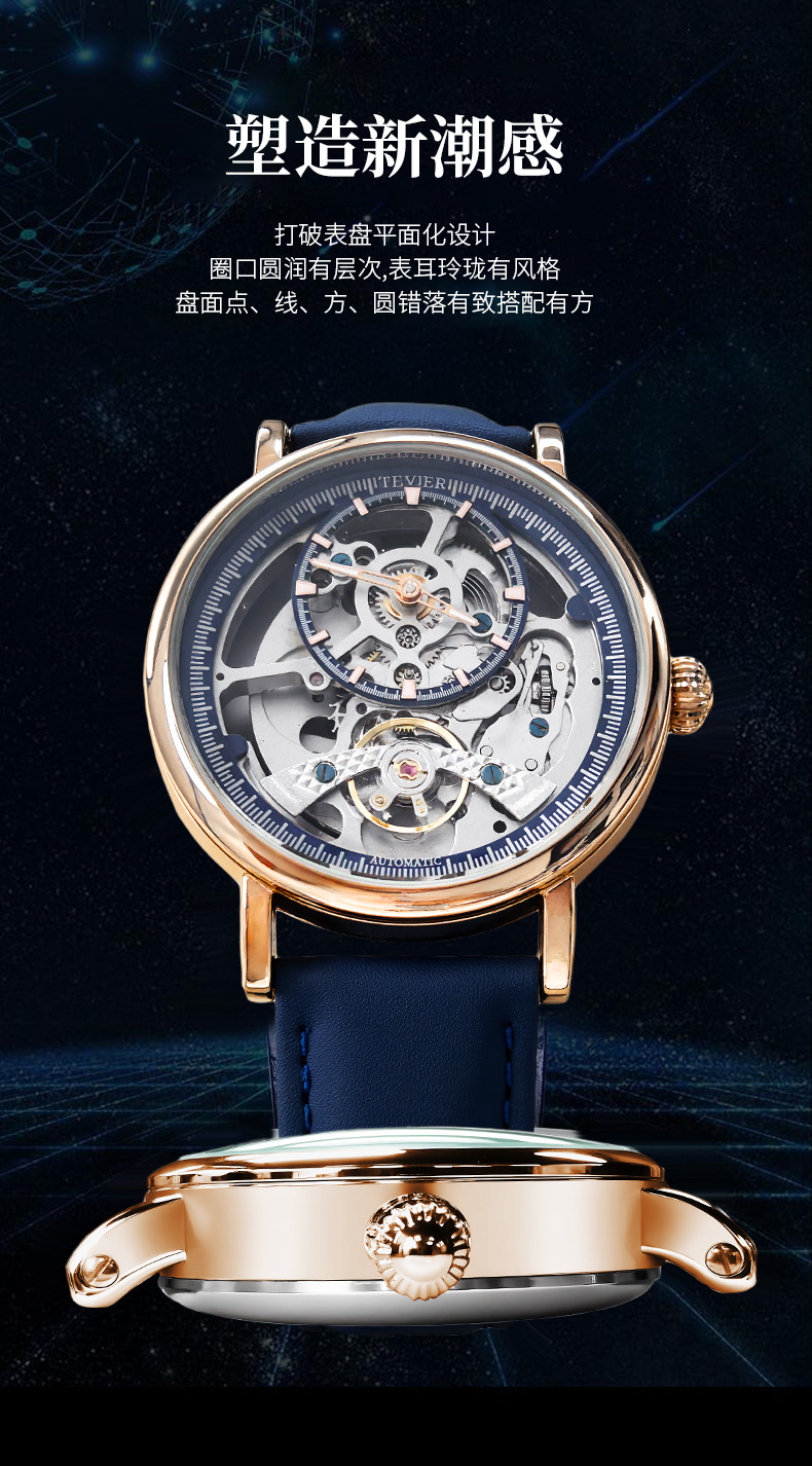 沃力仕新款时尚夜光男士全自动机械表潮流复古表男表