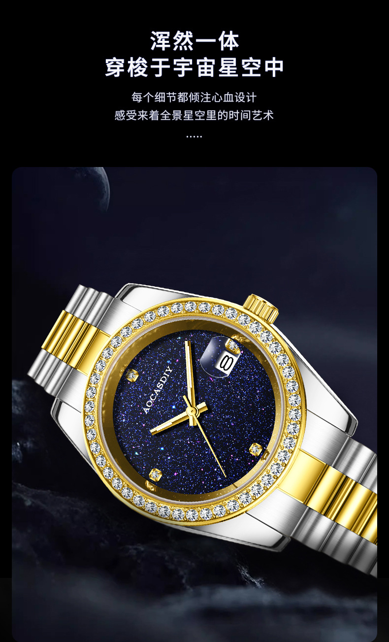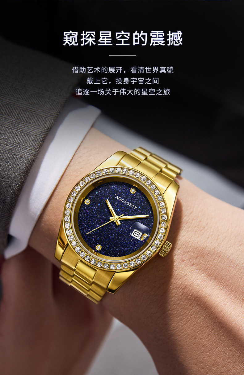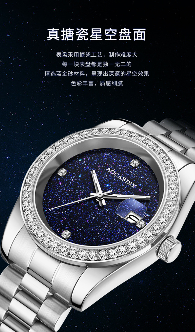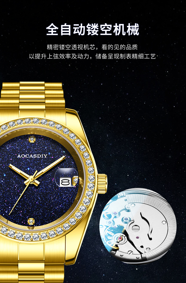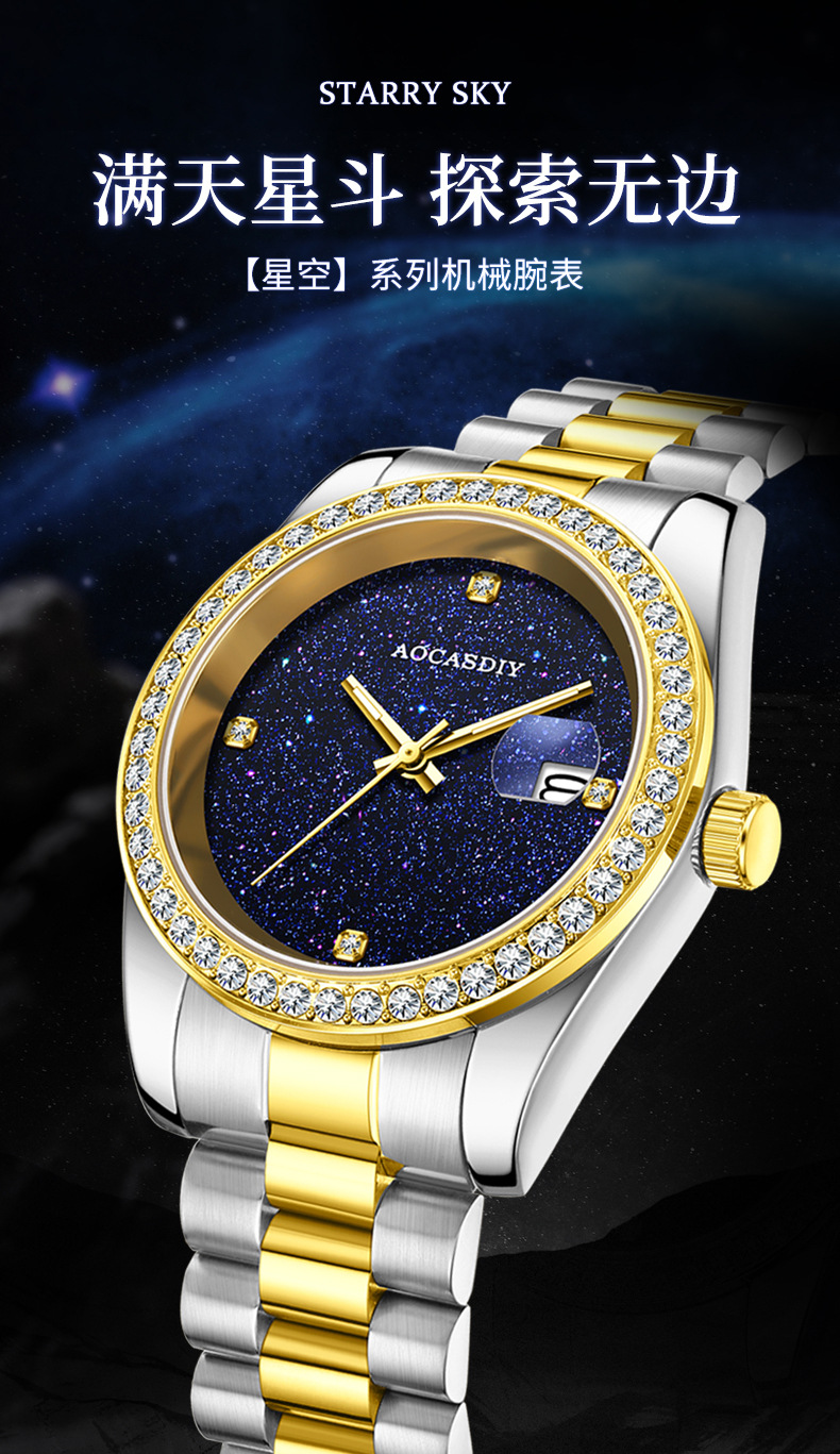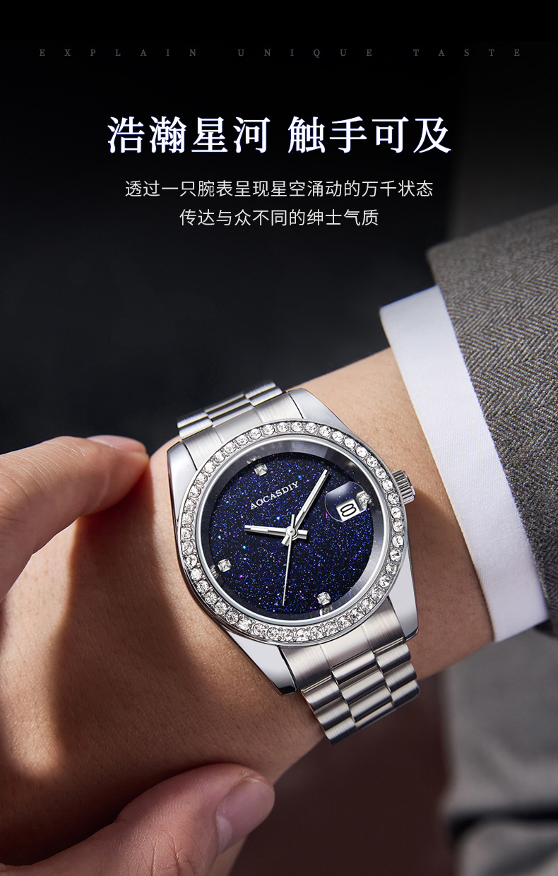 新款机械表男表时尚星空表盘防水钢带男士腕表watch