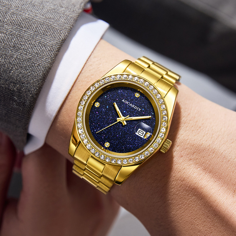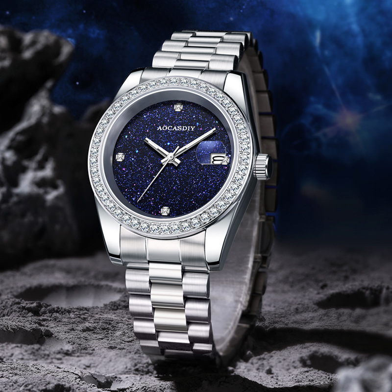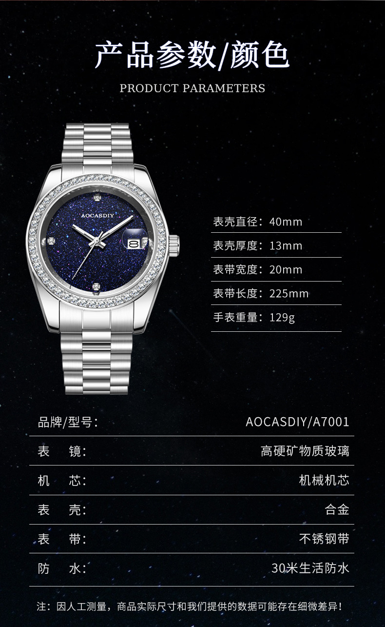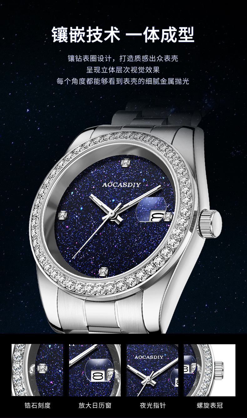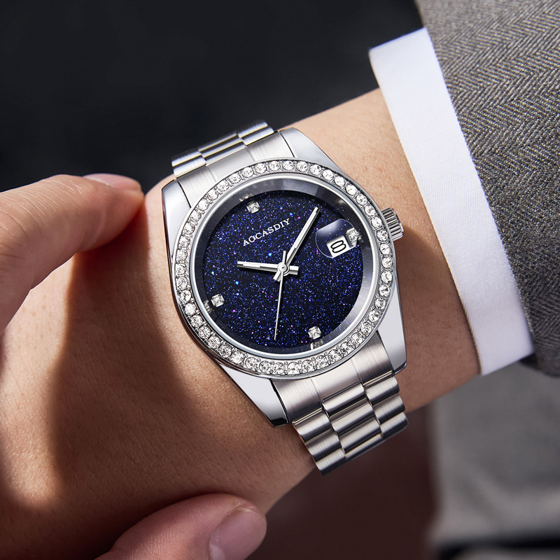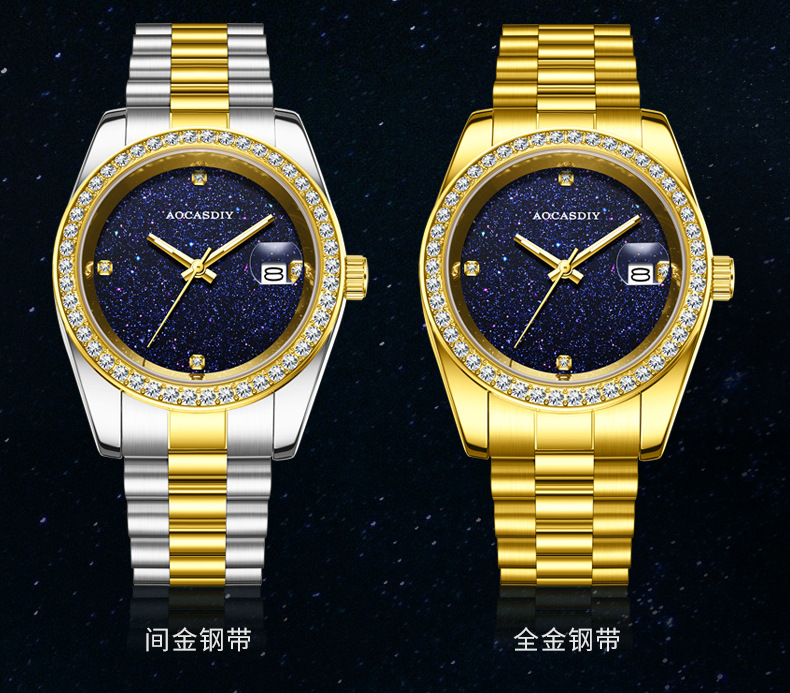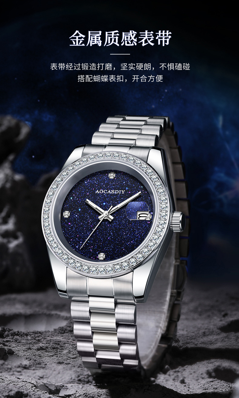 新款机械表男表时尚星空表盘防水钢带男士腕表watch