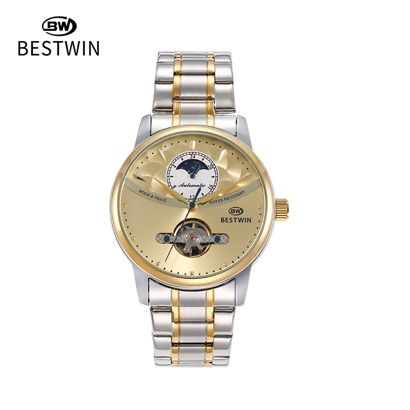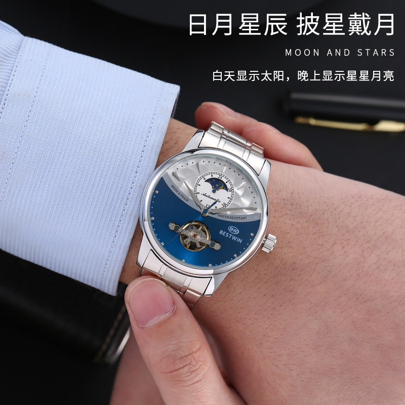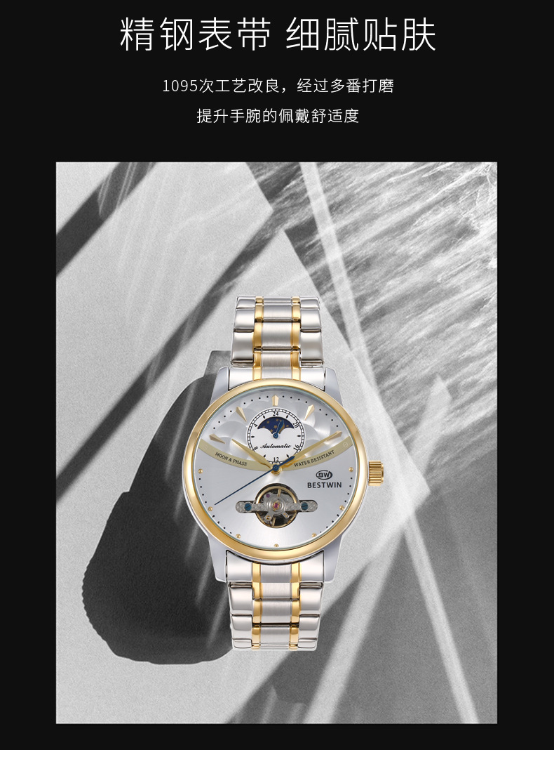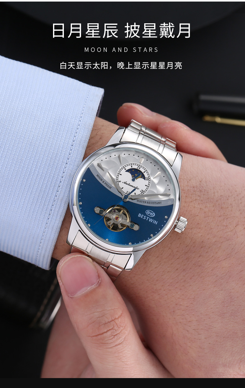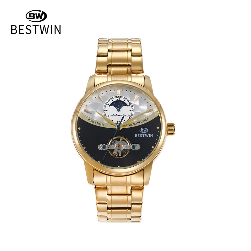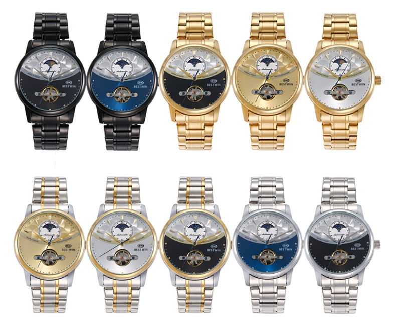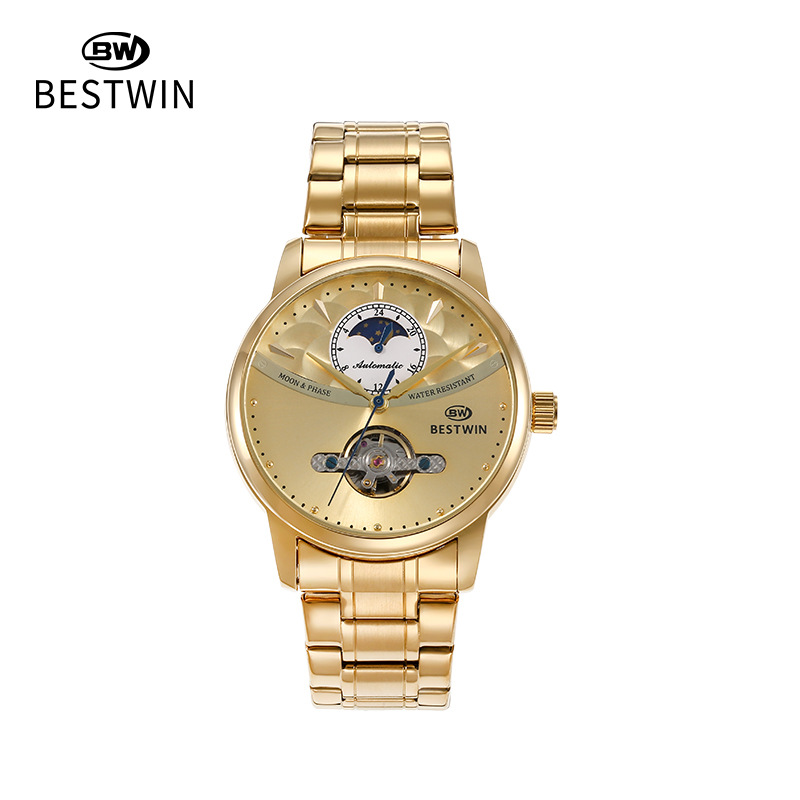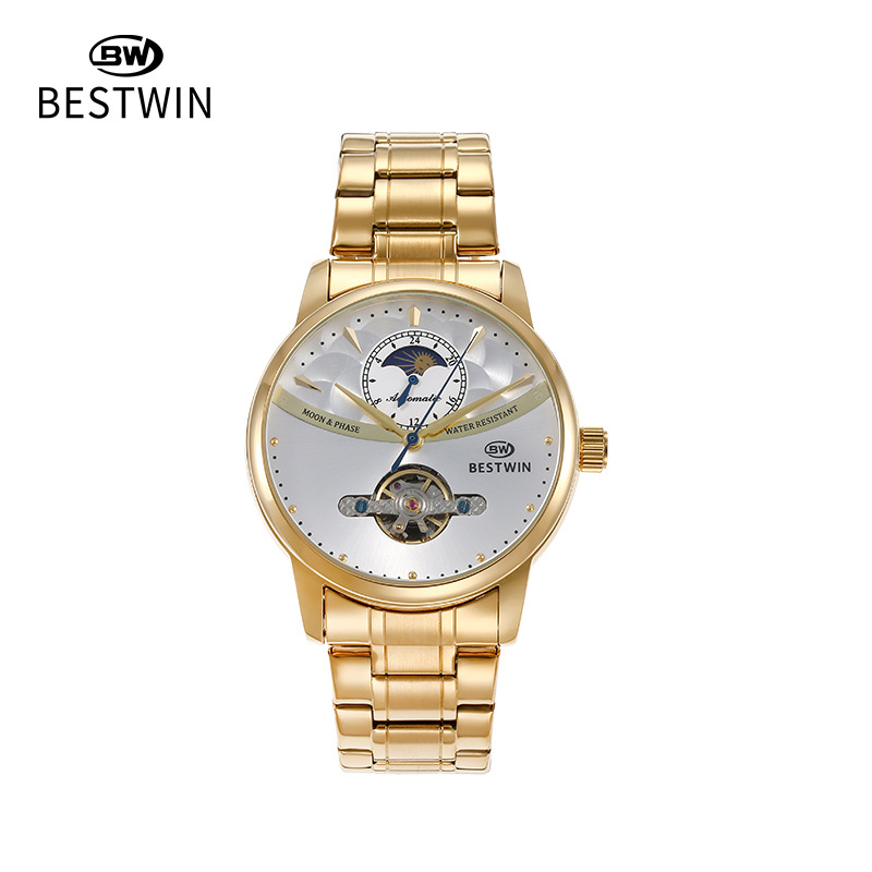 机械表镂空合金男士手表男表博士通BESTWIN蝴蝶双按扣