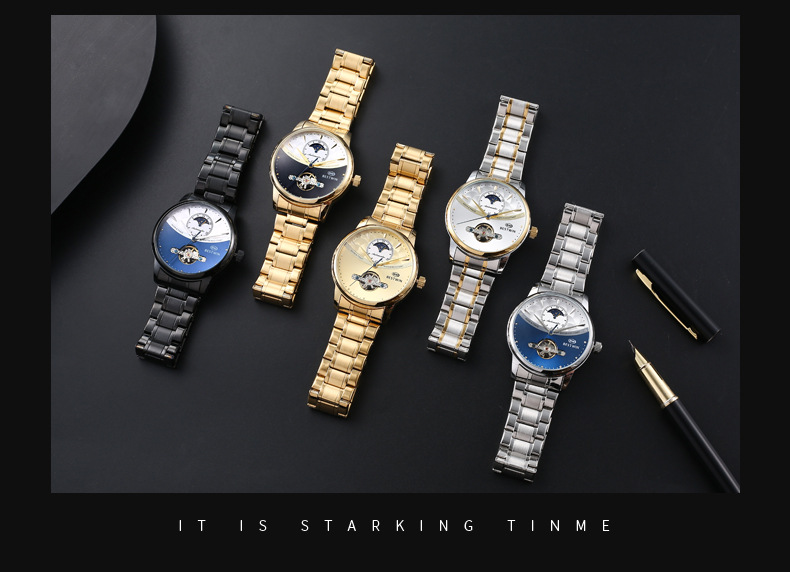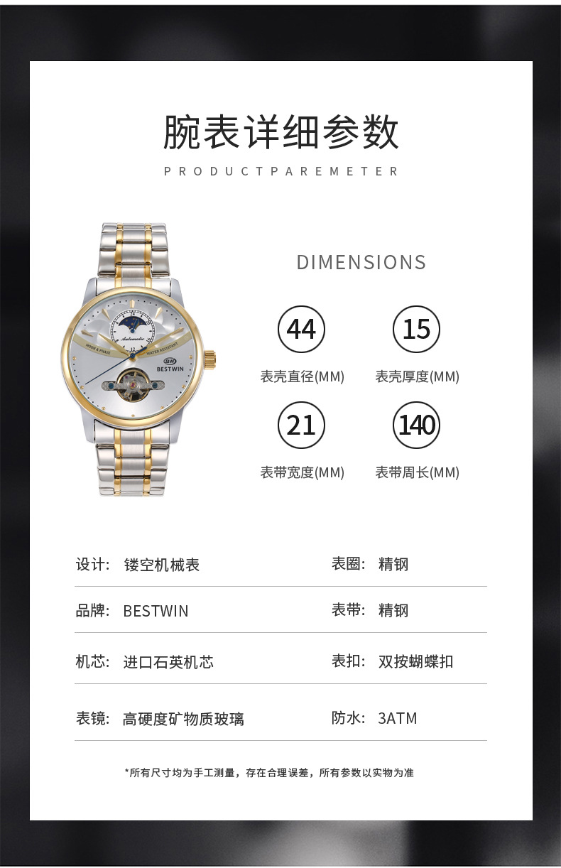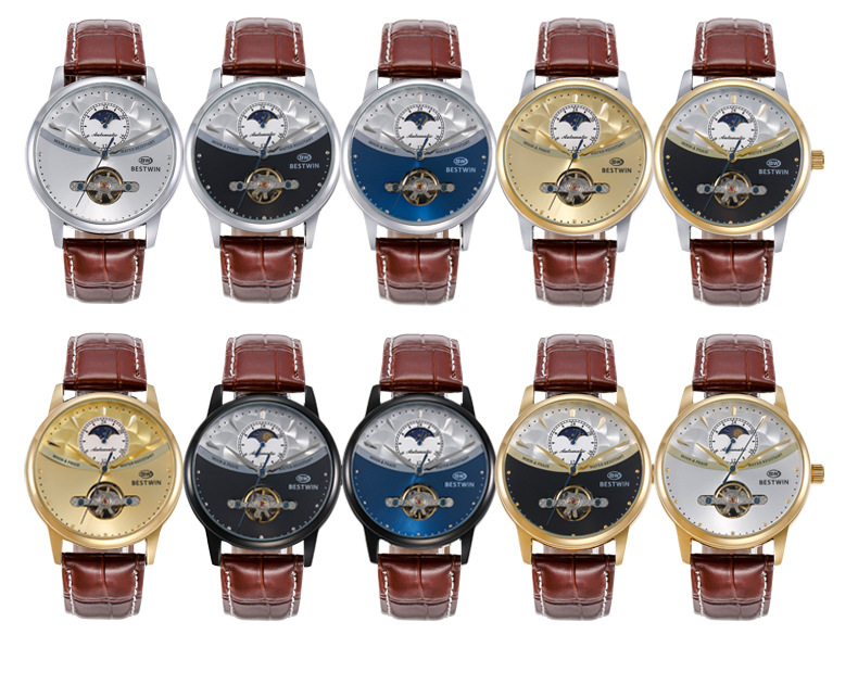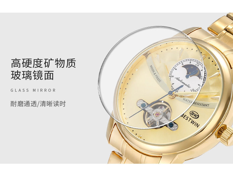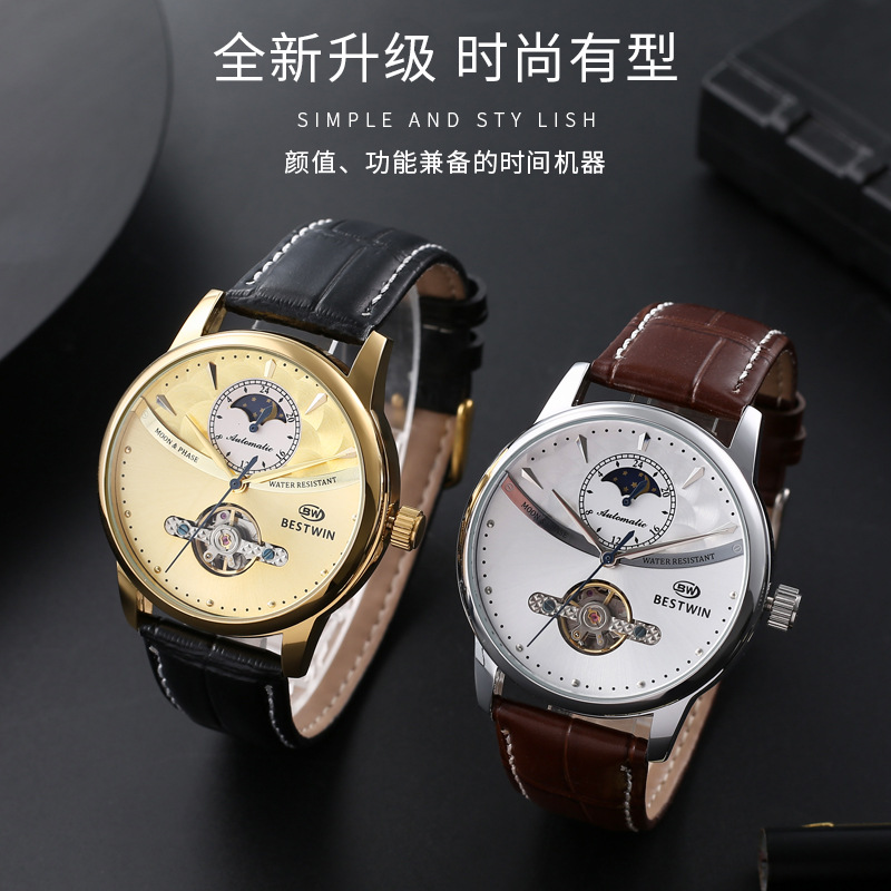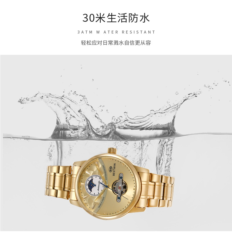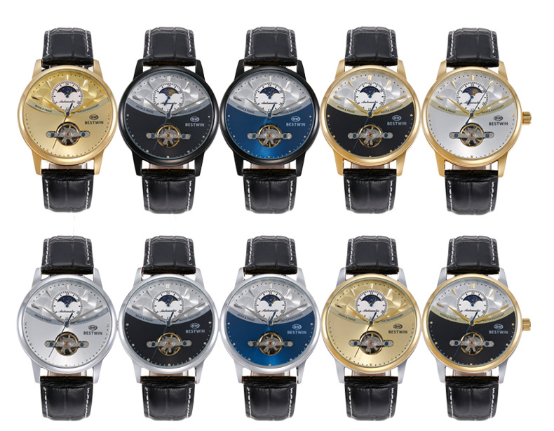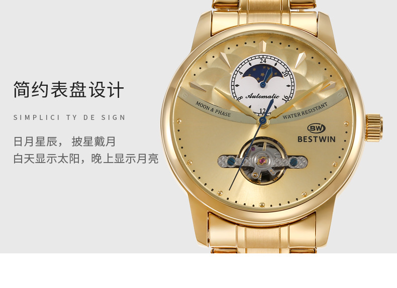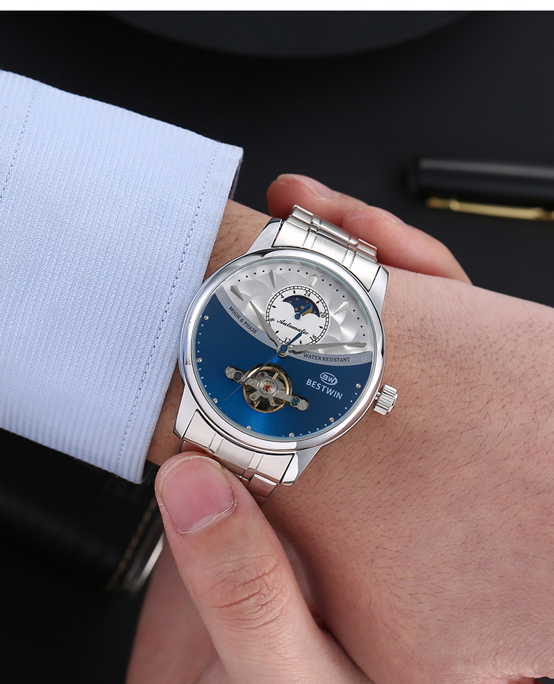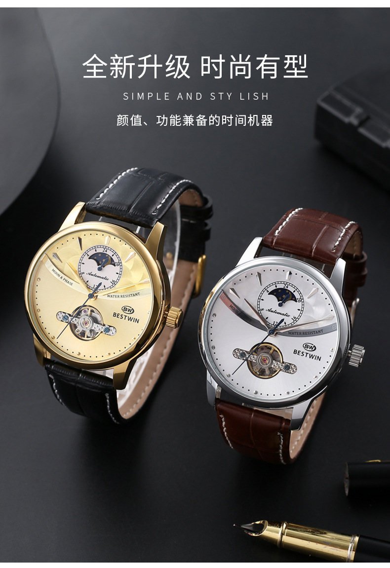 机械表镂空合金男士手表男表博士通BESTWIN蝴蝶双按扣
