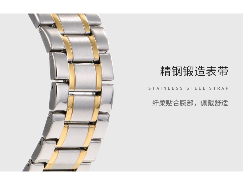 沃力仕情侣表日历钢带防水夜光经典男士手表石英表男表