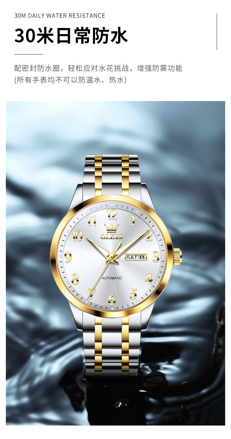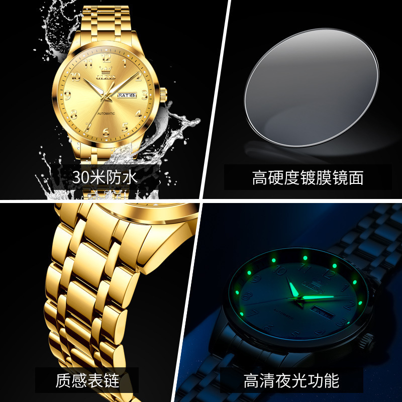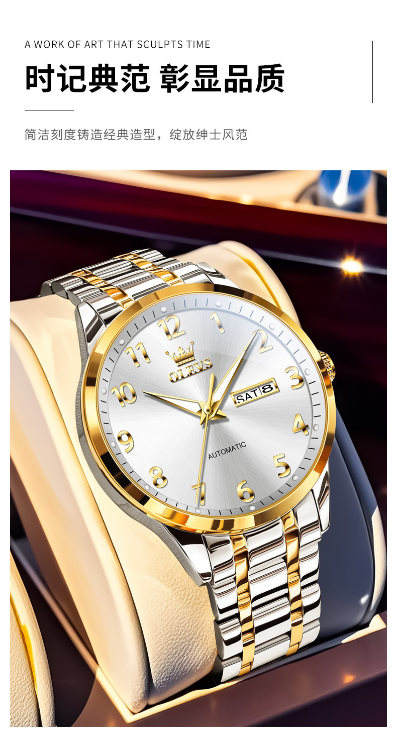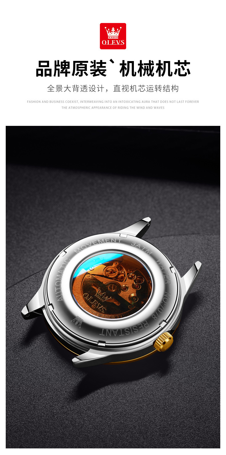 欧利时olevs品牌新款简约数字商务全自动机械表男士手表