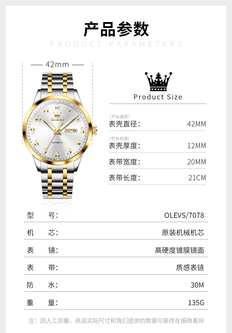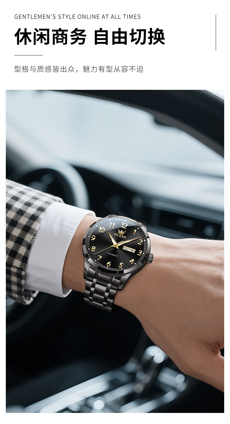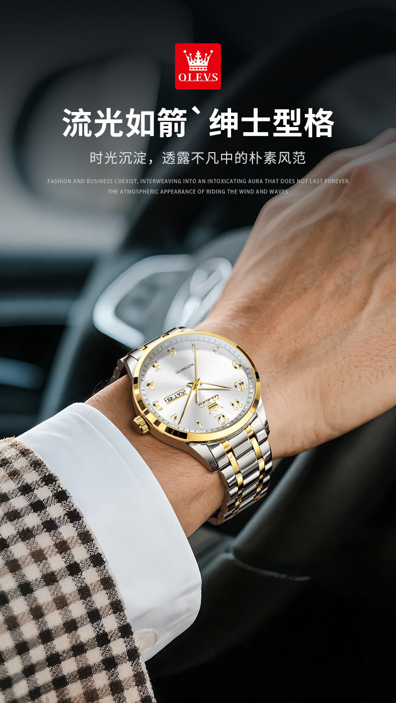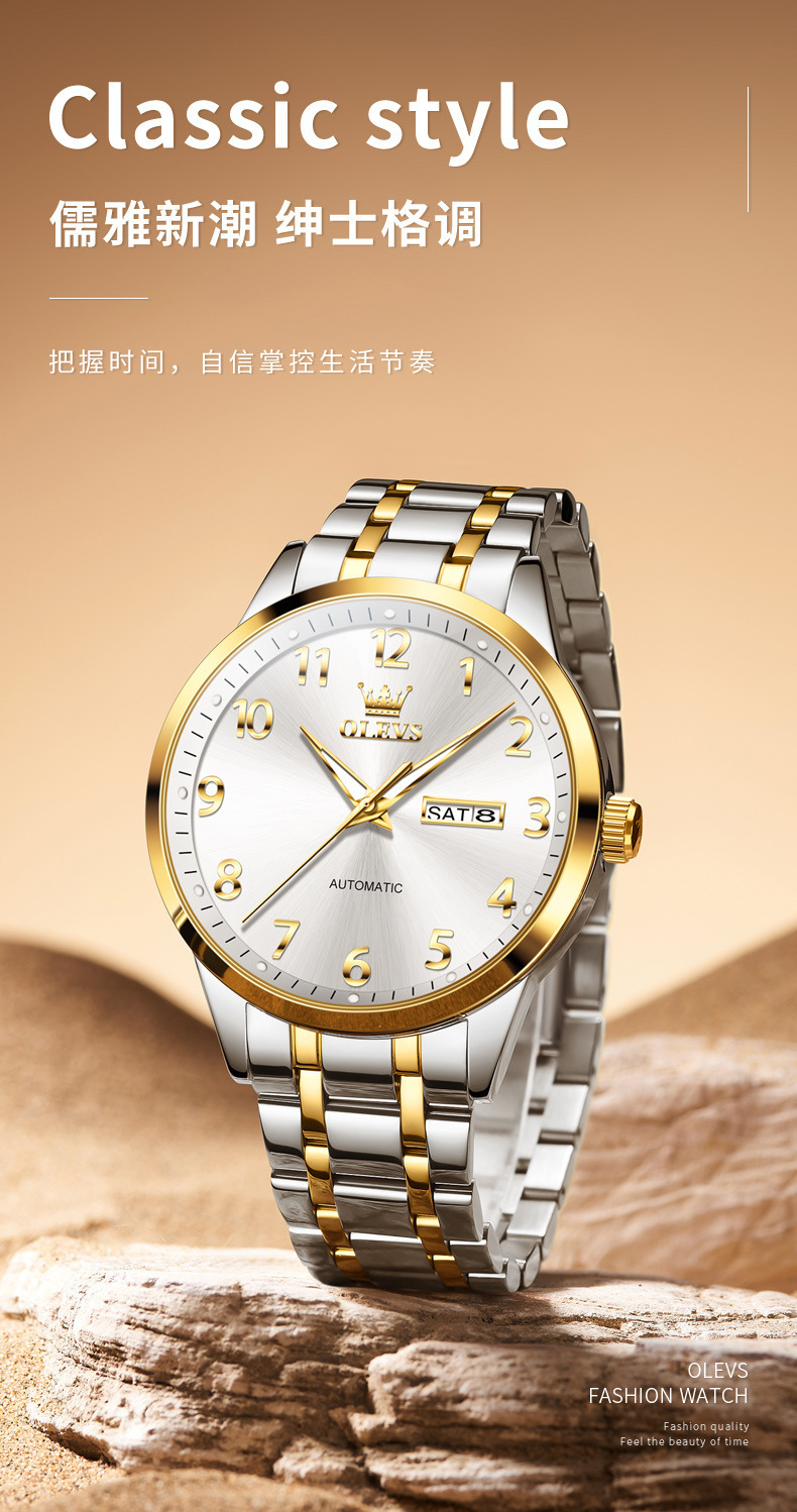 欧利时olevs品牌新款简约数字商务全自动机械表男士手表