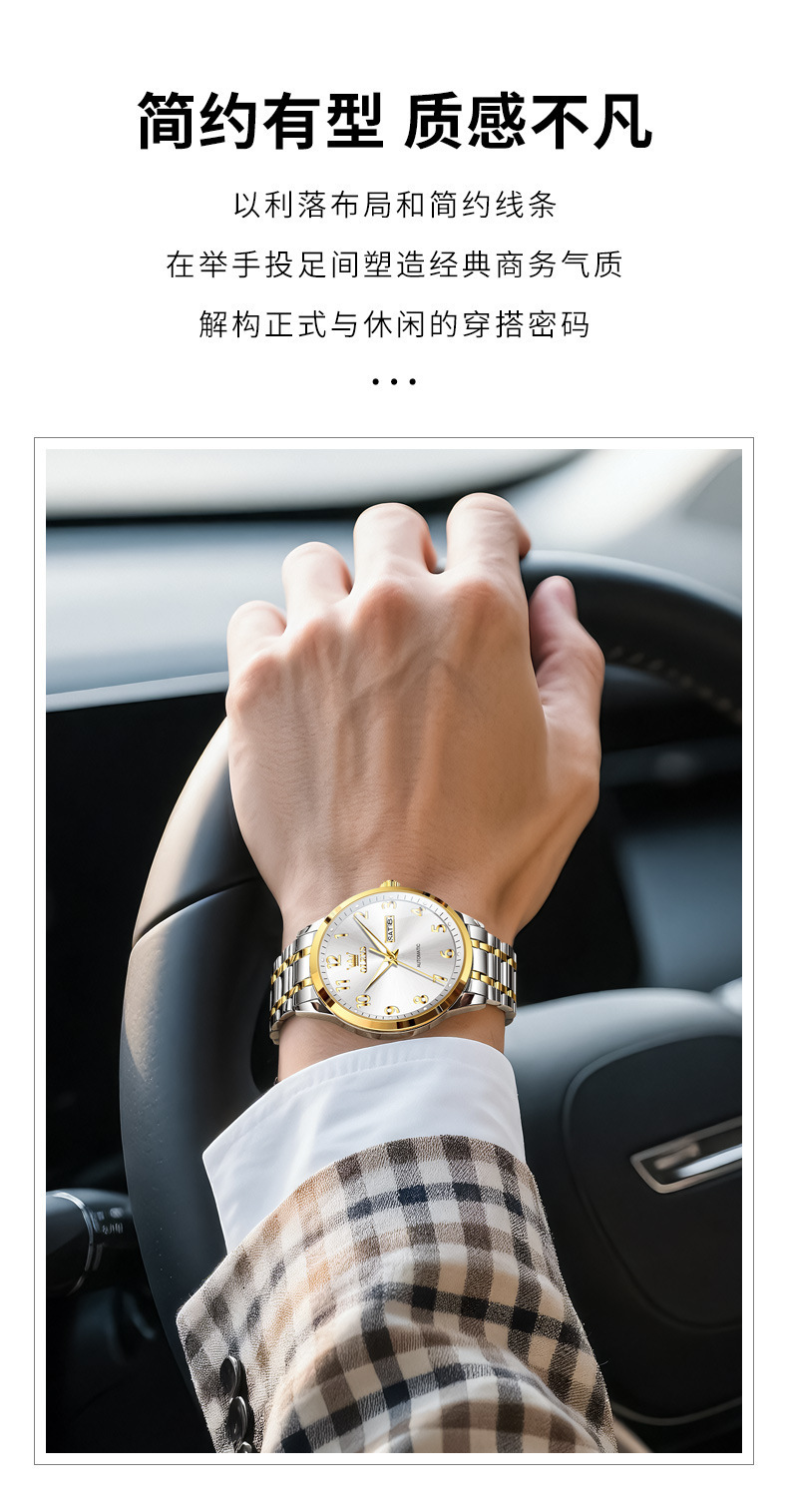 瑞之缘新款多功能防水玻璃石英表实心钢带时尚商务高级感男士手表