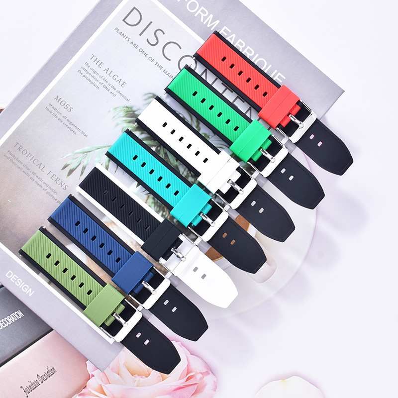 双色硅胶表带机械石英表高端品牌平替手表带22mm硅胶表带