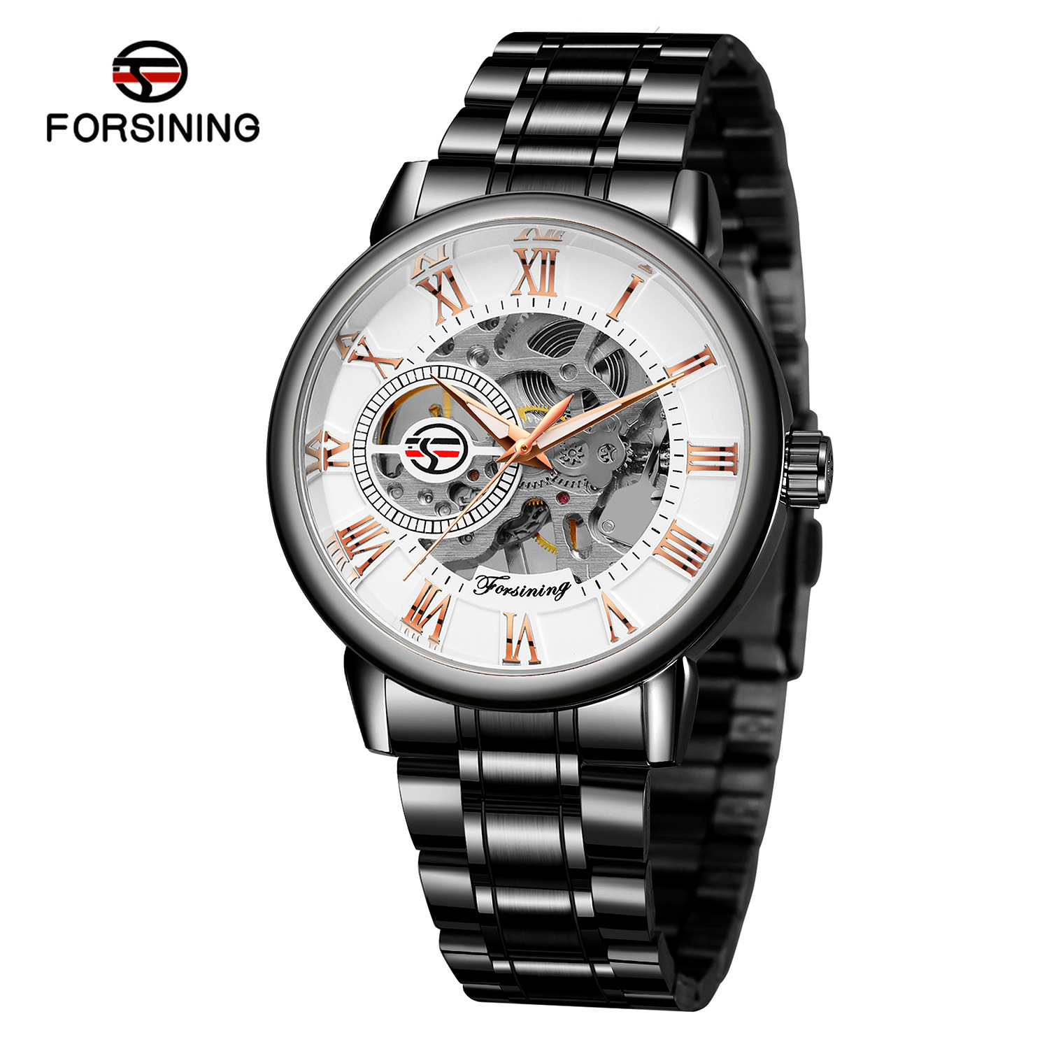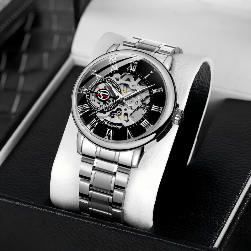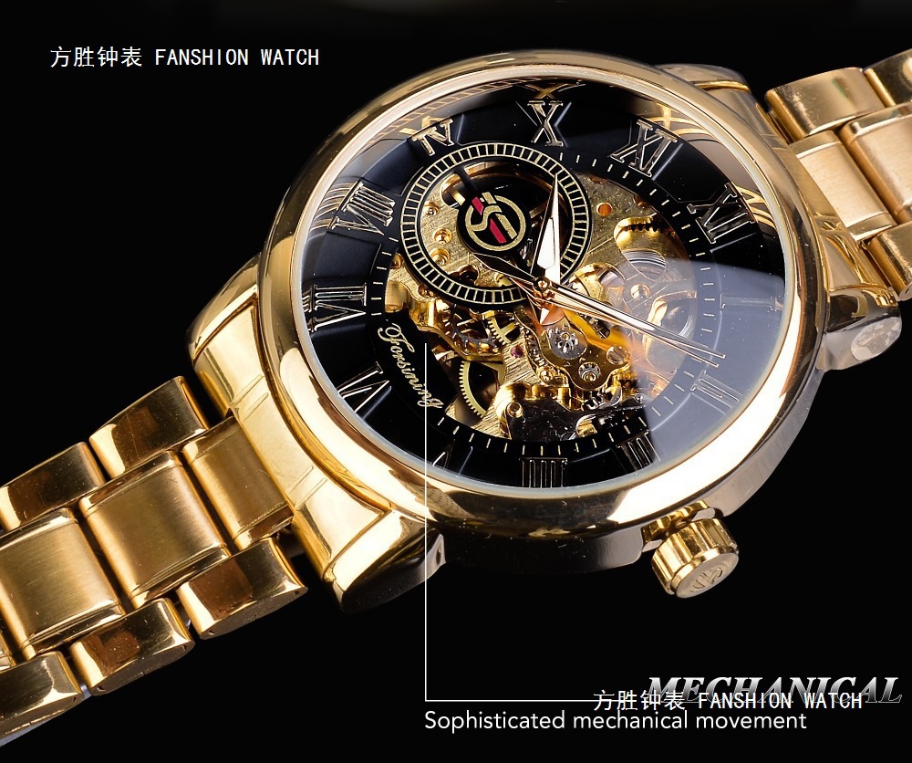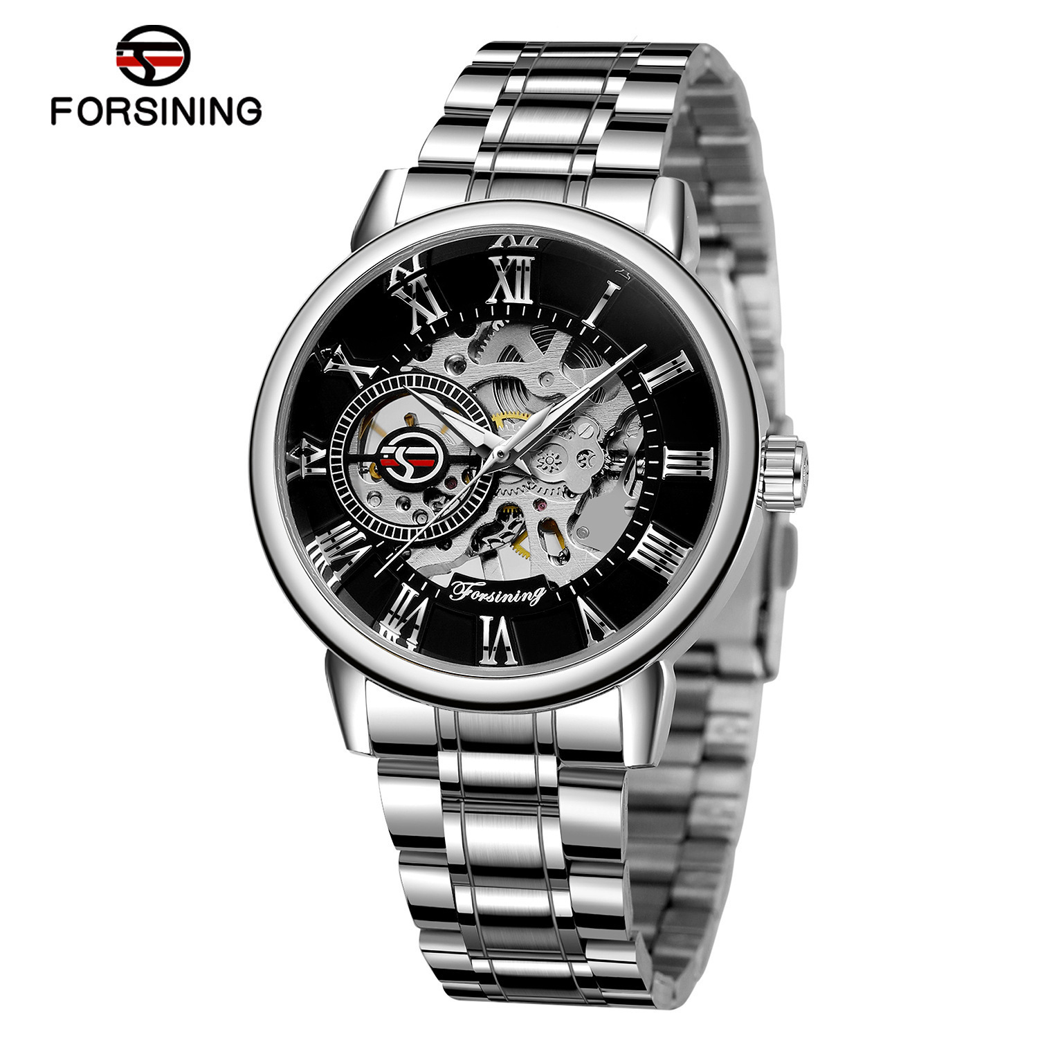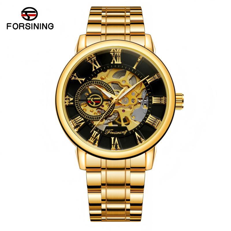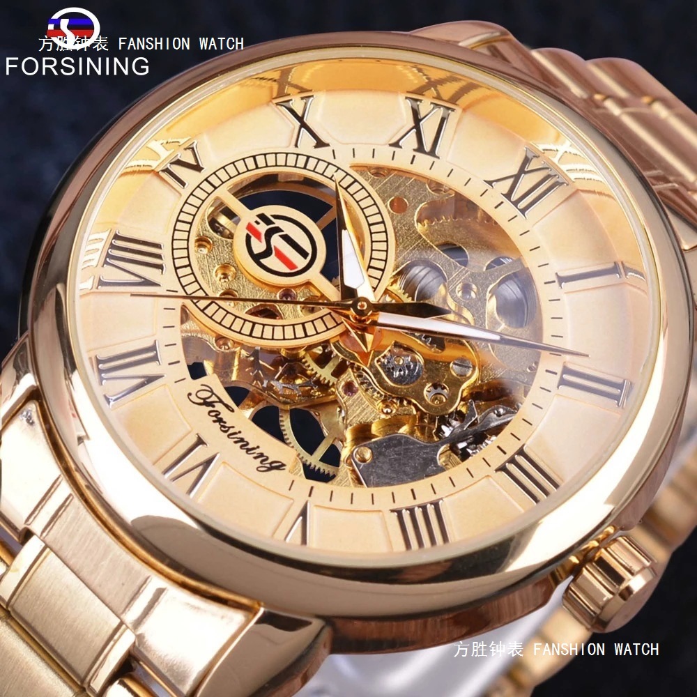 FORSINING男士时尚罗马字机械手表镂空钢带全自动机械表