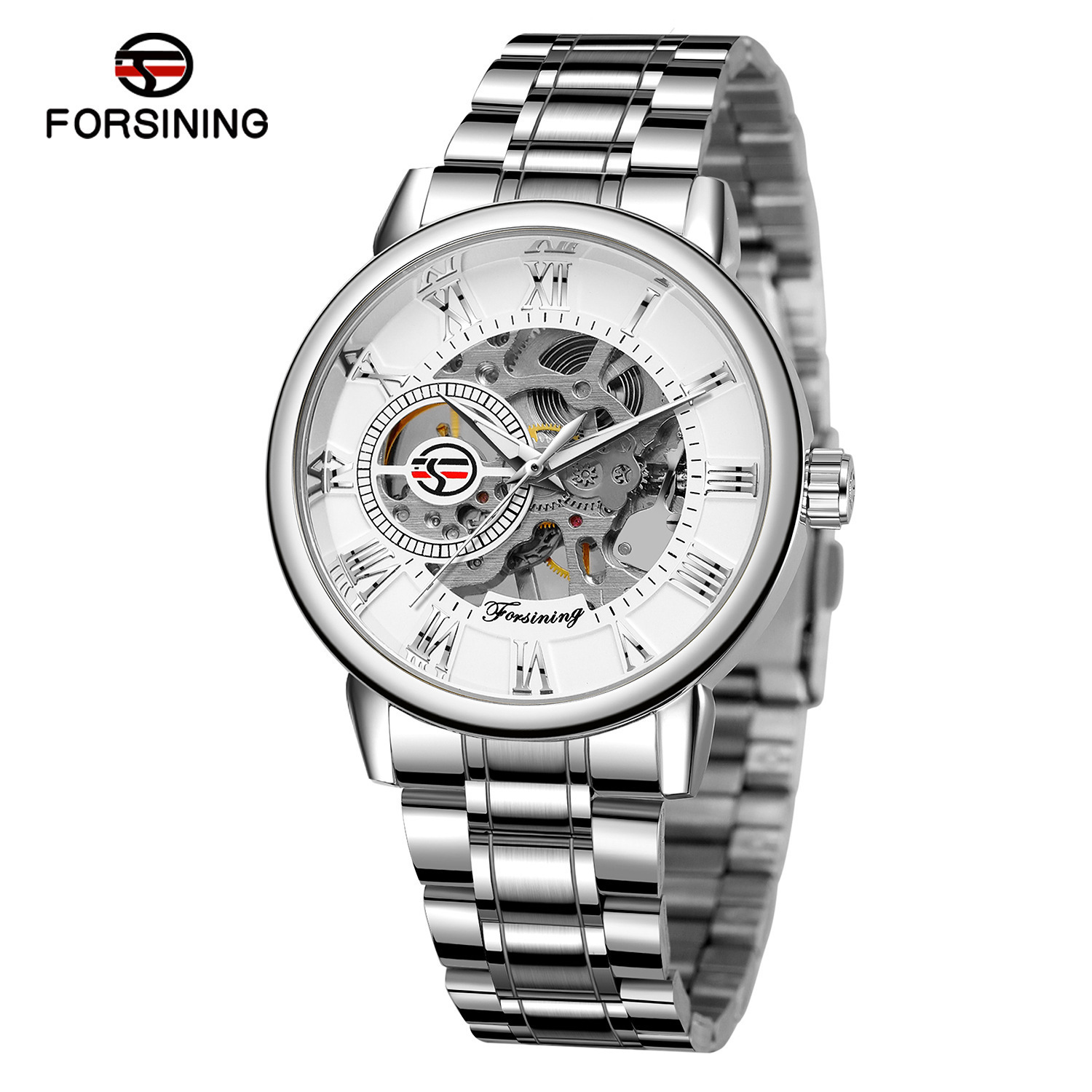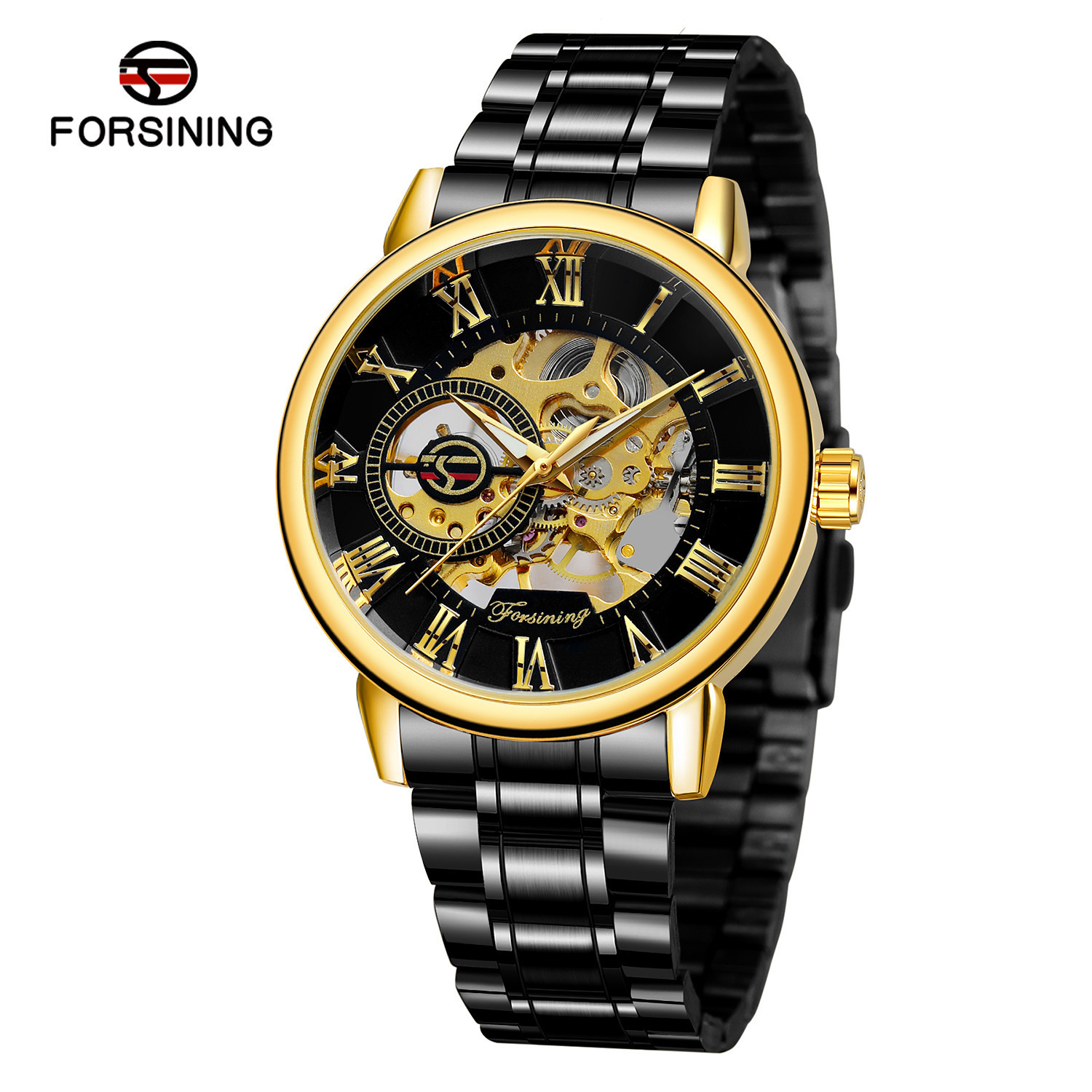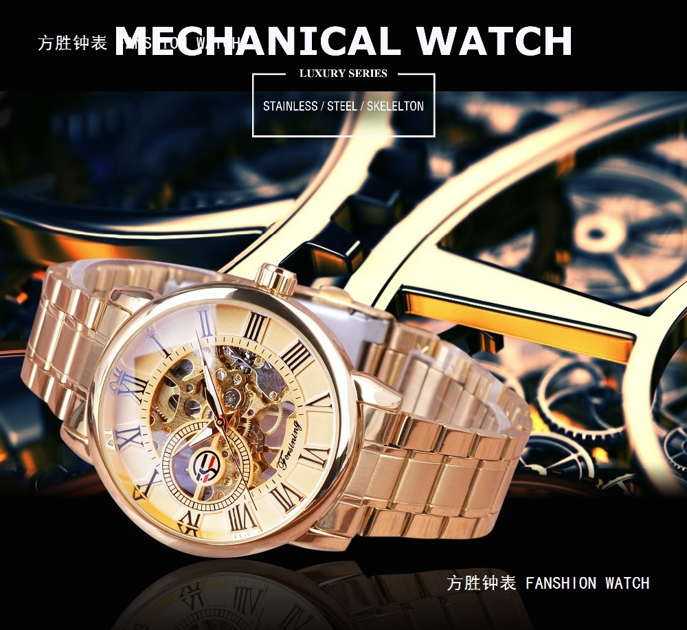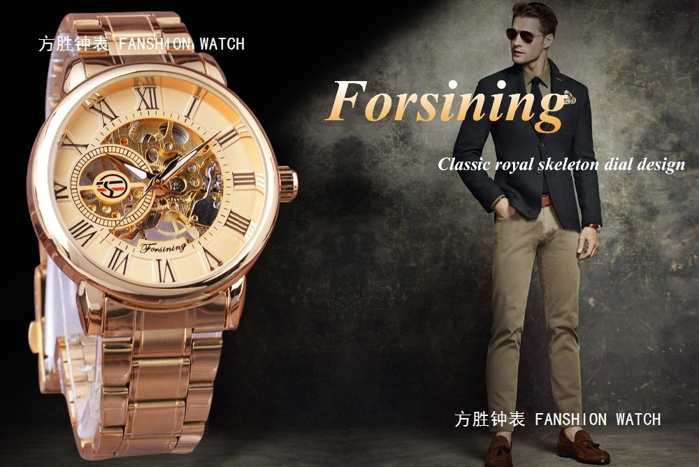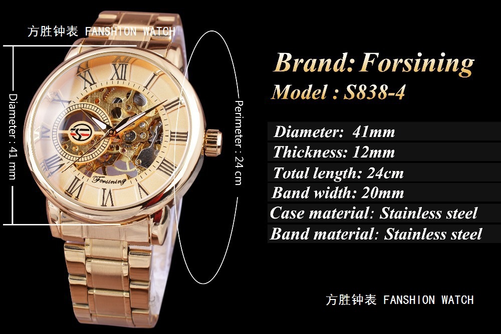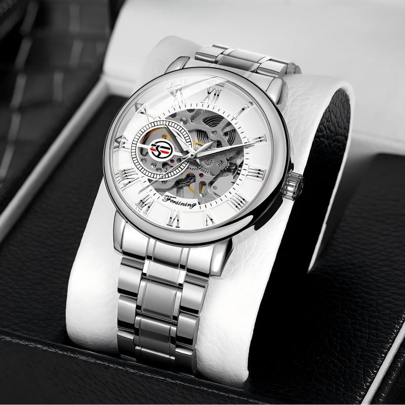 FORSINING男士时尚罗马字机械手表镂空钢带全自动机械表