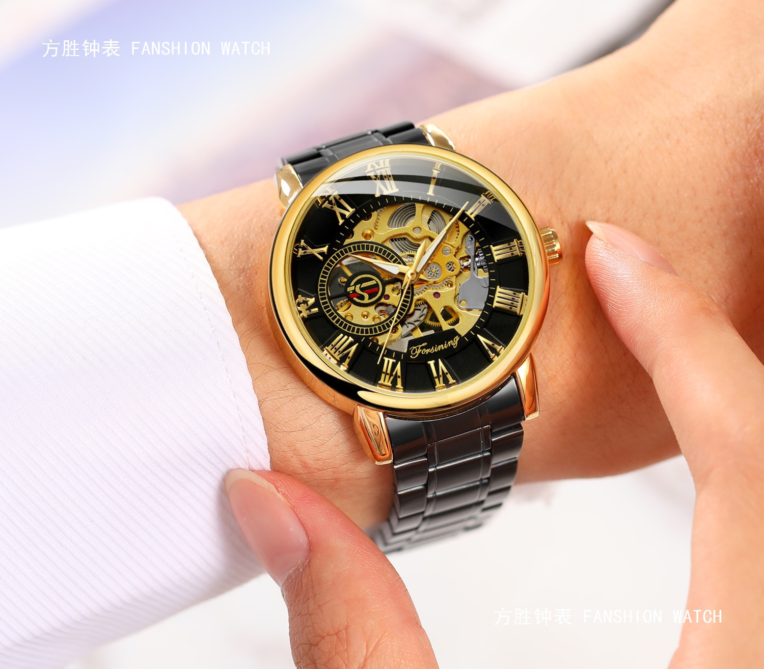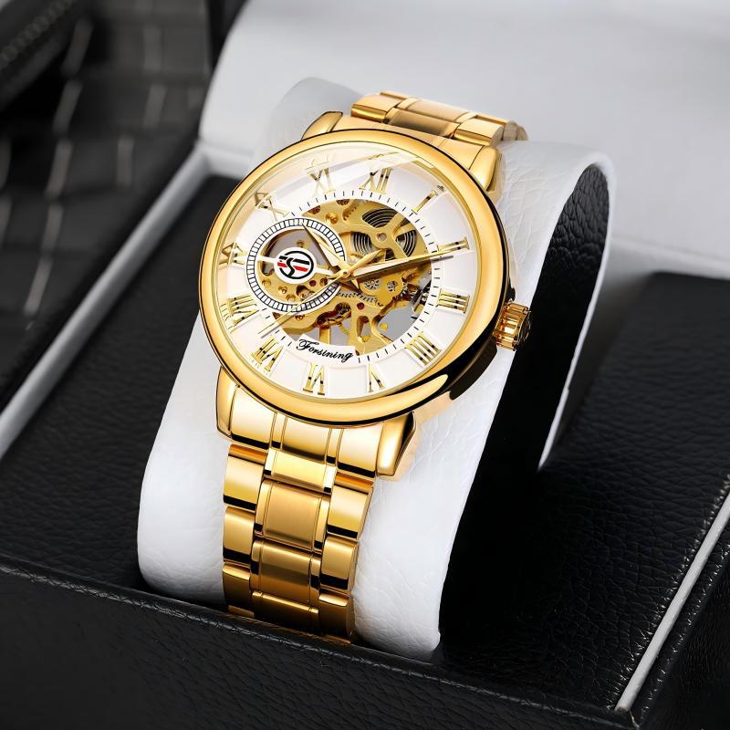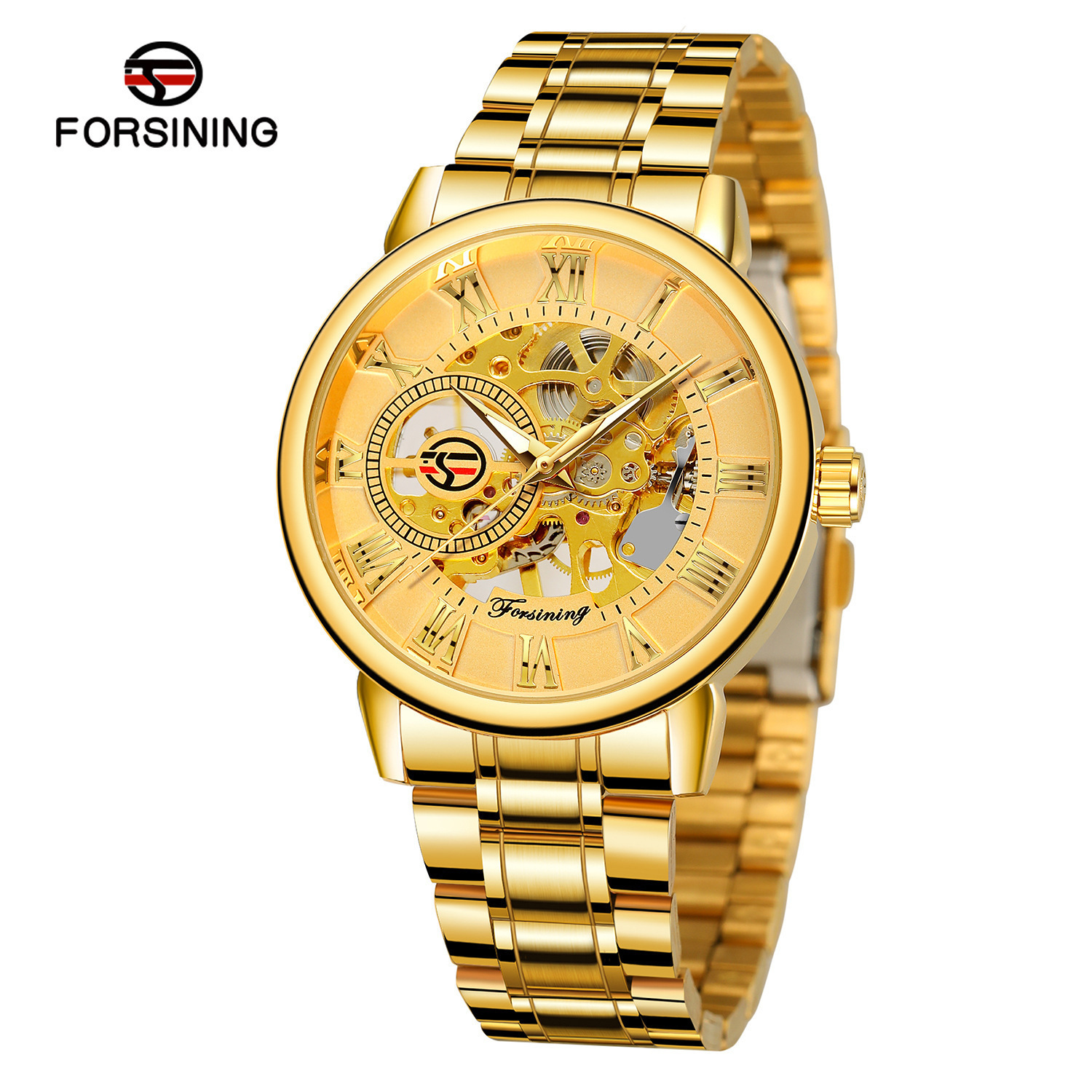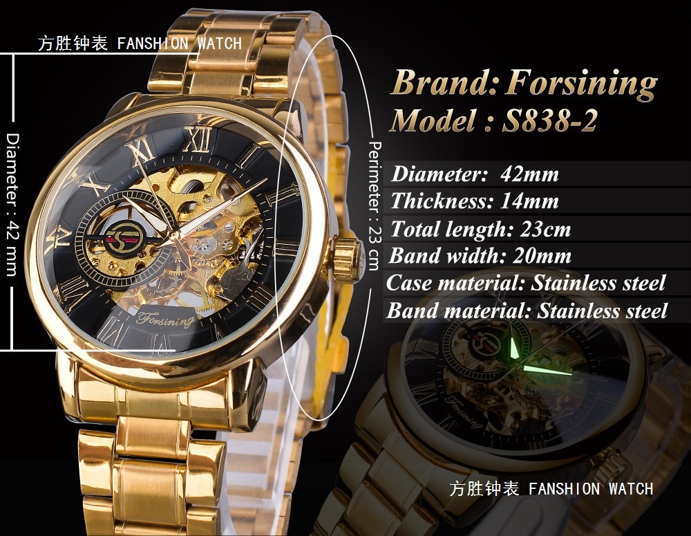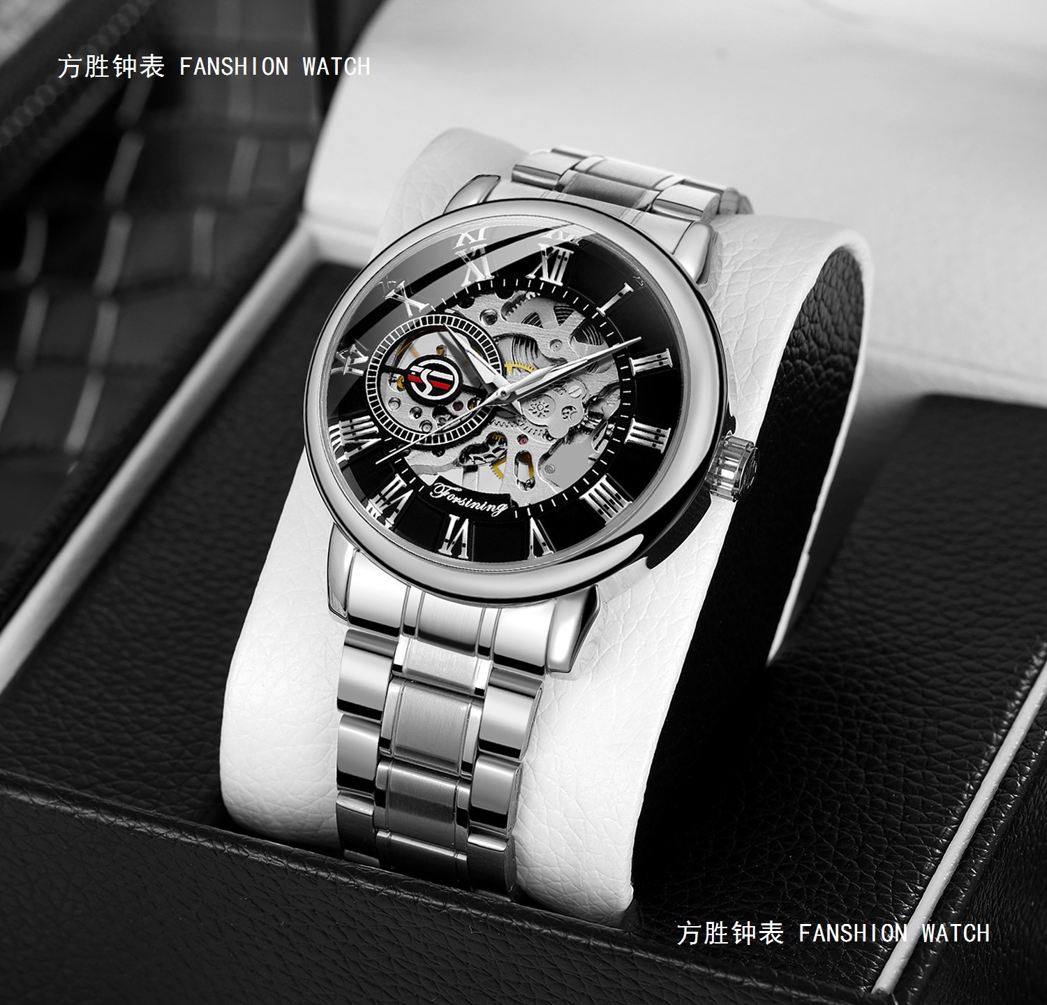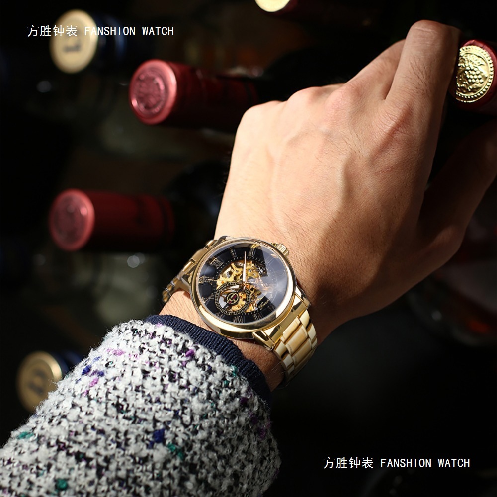 FORSINING男士时尚罗马字机械手表镂空钢带全自动机械表