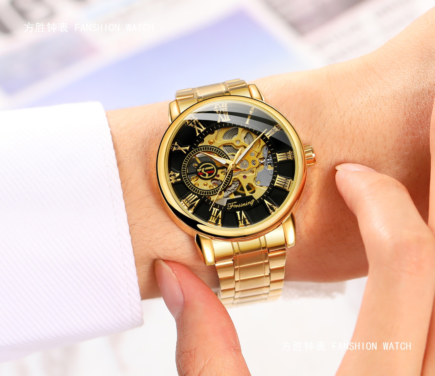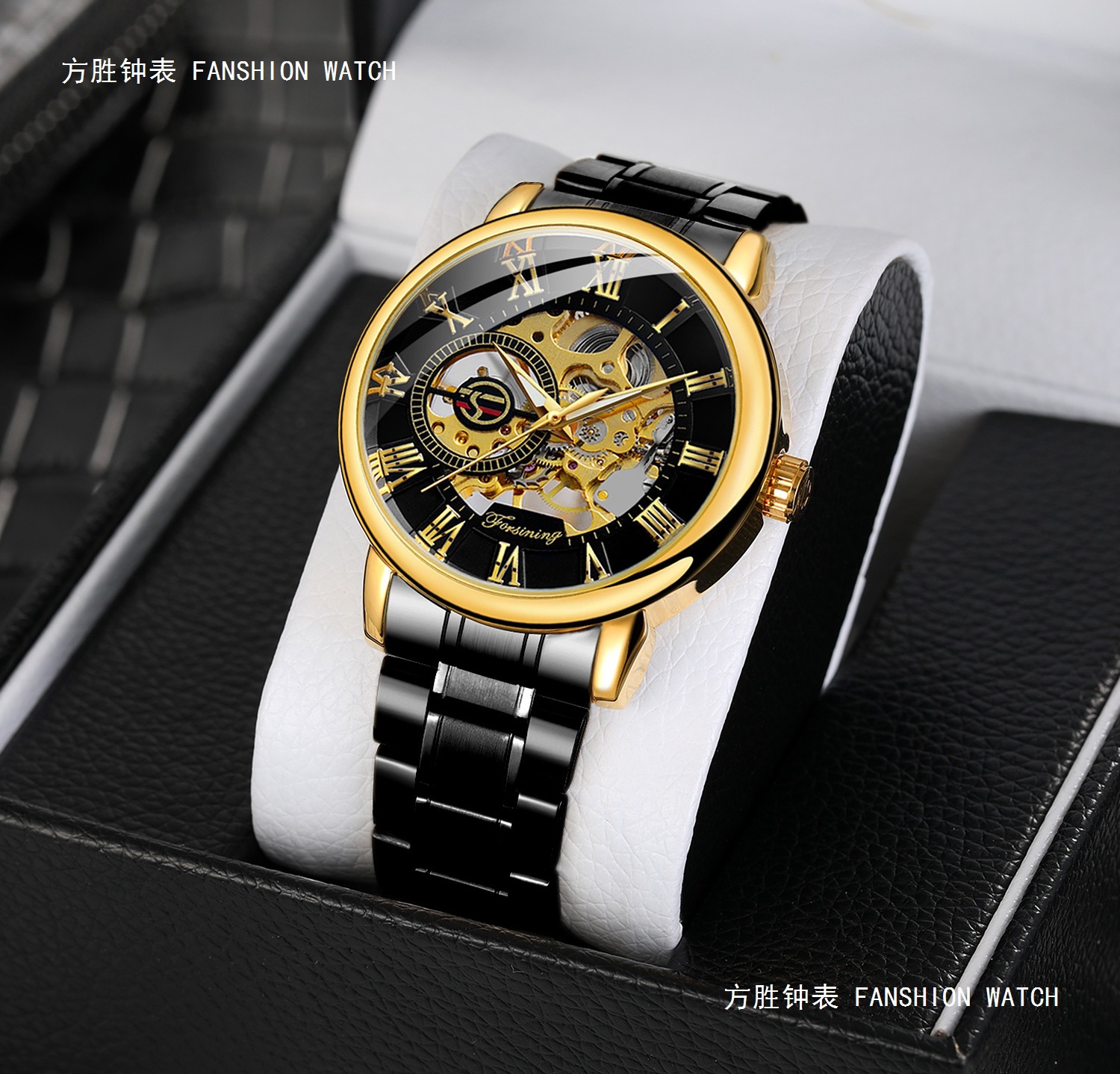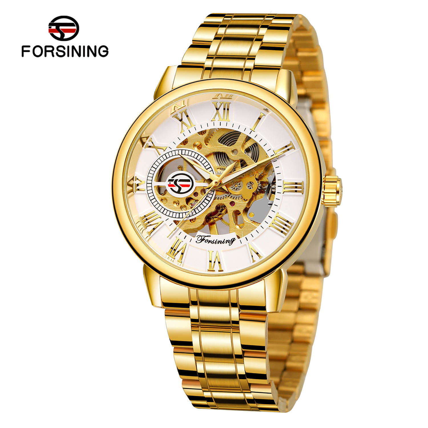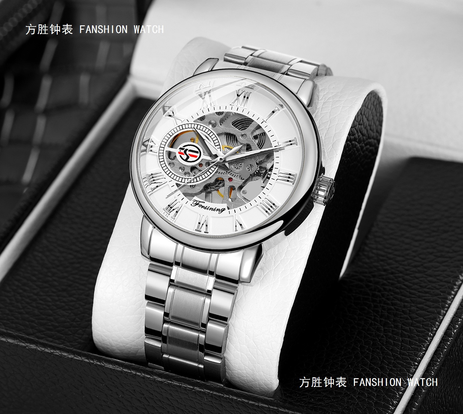 FORSINING男士时尚罗马字机械手表镂空钢带全自动机械表