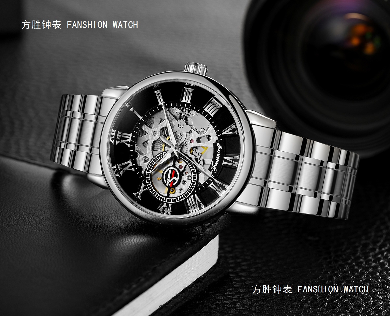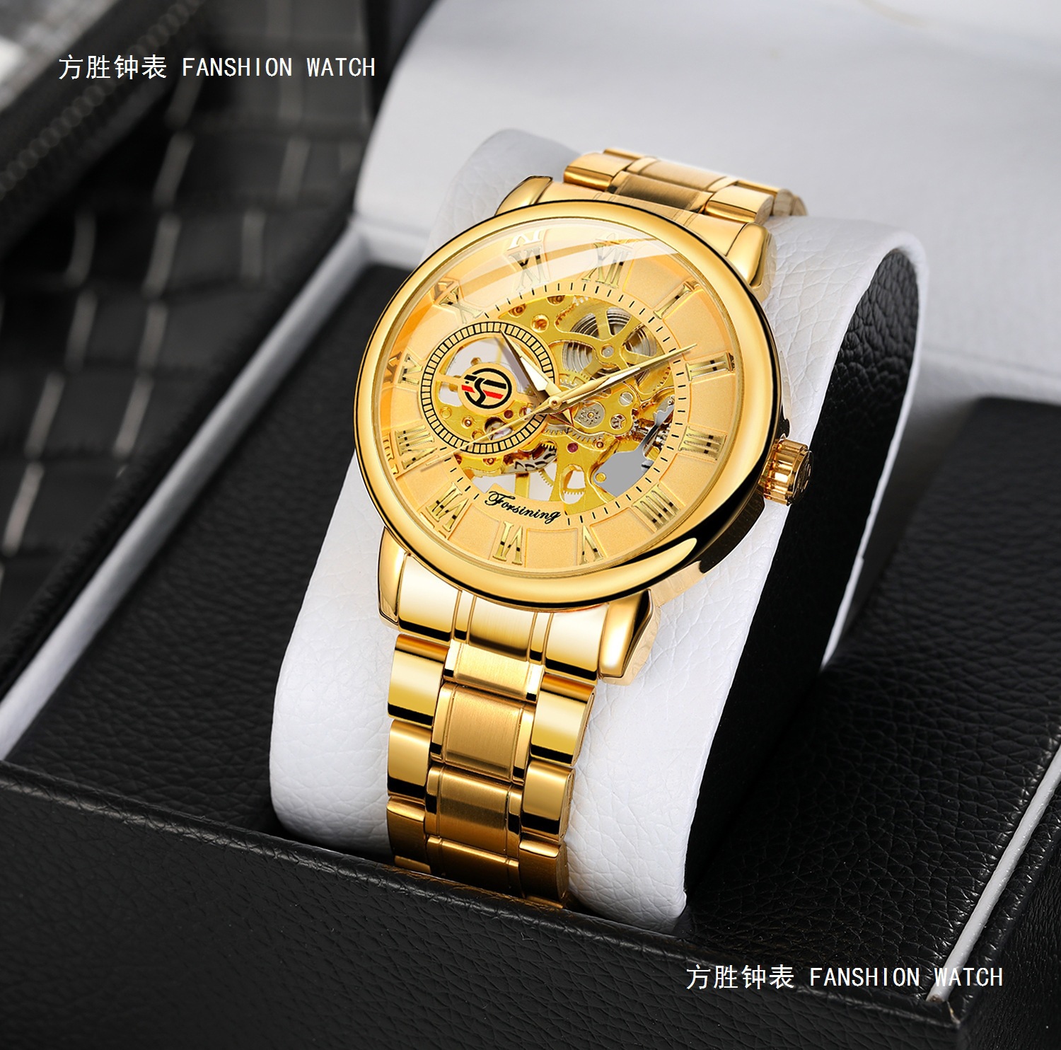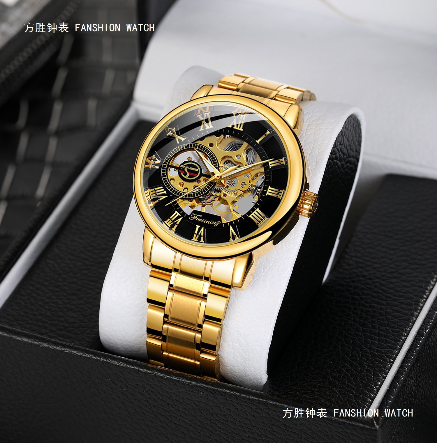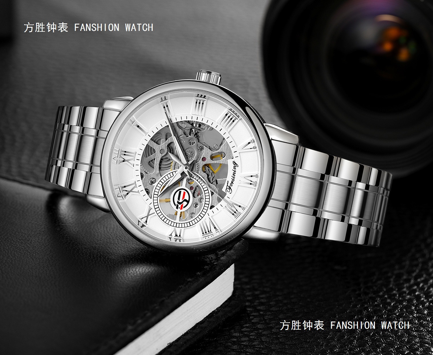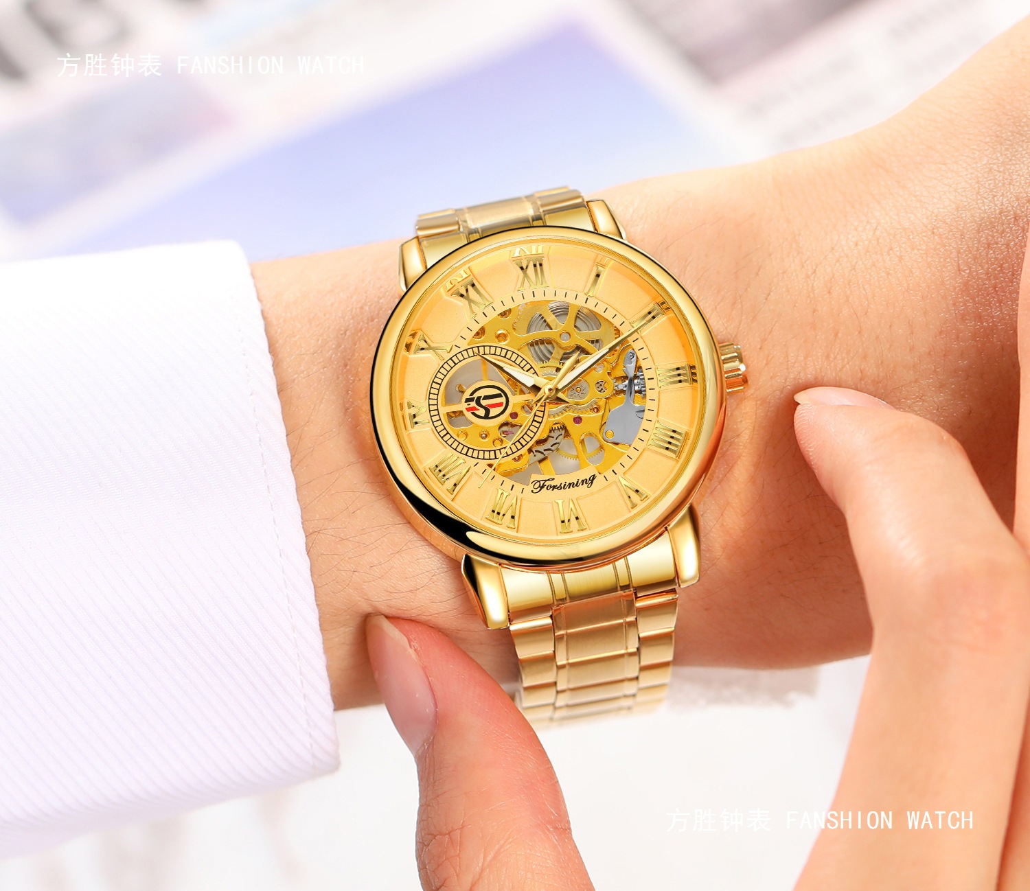 FORSINING男士时尚罗马字机械手表镂空钢带全自动机械表