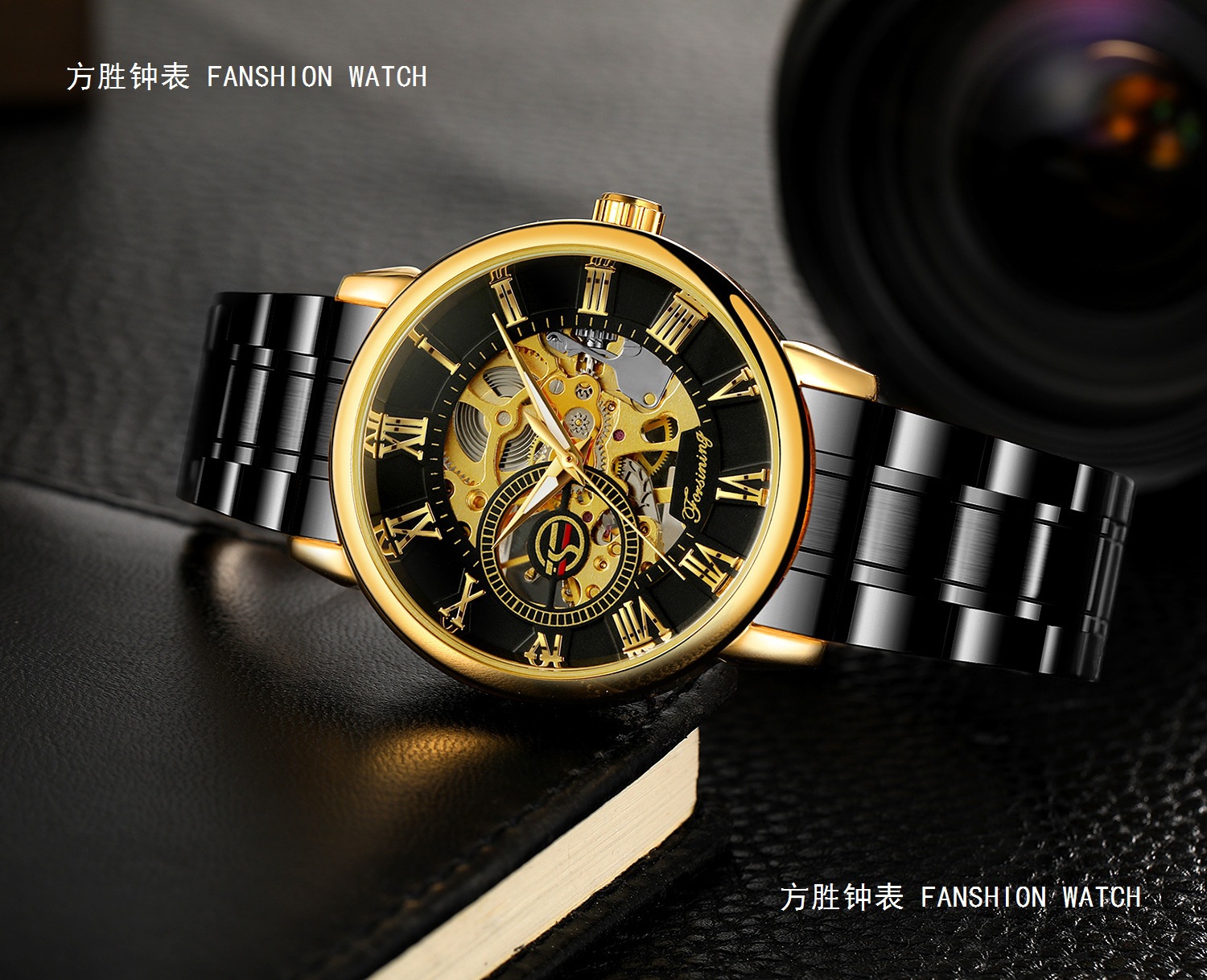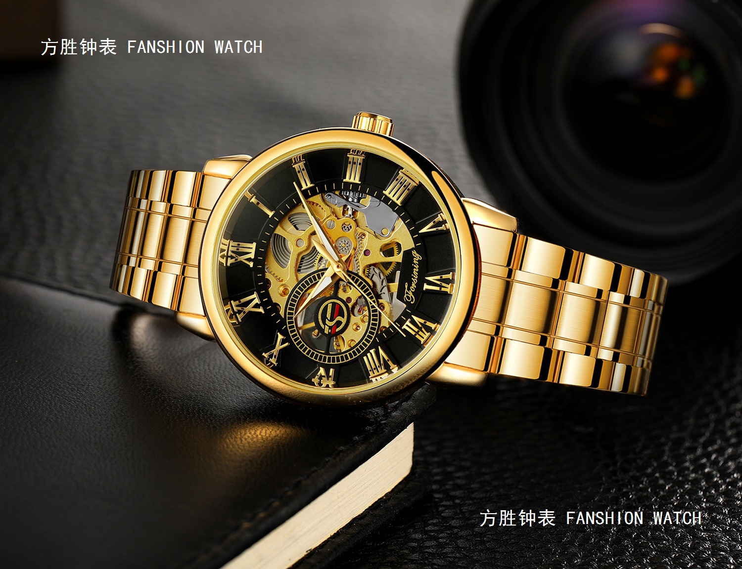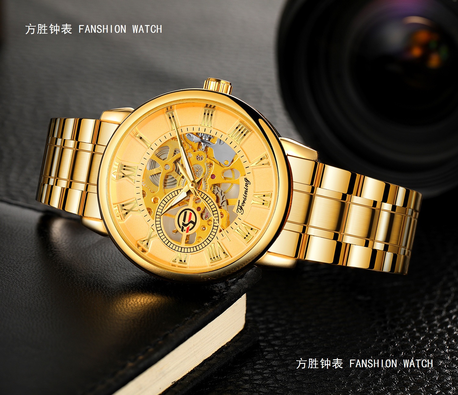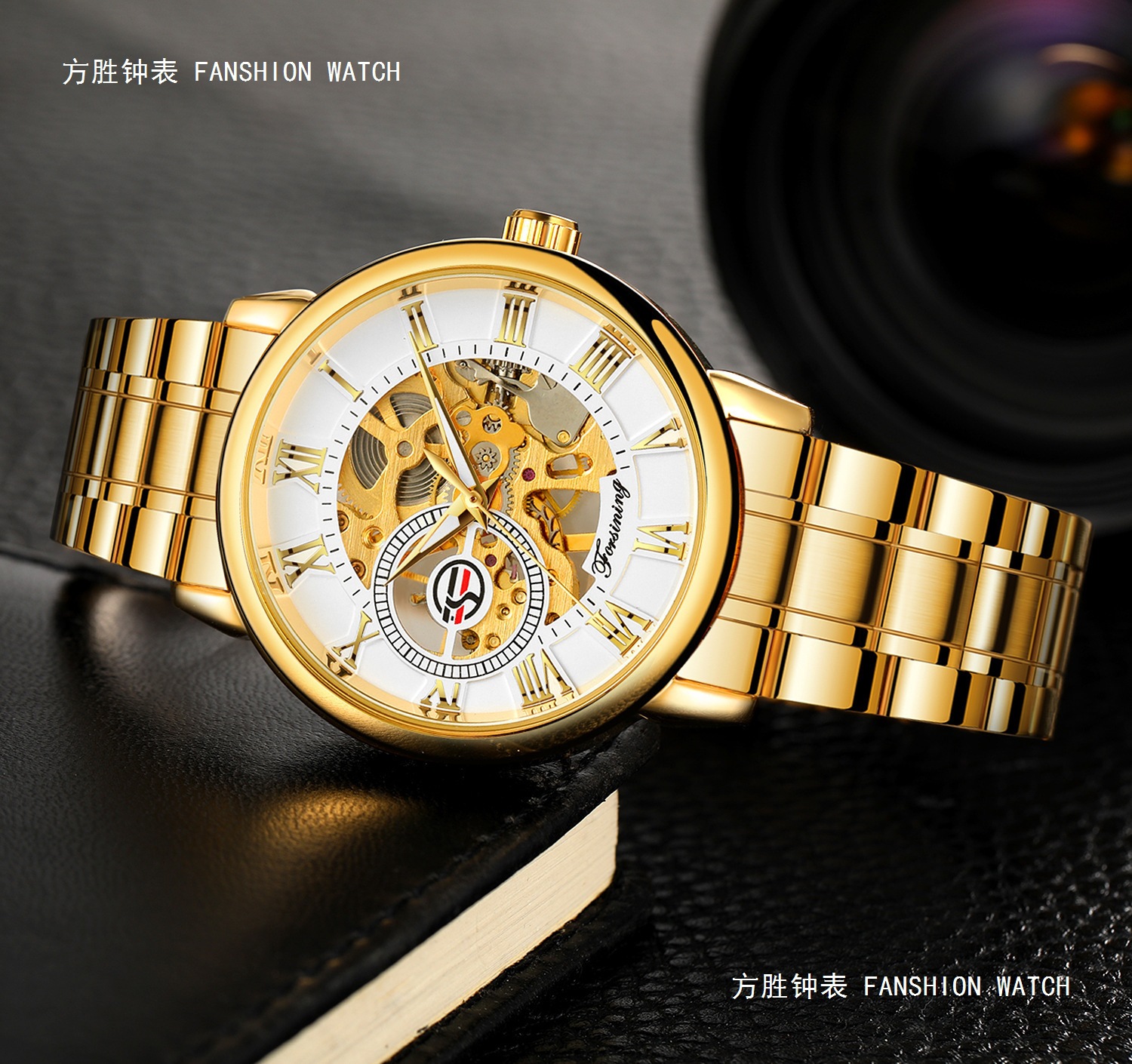 FORSINING男士时尚罗马字机械手表镂空钢带全自动机械表