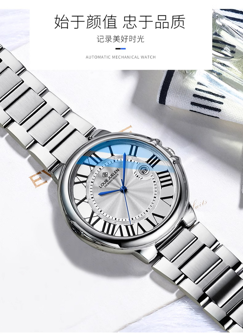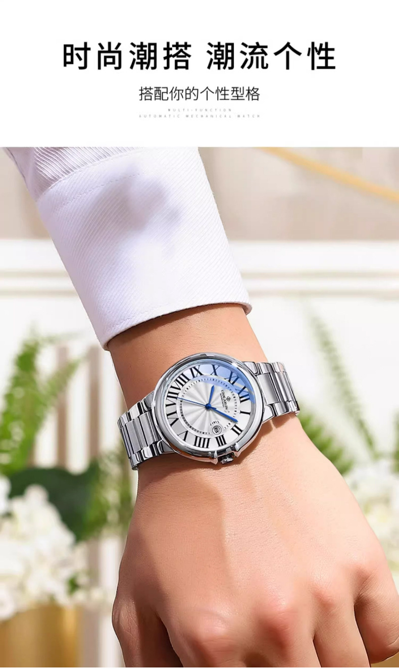 蓝气球女士机械表真皮全自动防水时尚商务手表女