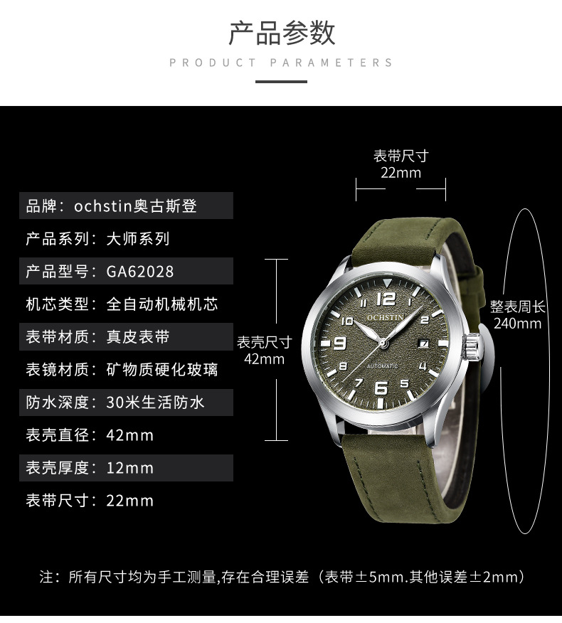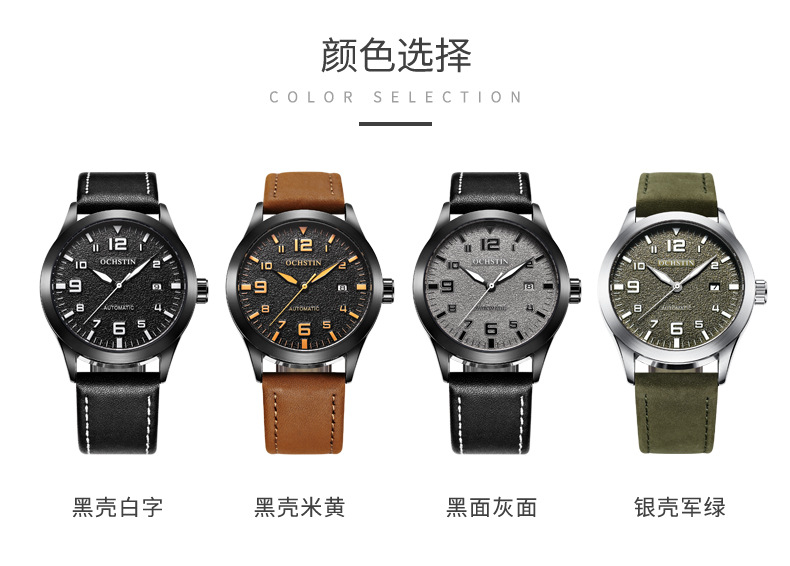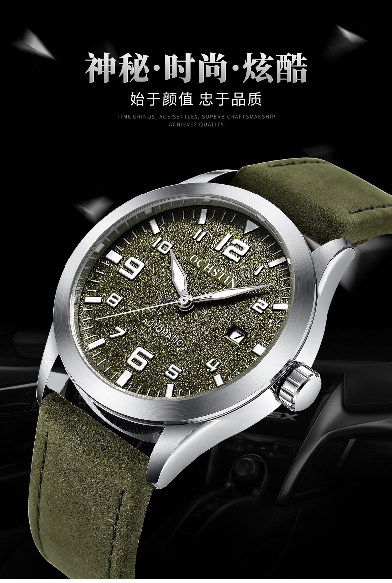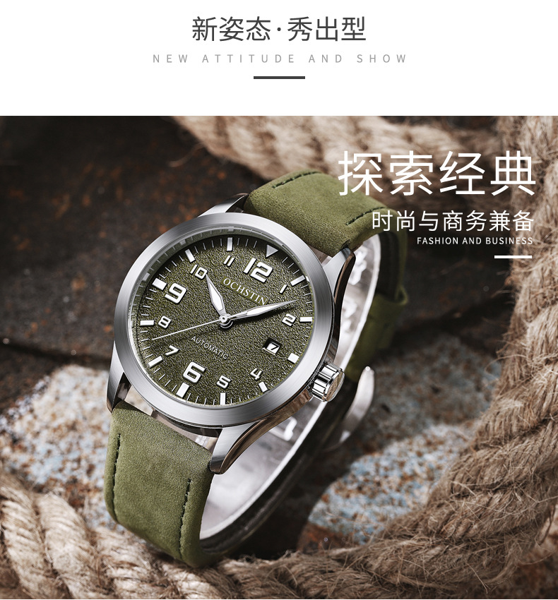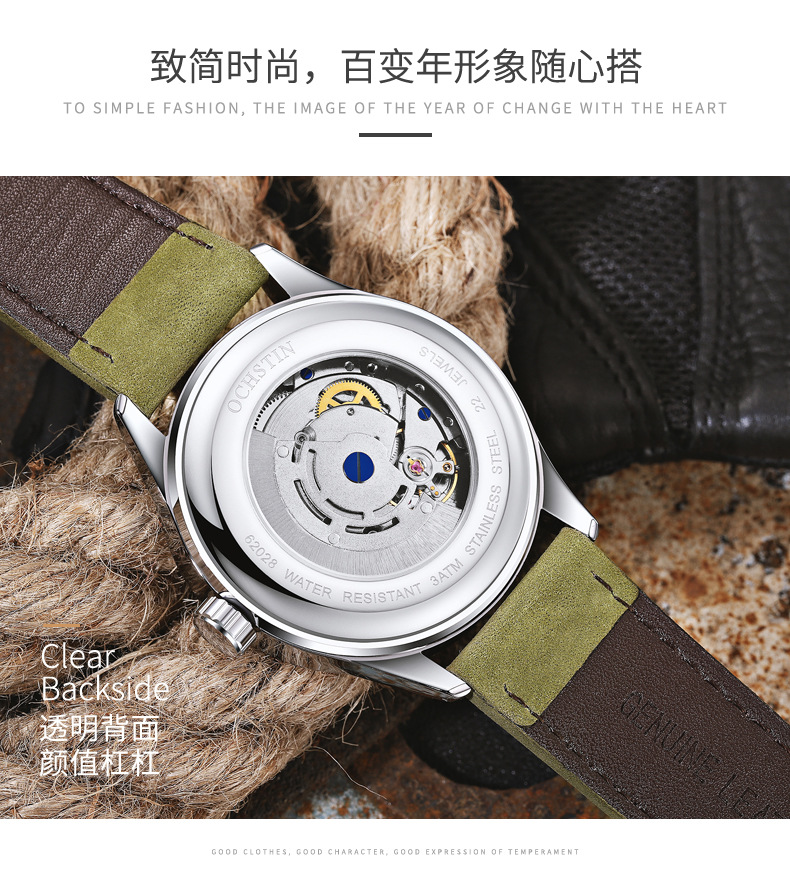 正品OCHSTIN爆款复古真皮全自动机械手表潮流休闲商务腕表男