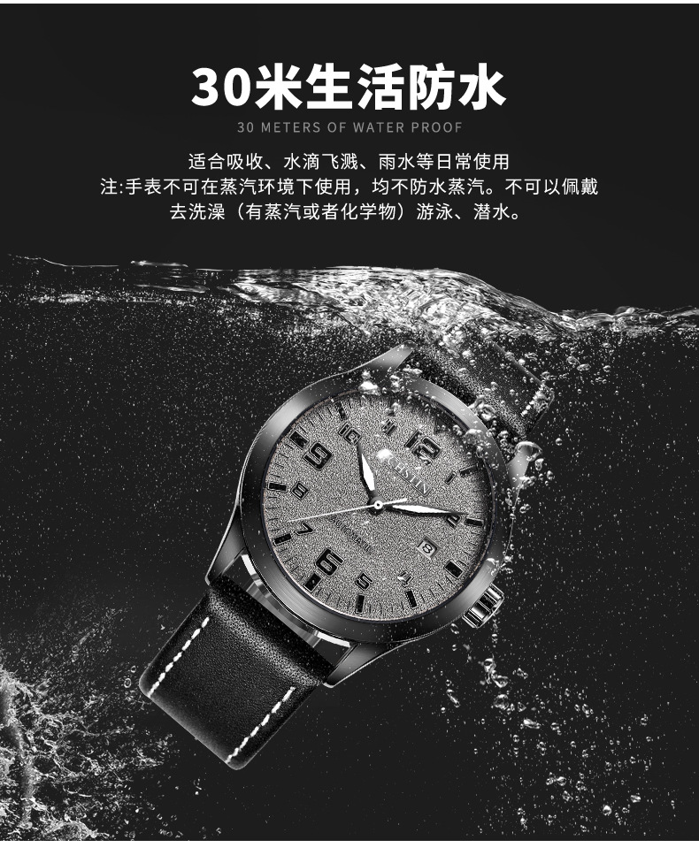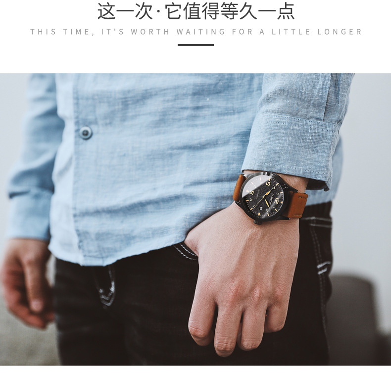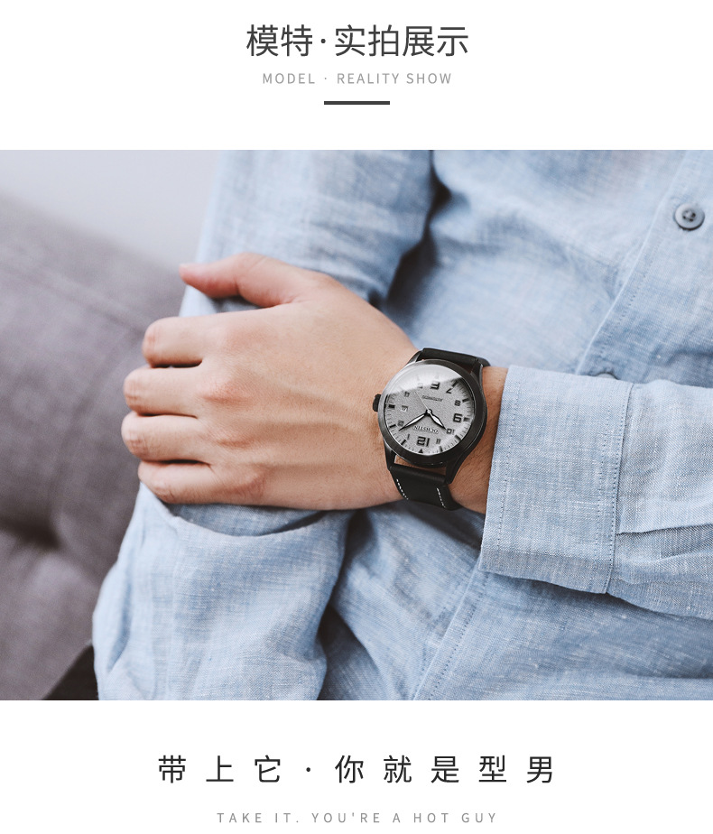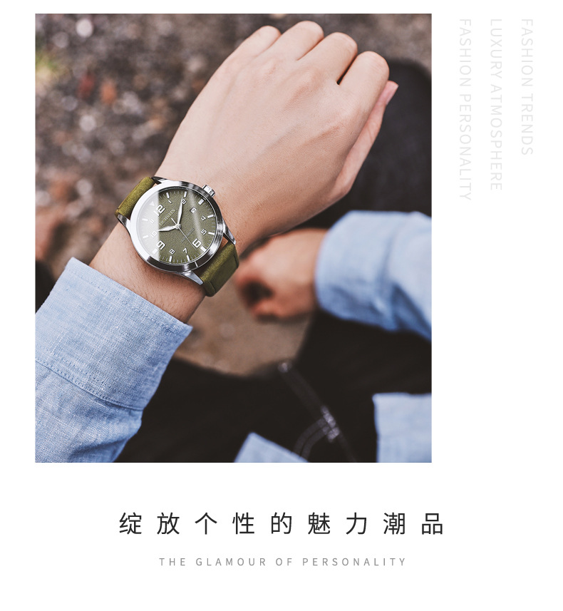 男士钢带日历石英手表运动夜光指针手表男士腕表