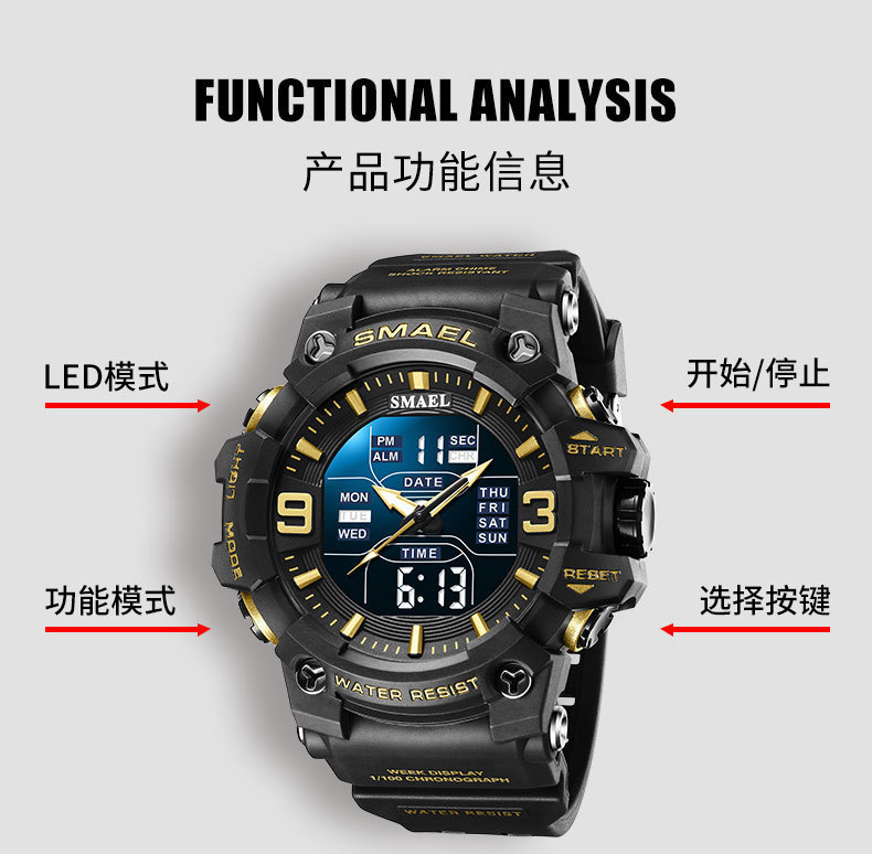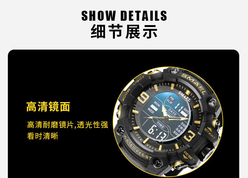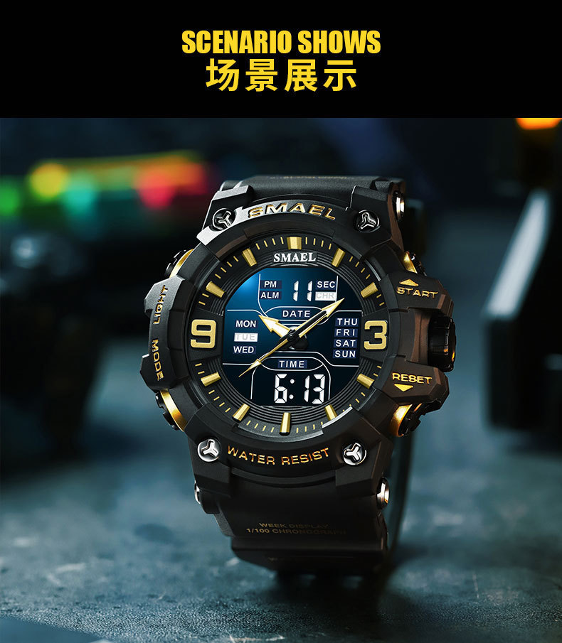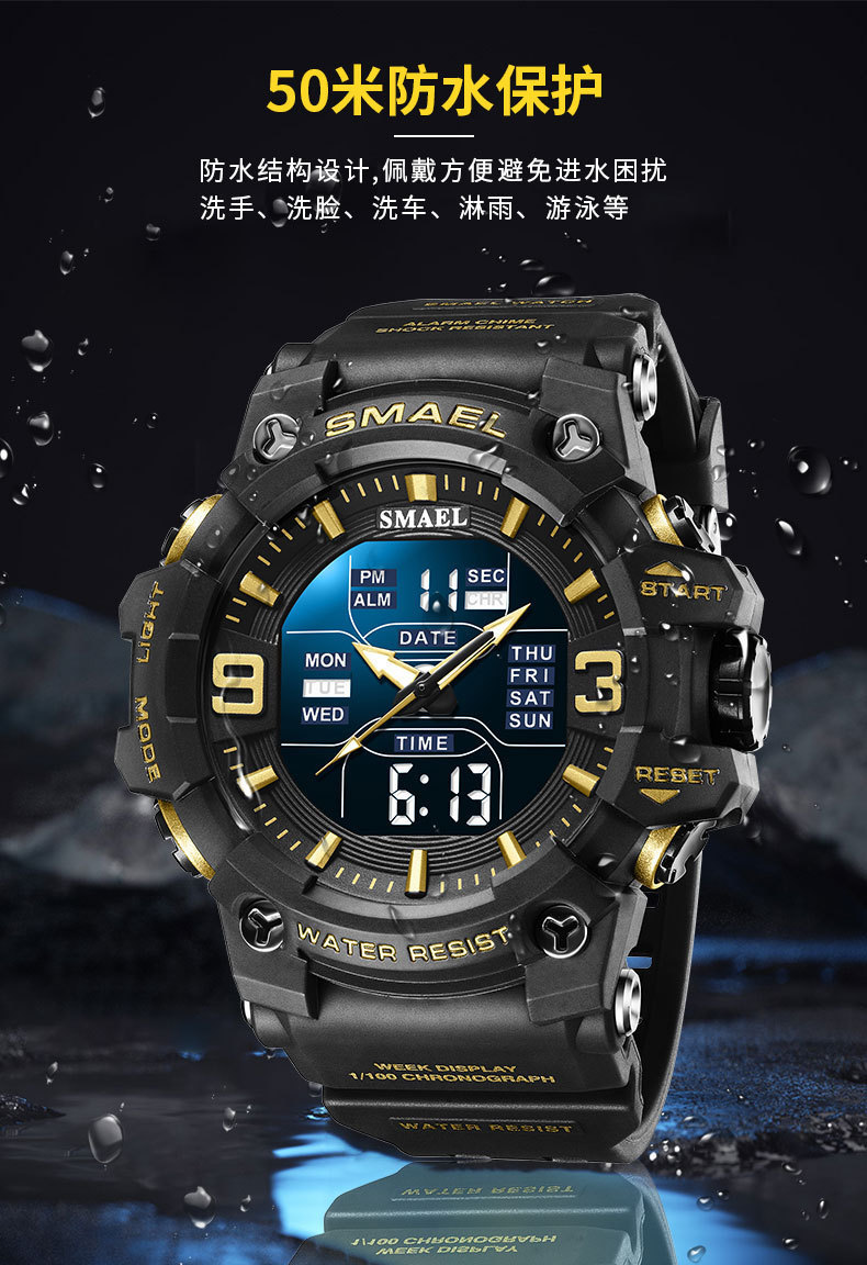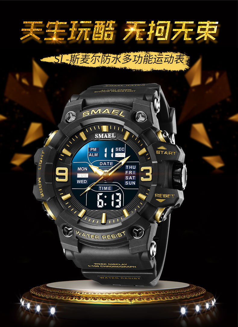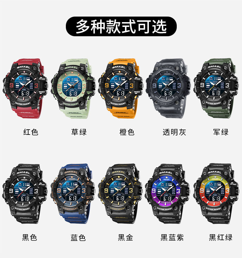 新款中学生潮流迷彩运动电子表多功能游泳防水夜光表机械电子表