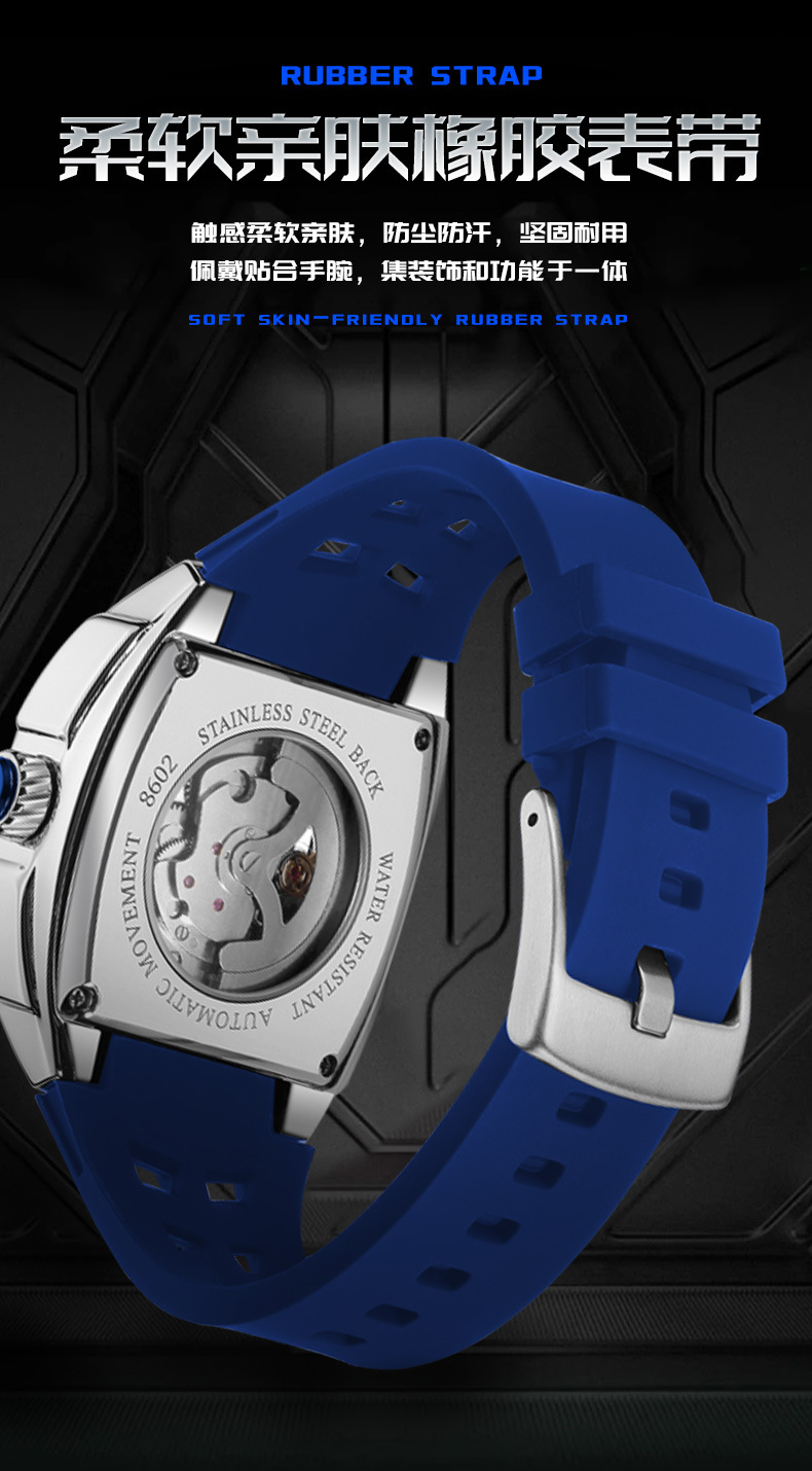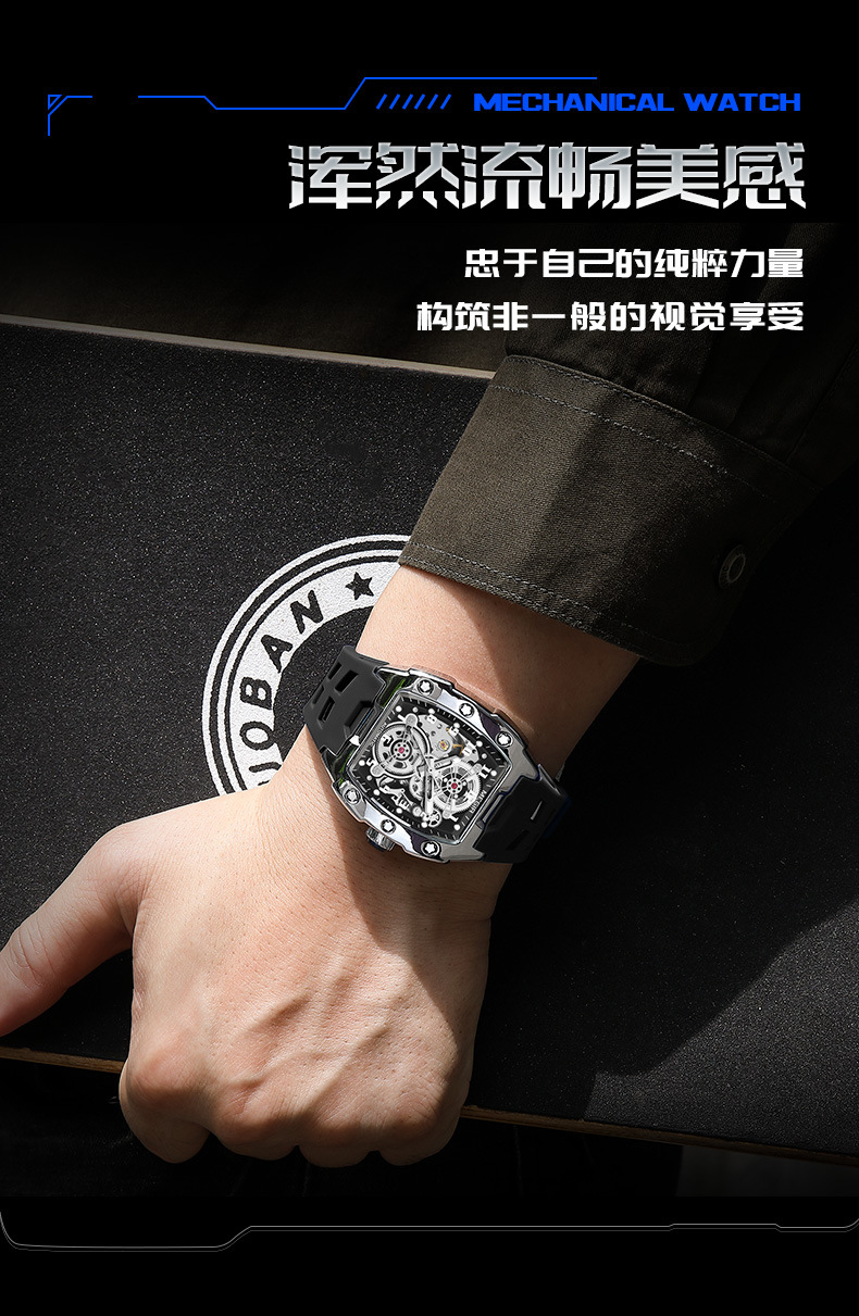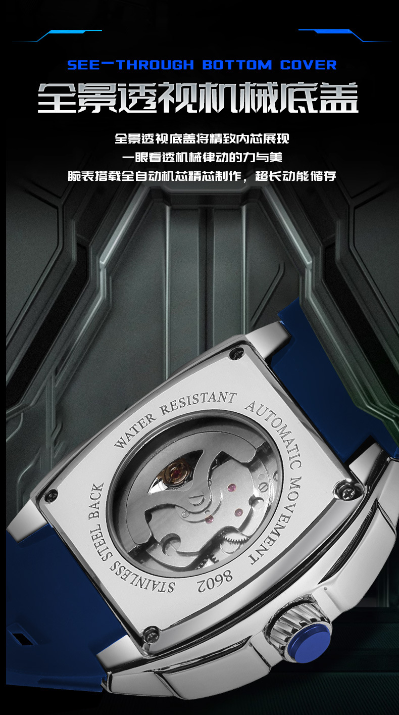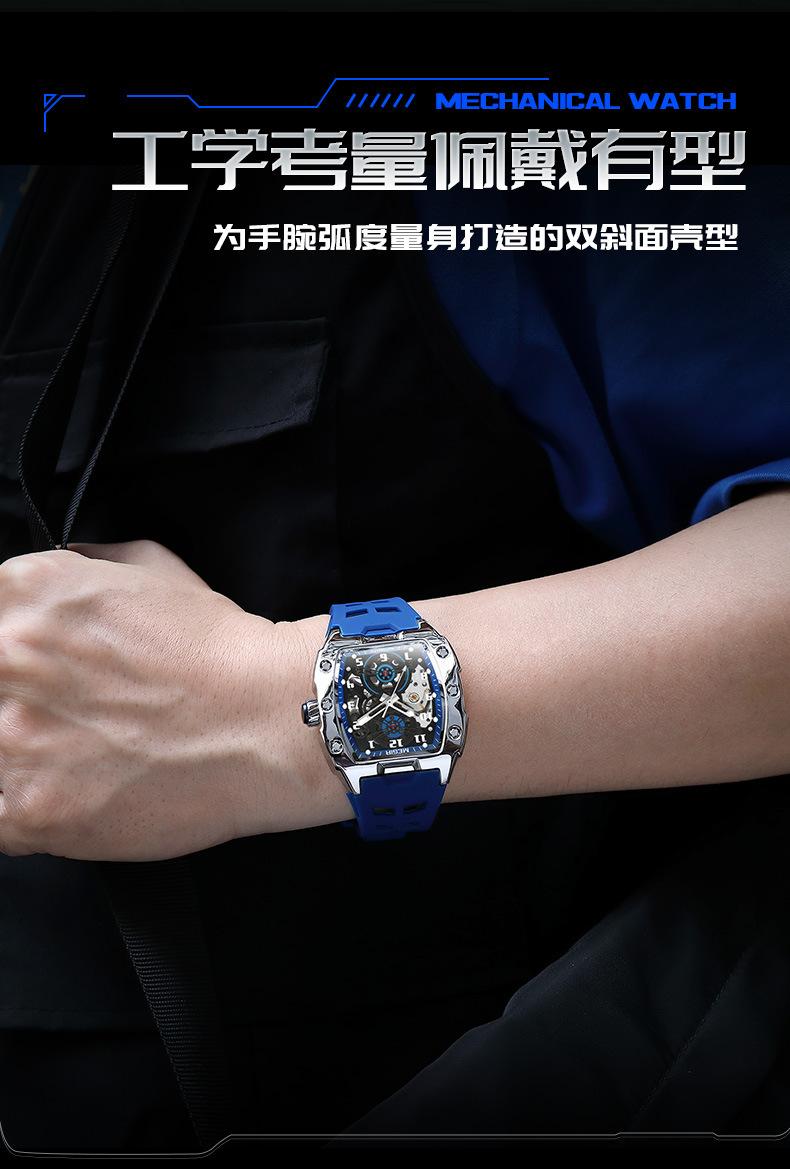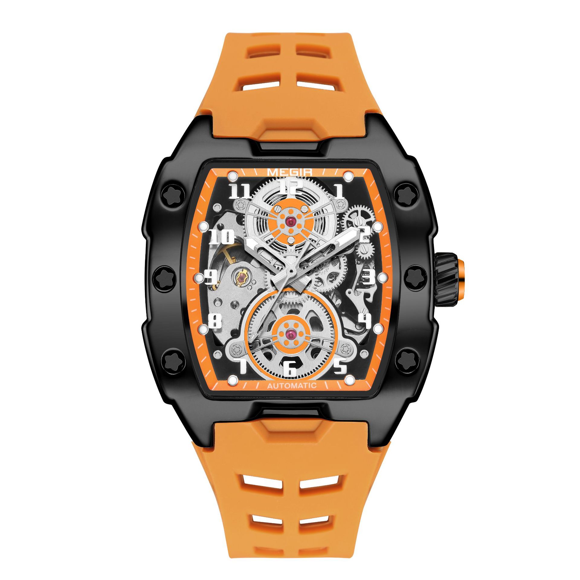 MEGIR新款男士酒桶型镂空机械手表男士休闲全自动夜光机械表