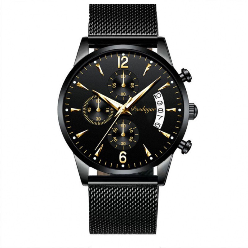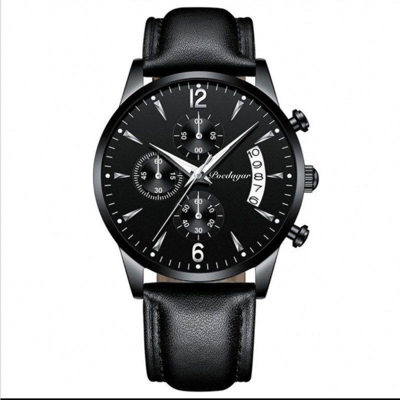 三眼蓝针男士手表百搭潮流时尚高档精致石英表硅胶带大表盘手表