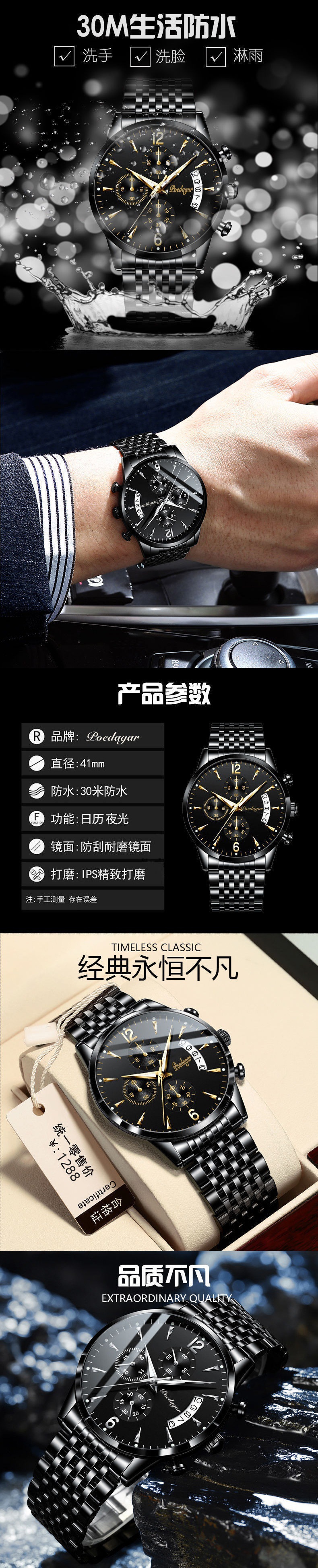瑞士原装防水夜光男士机械手表学生韩版潮流运动日历腕表新款