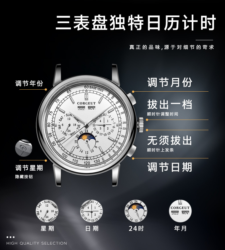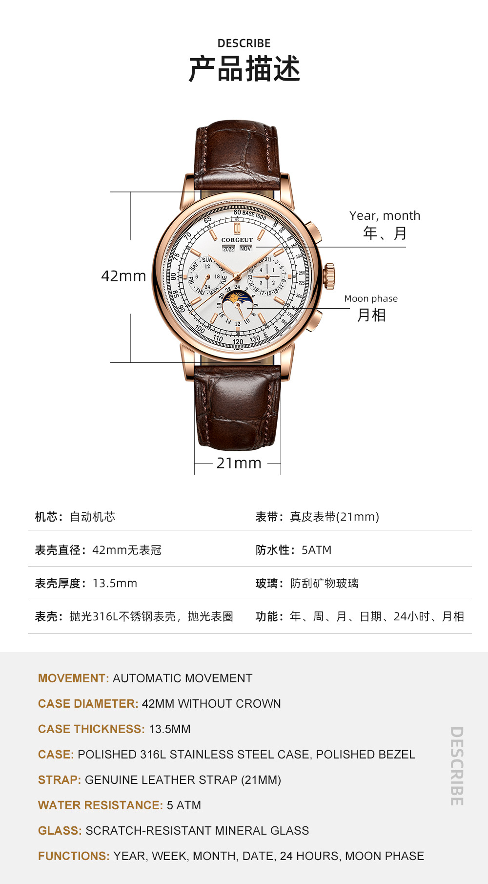 真皮全自动机械表男爆款手表男士手表机械表男商务多功能手表