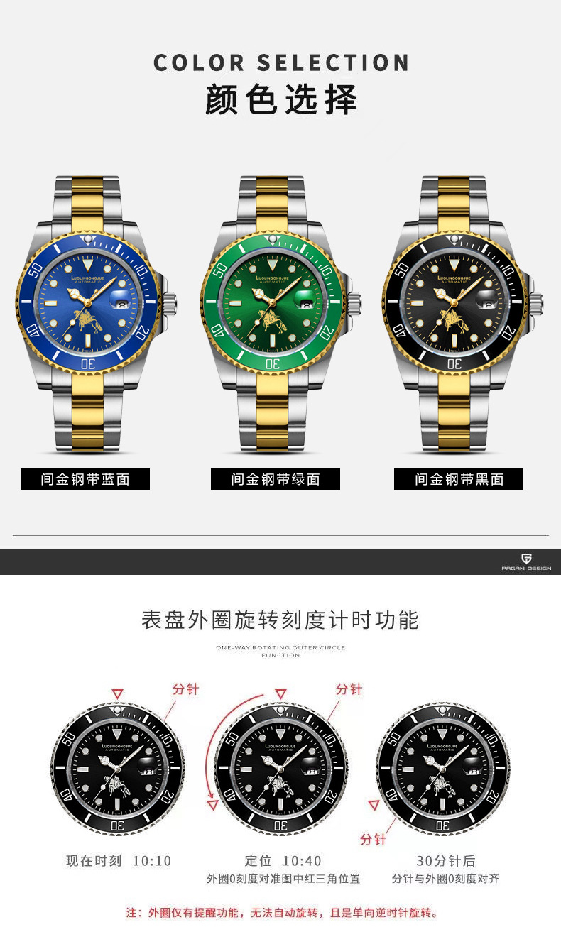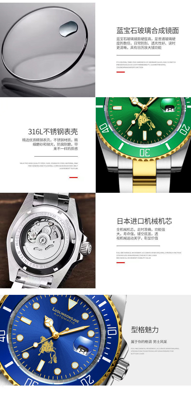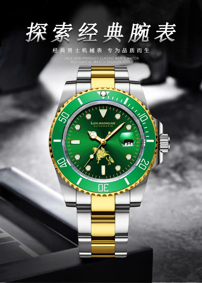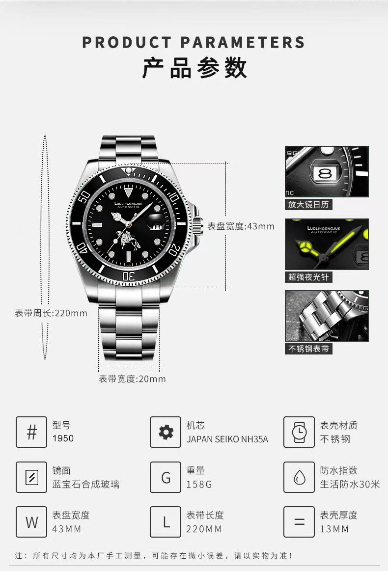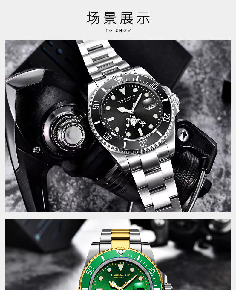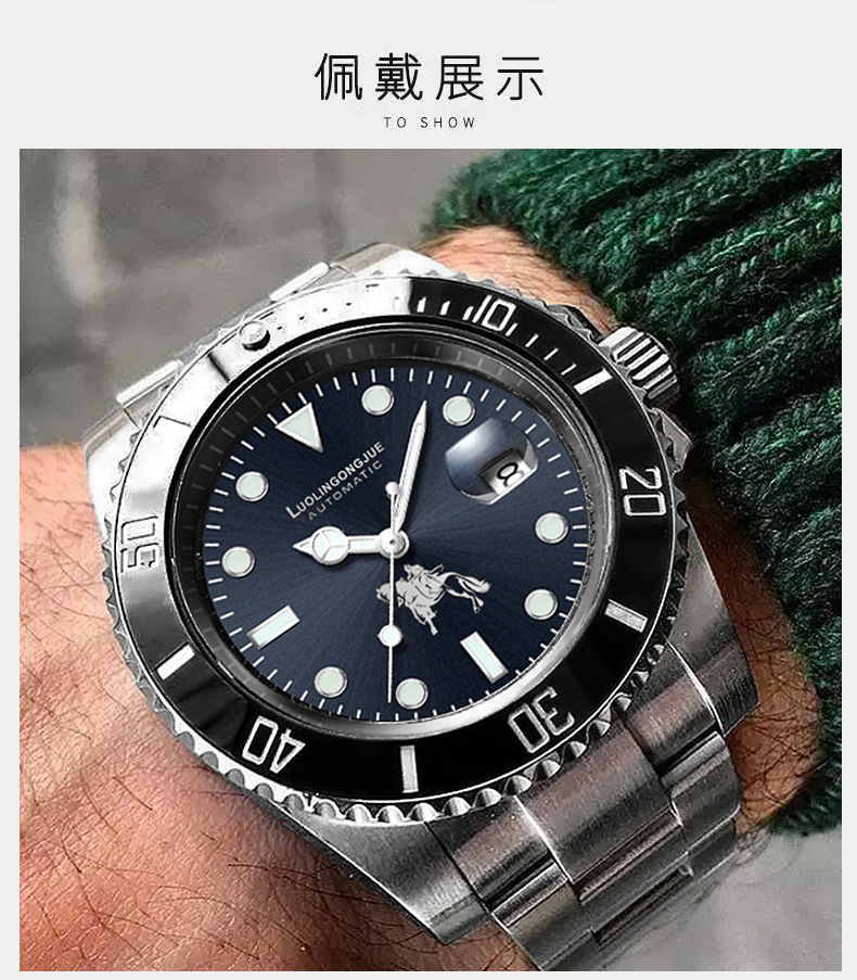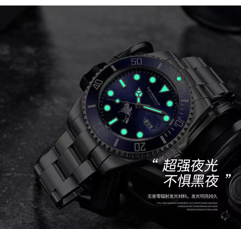 水鬼全自动机械表男士商务镂空旋转精钢表圈机械男表