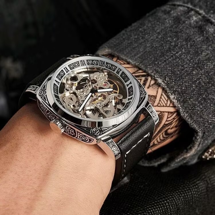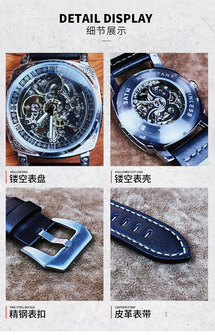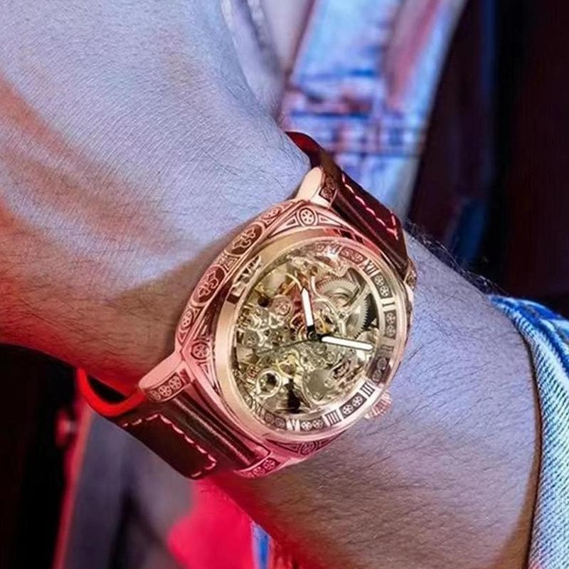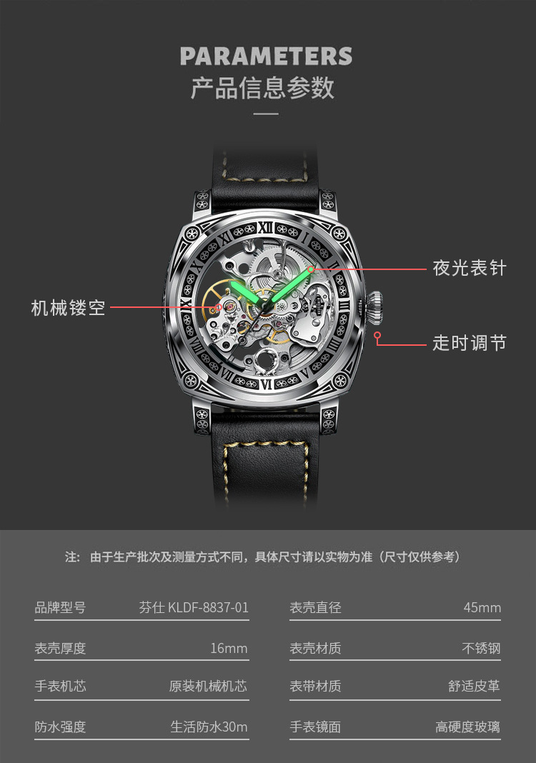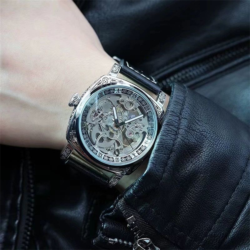 全自动机械男表洛林公爵怪兽镂空防水真皮机械男表