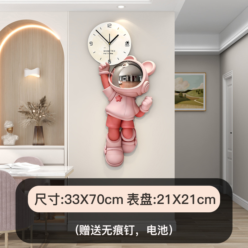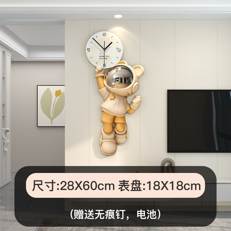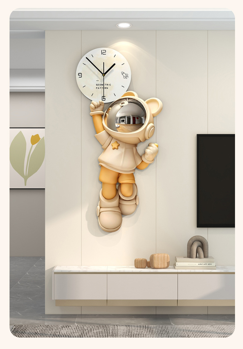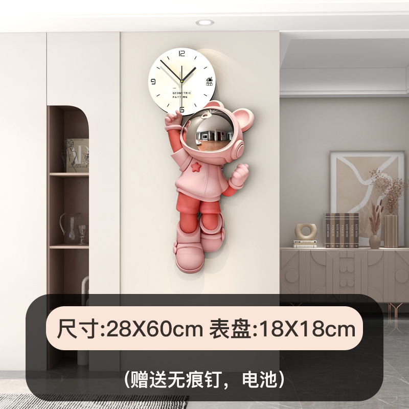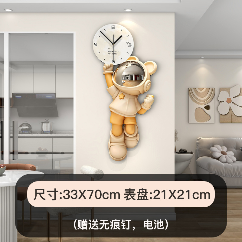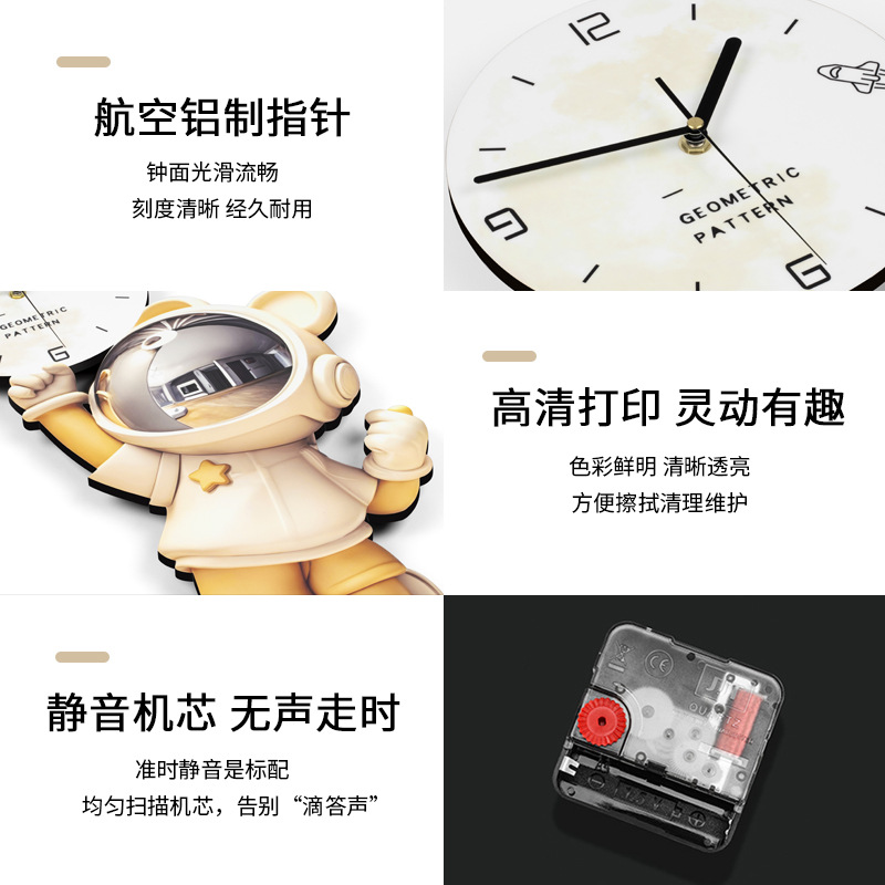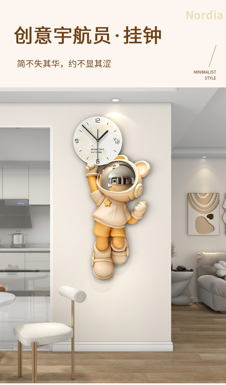 宇航员卡通时钟高级感挂墙现代简约家用免打孔钟表挂钟客厅装饰钟