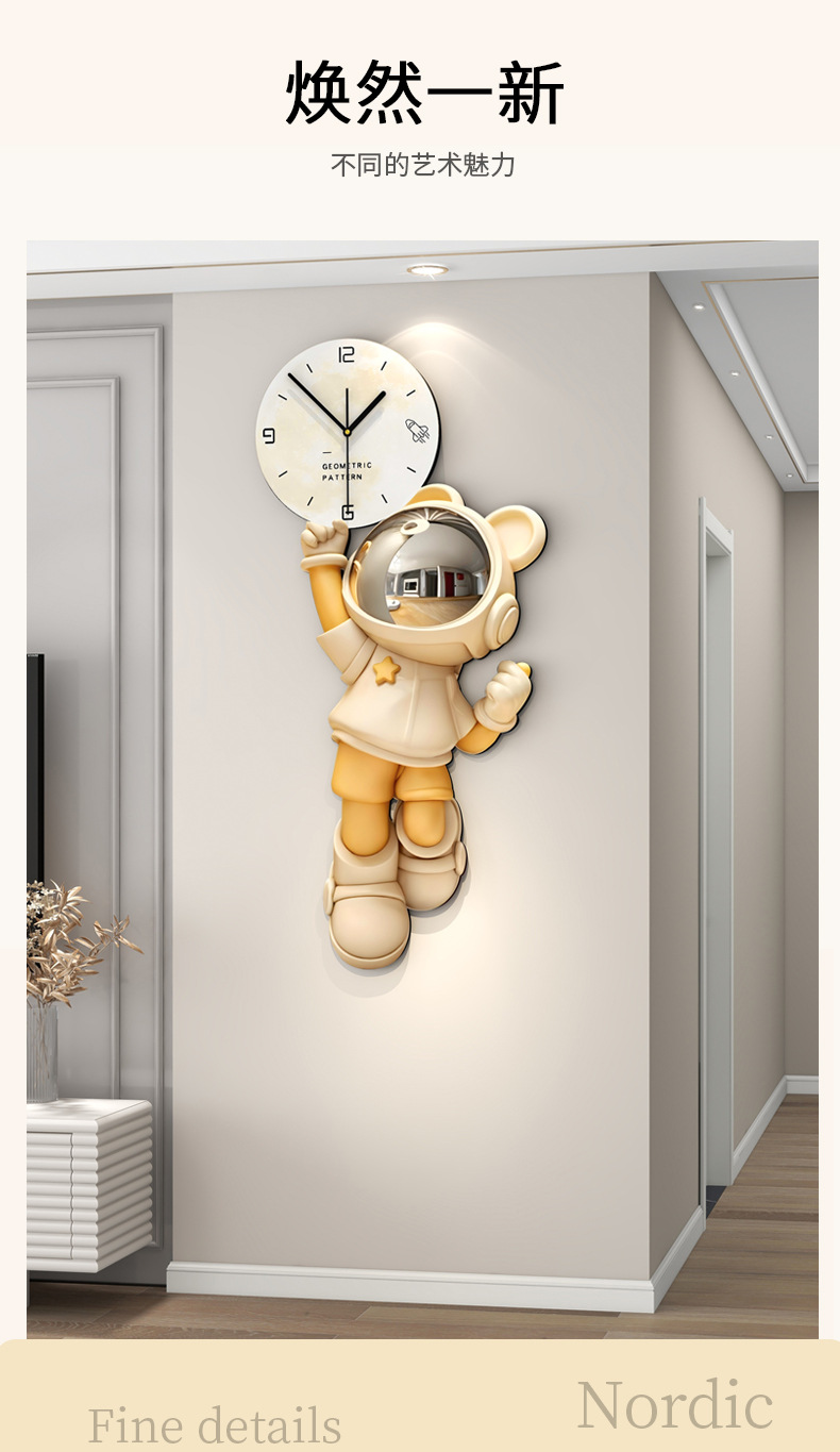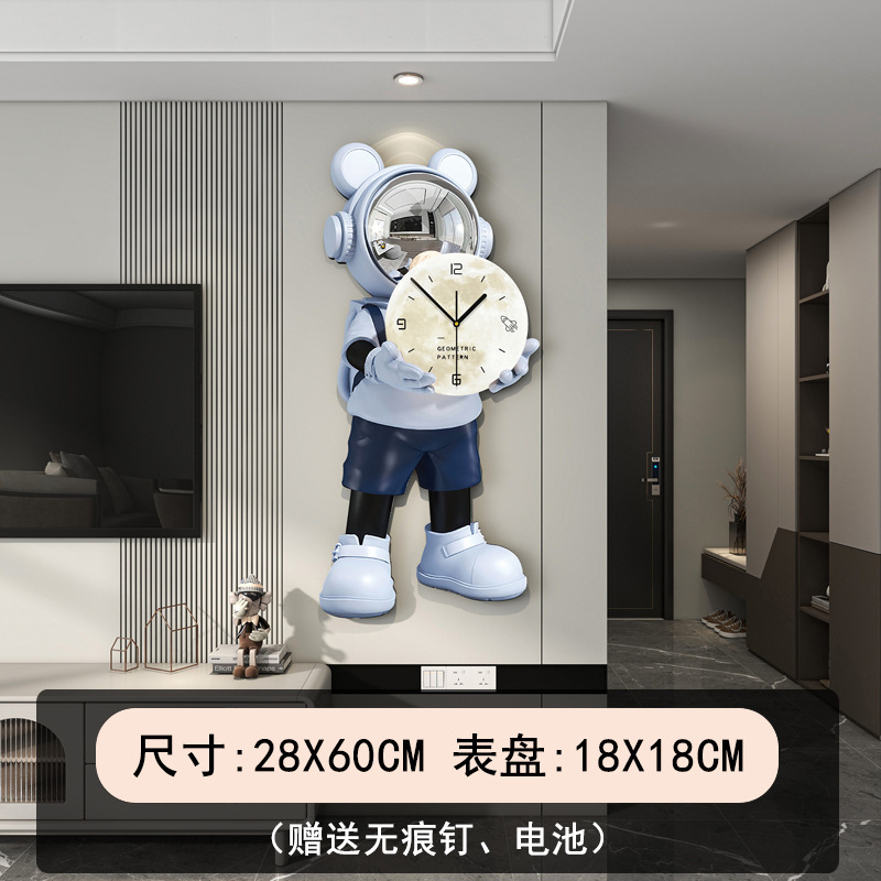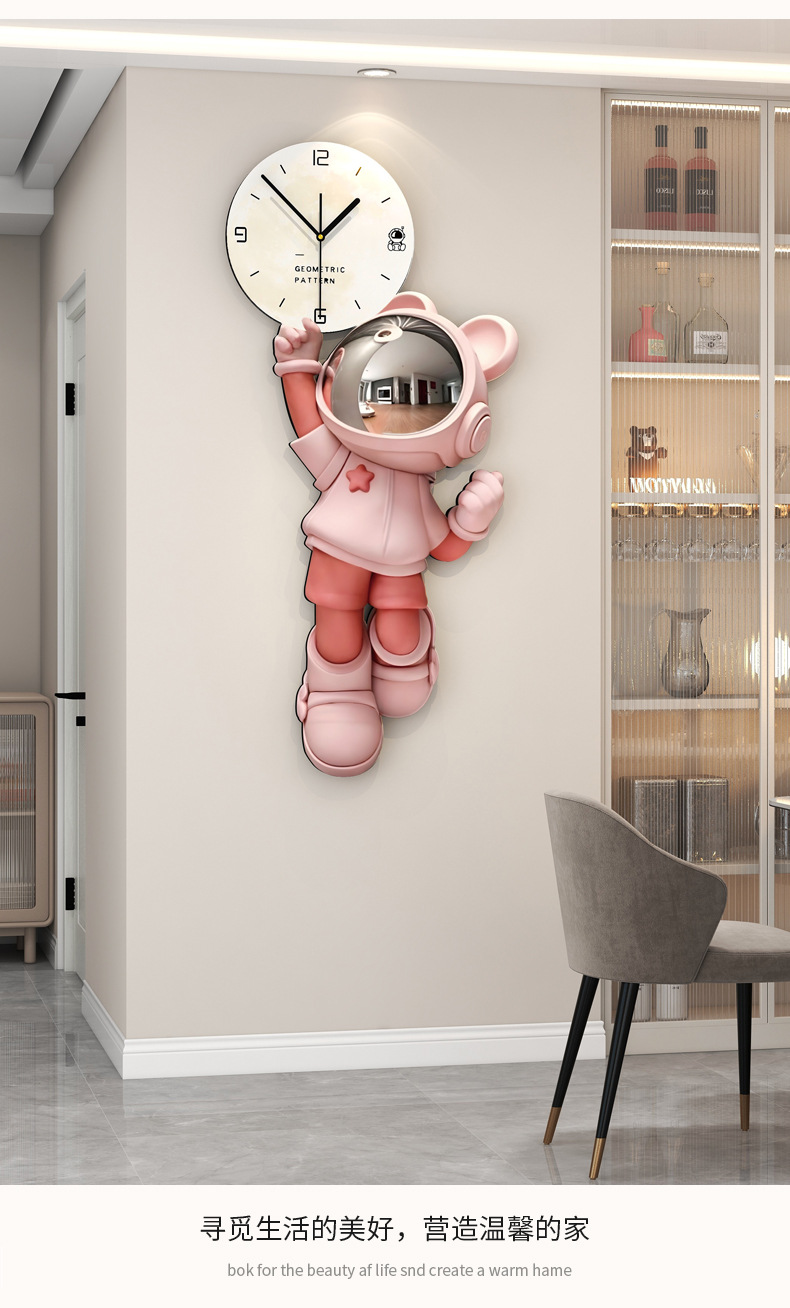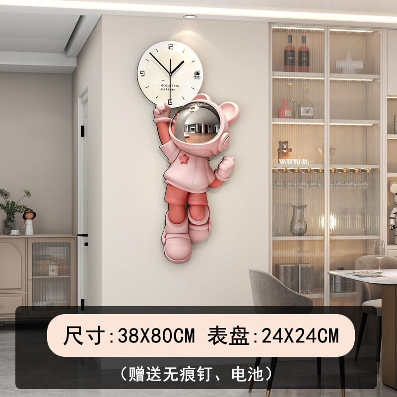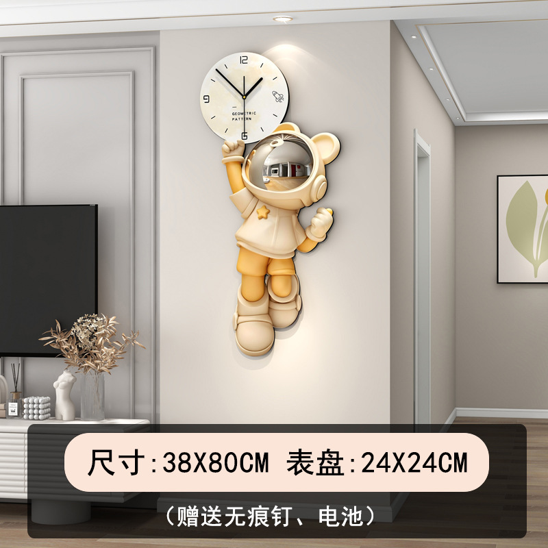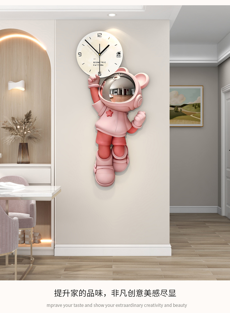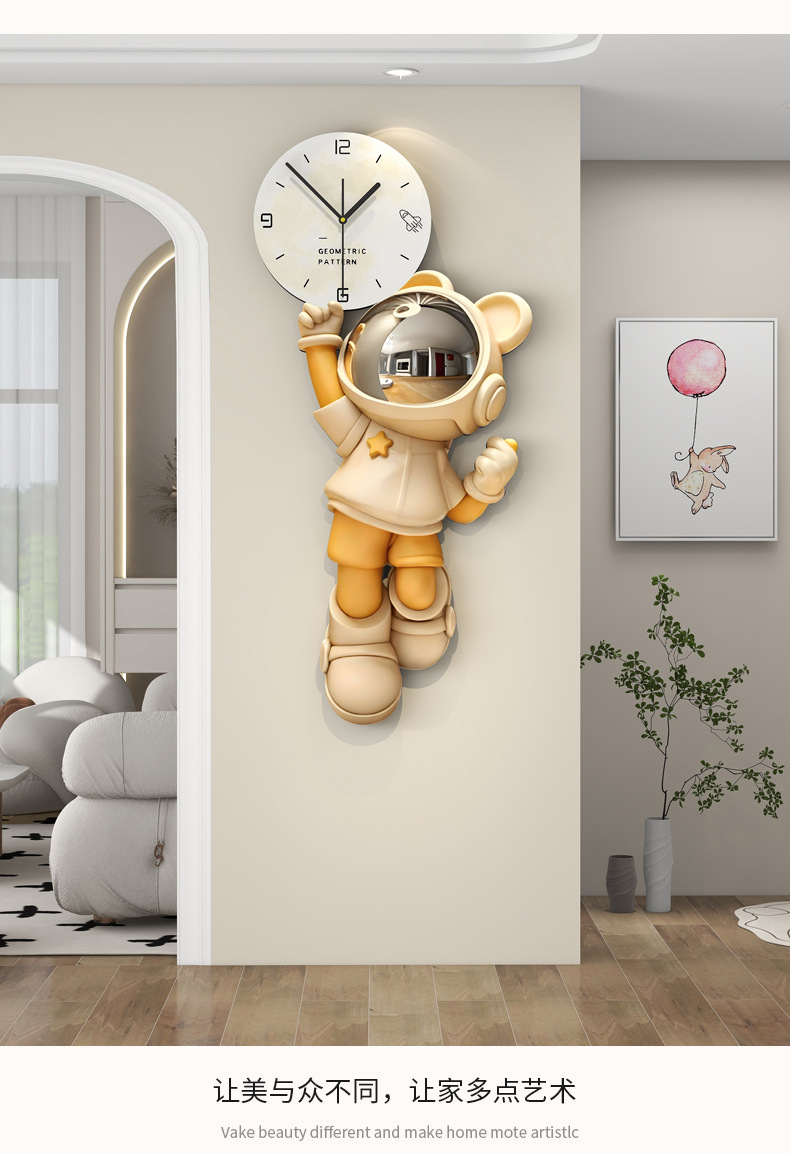 宇航员卡通时钟高级感挂墙现代简约家用免打孔钟表挂钟客厅装饰钟