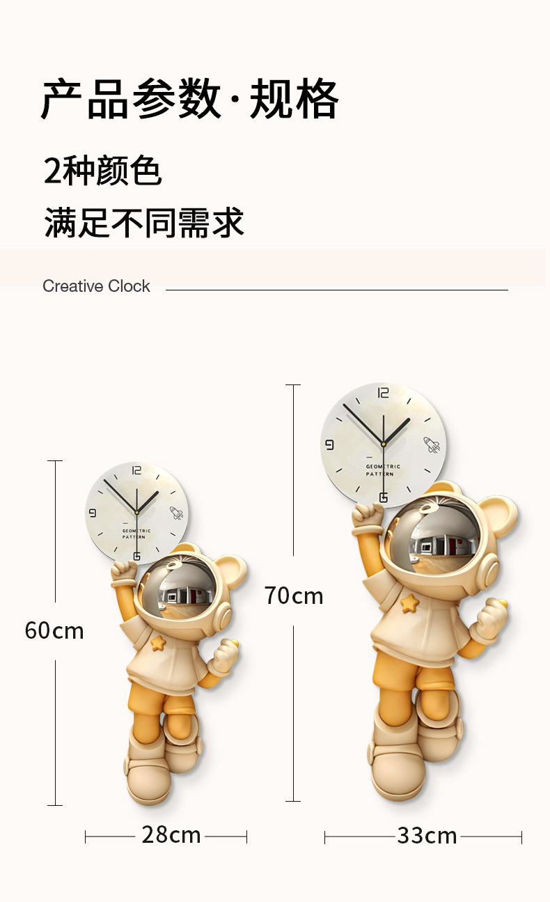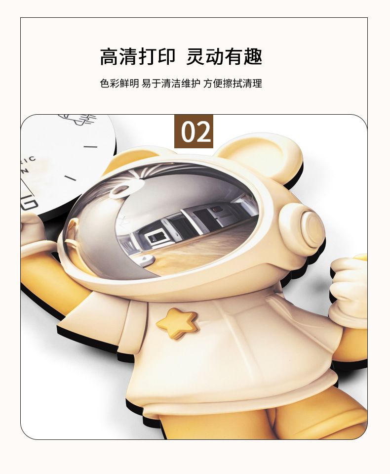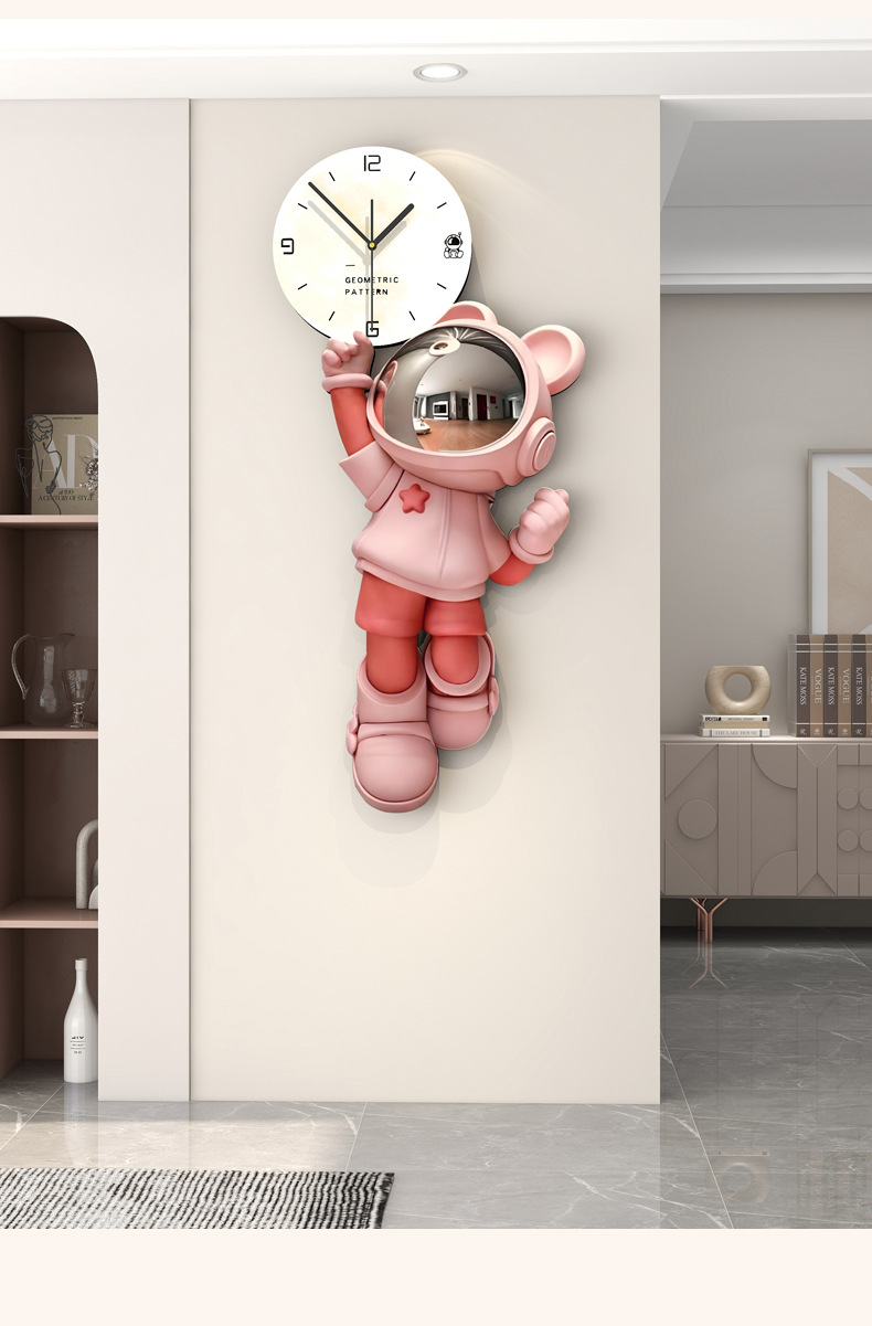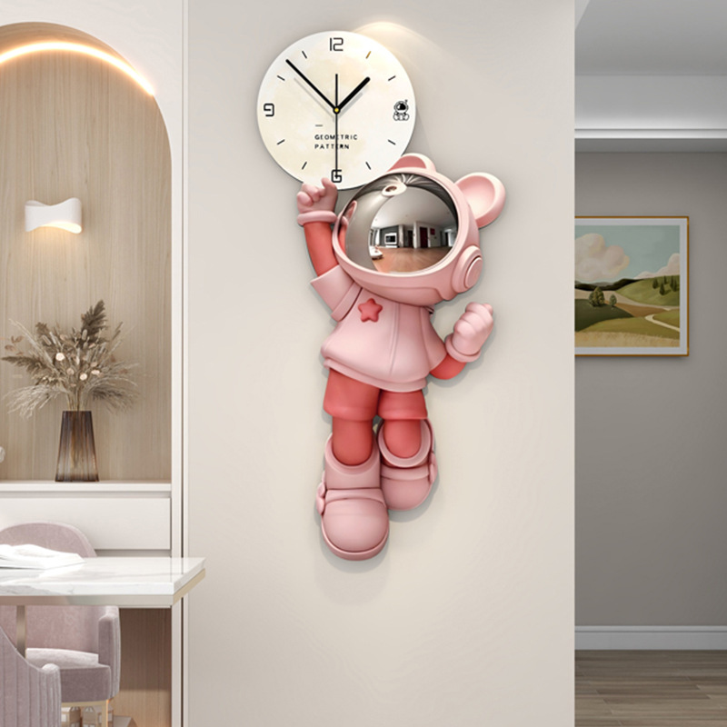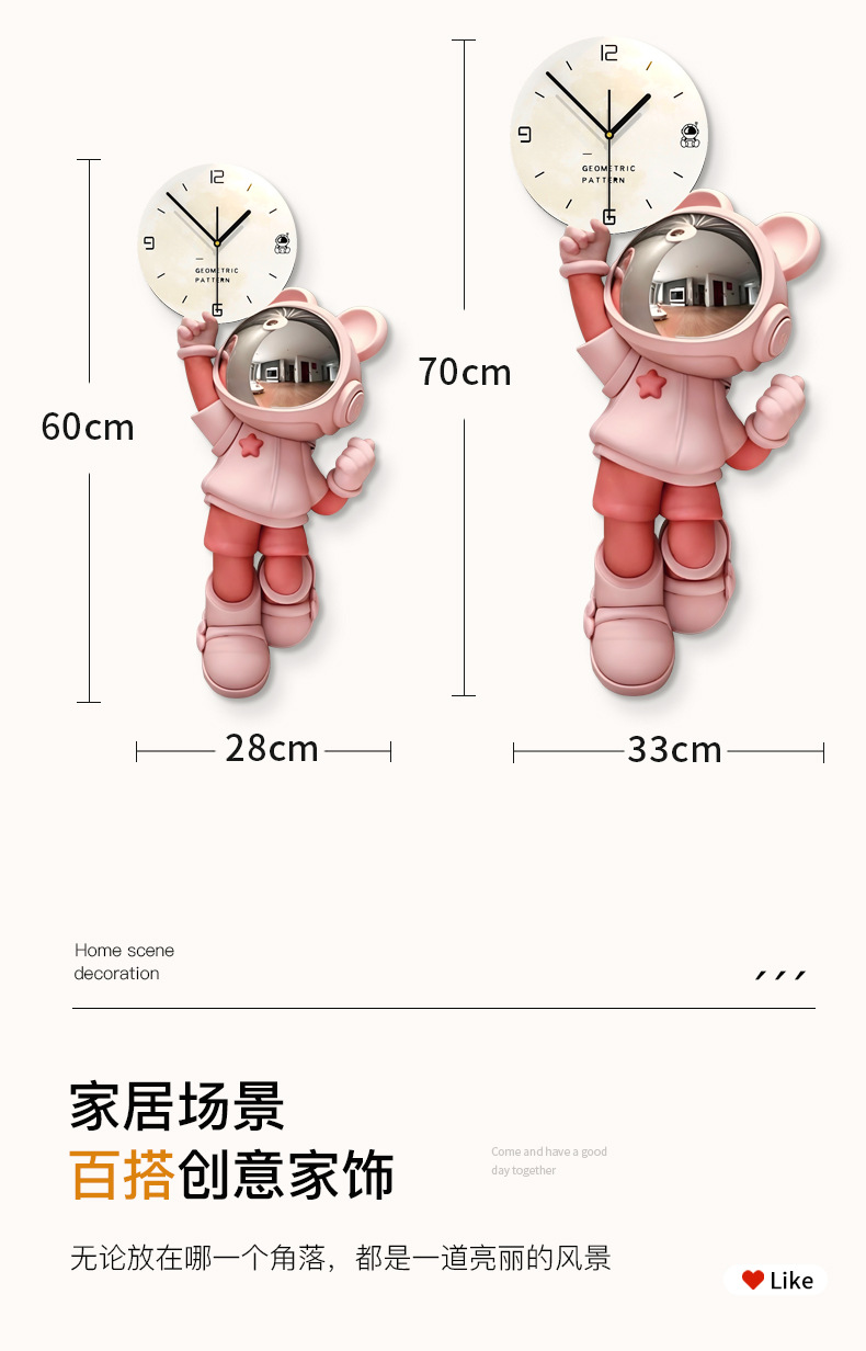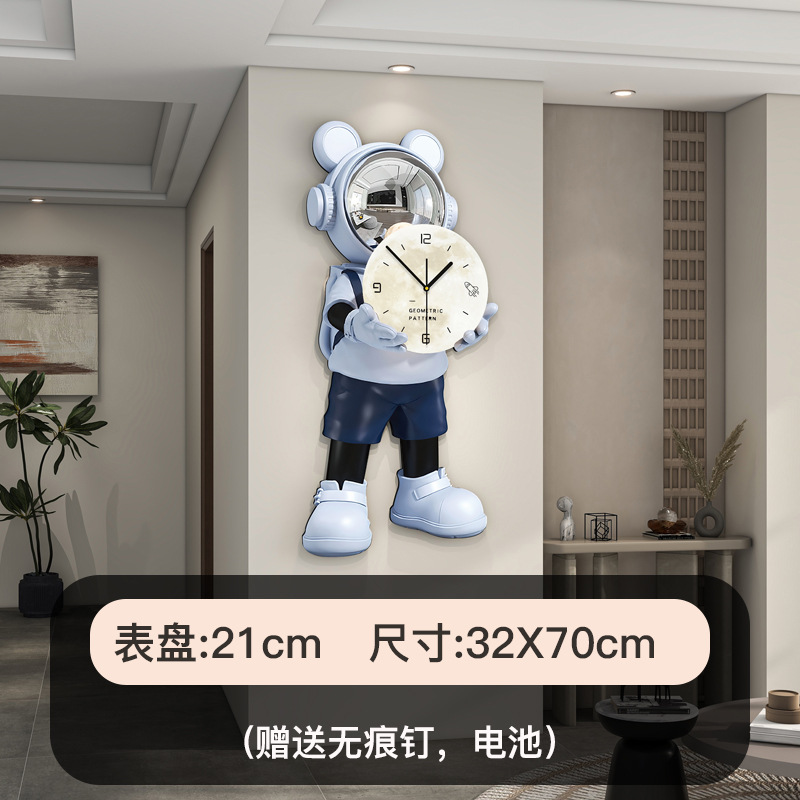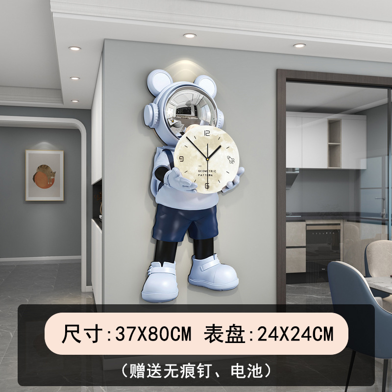宇航员卡通时钟高级感挂墙现代简约家用免打孔钟表挂钟客厅装饰钟