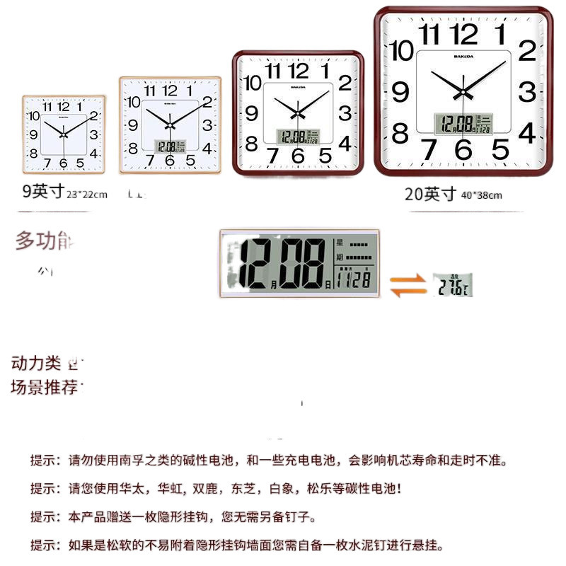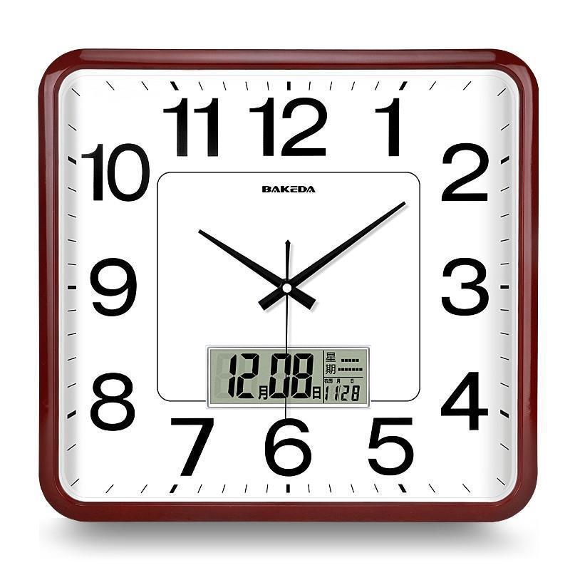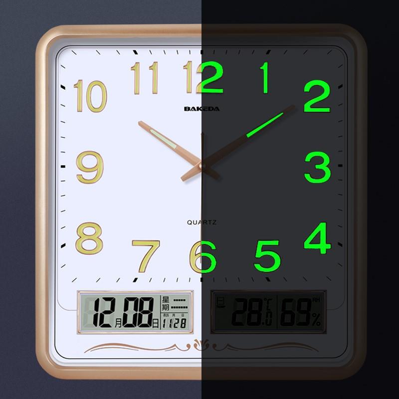 家用方形挂钟客厅钟表静音挂墙约时尚电子日历时钟石英钟表