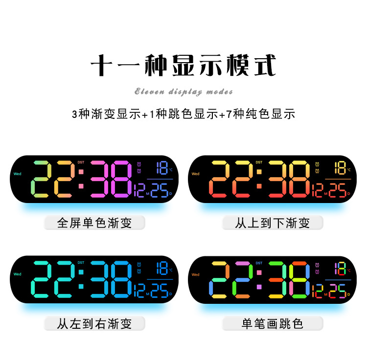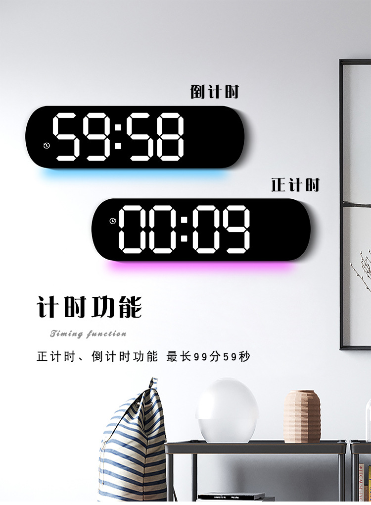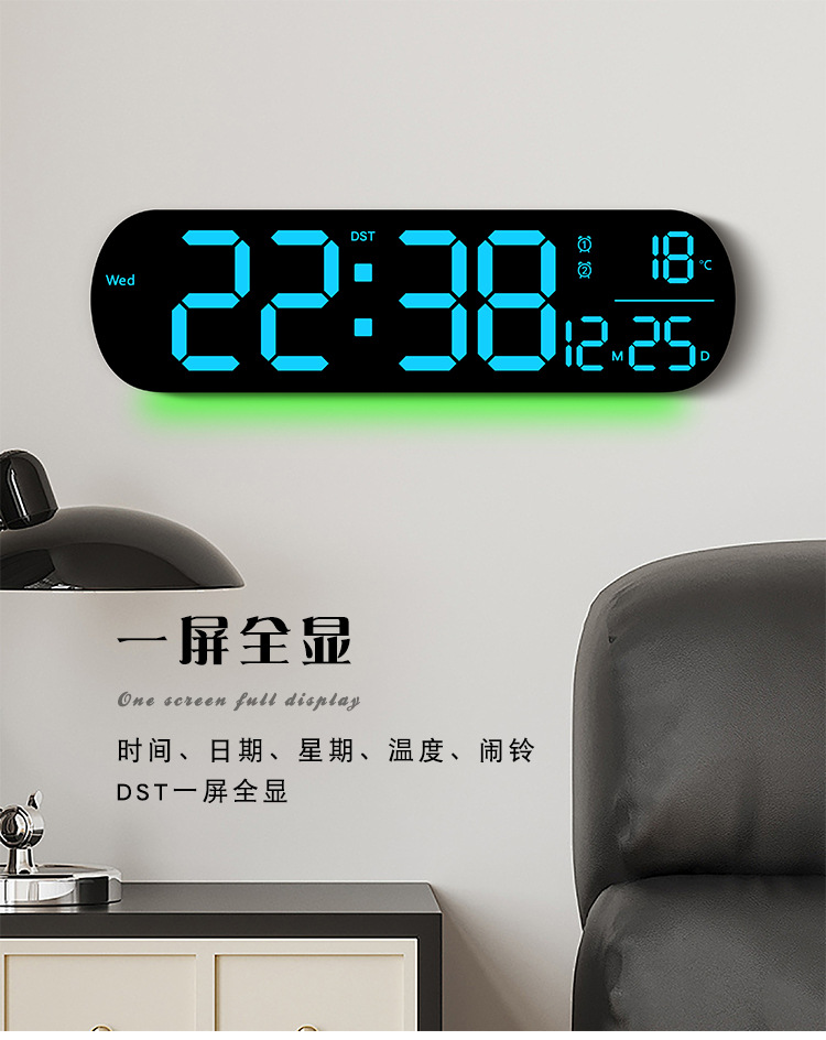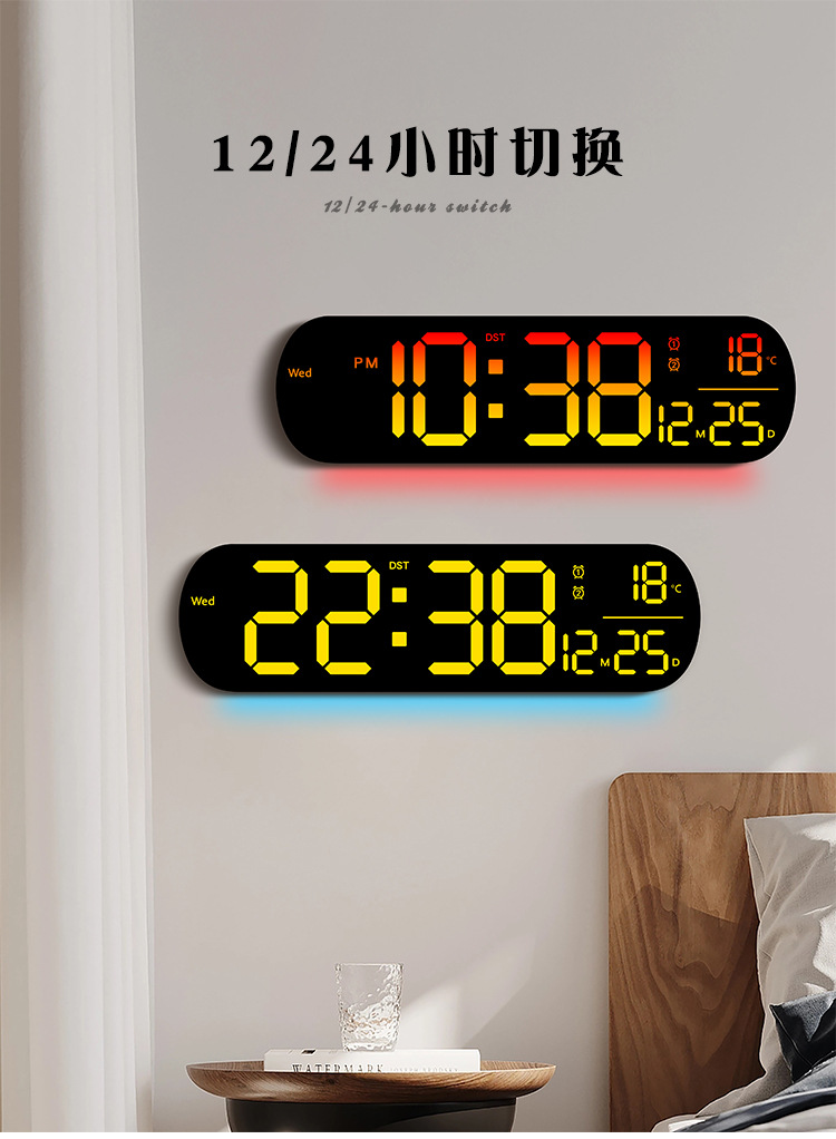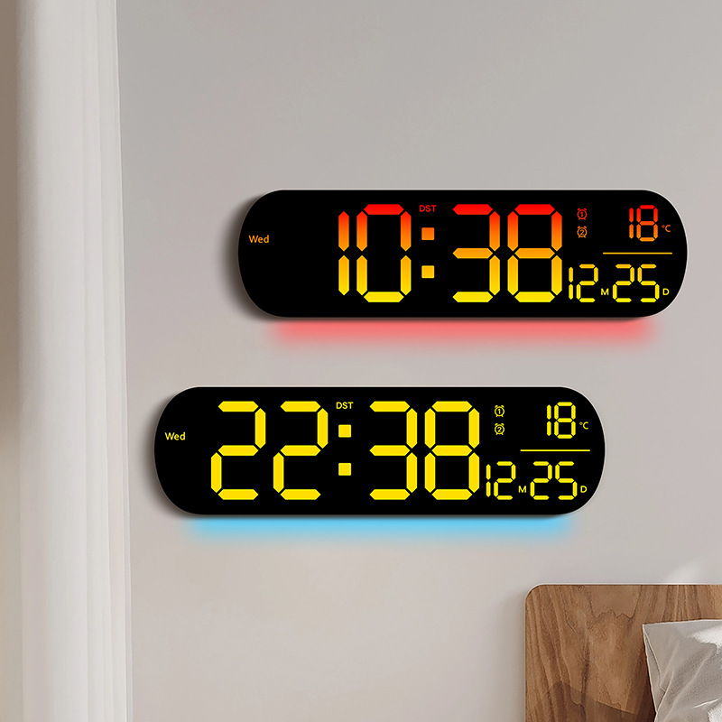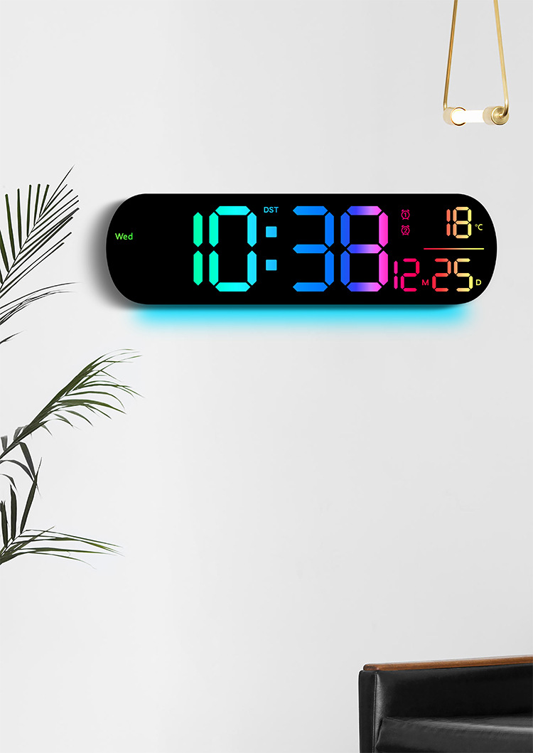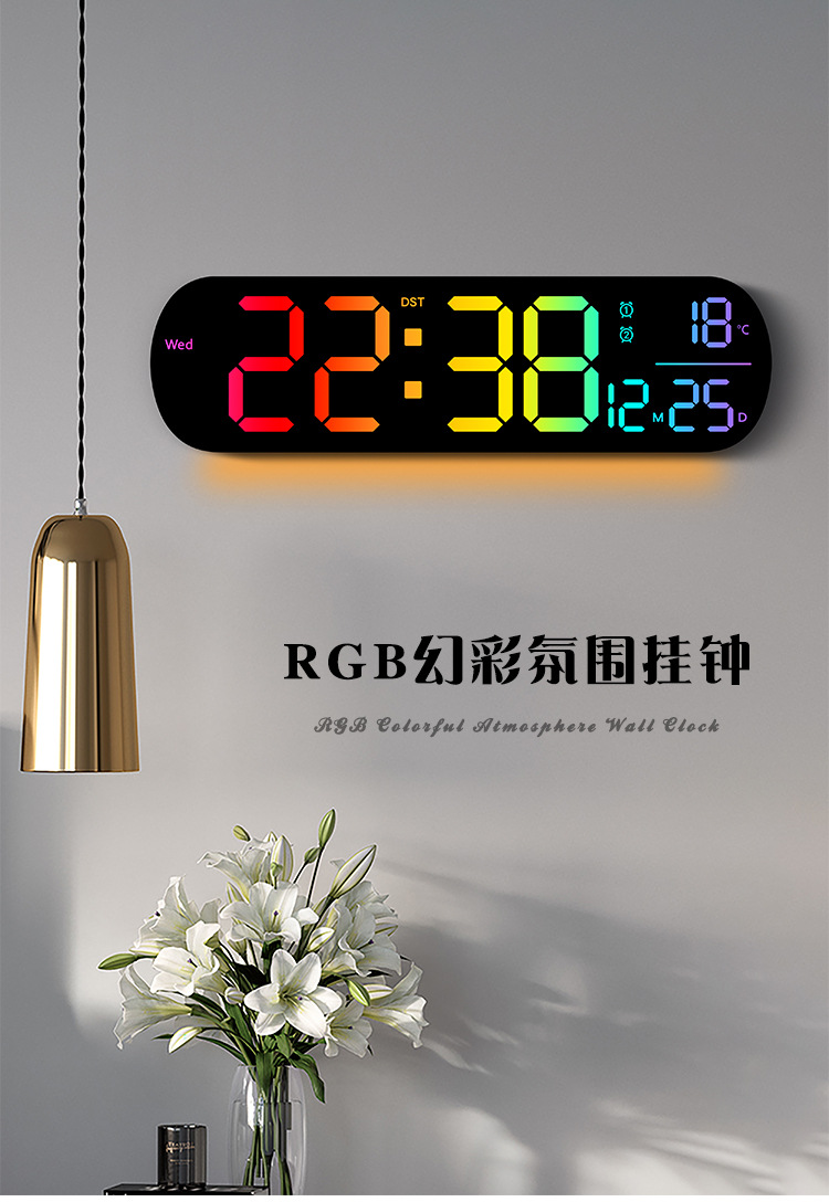 创意RGB变色挂钟多功能LED大屏时钟数字电子钟表客厅时钟6651R