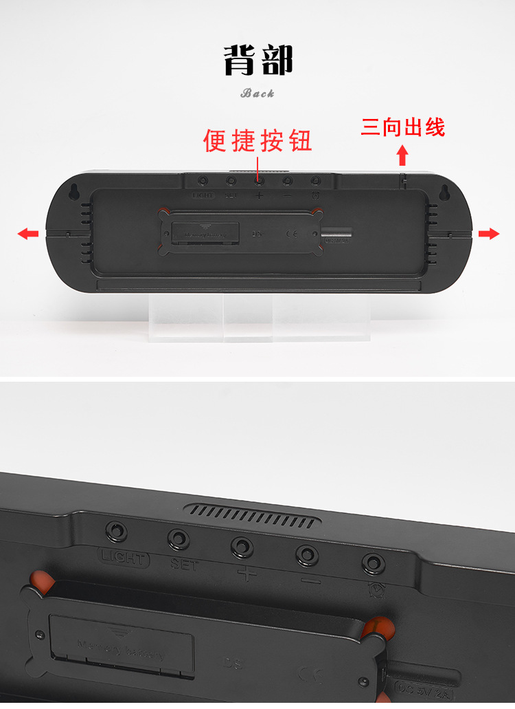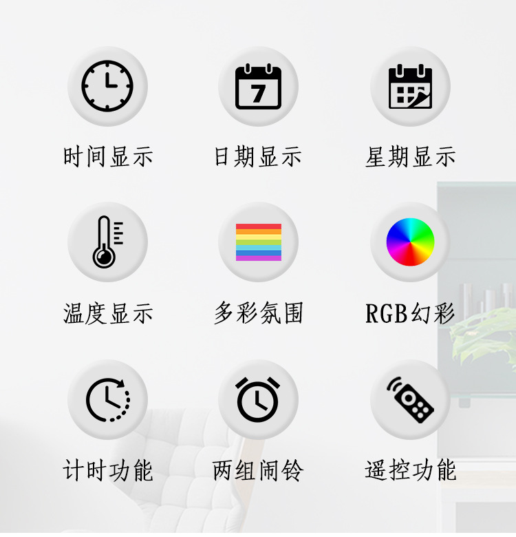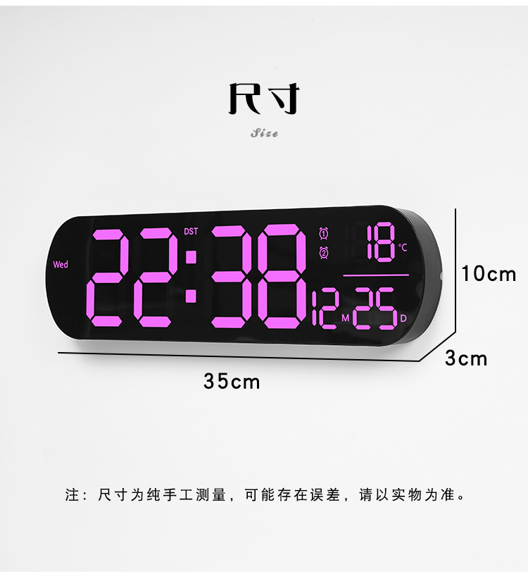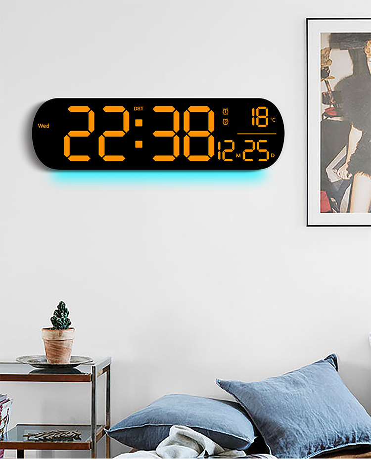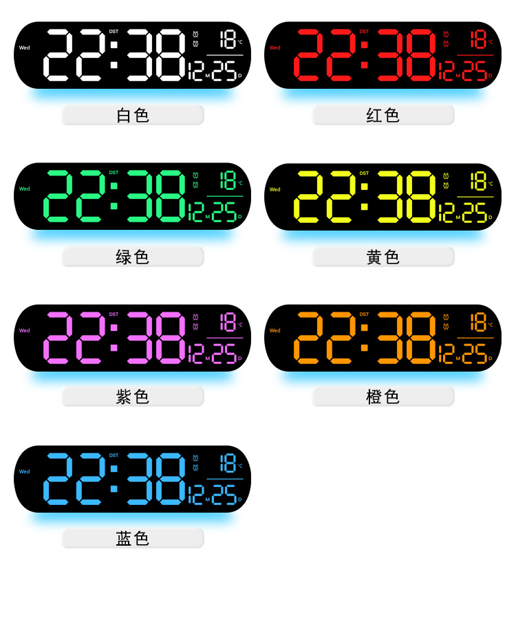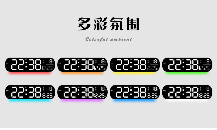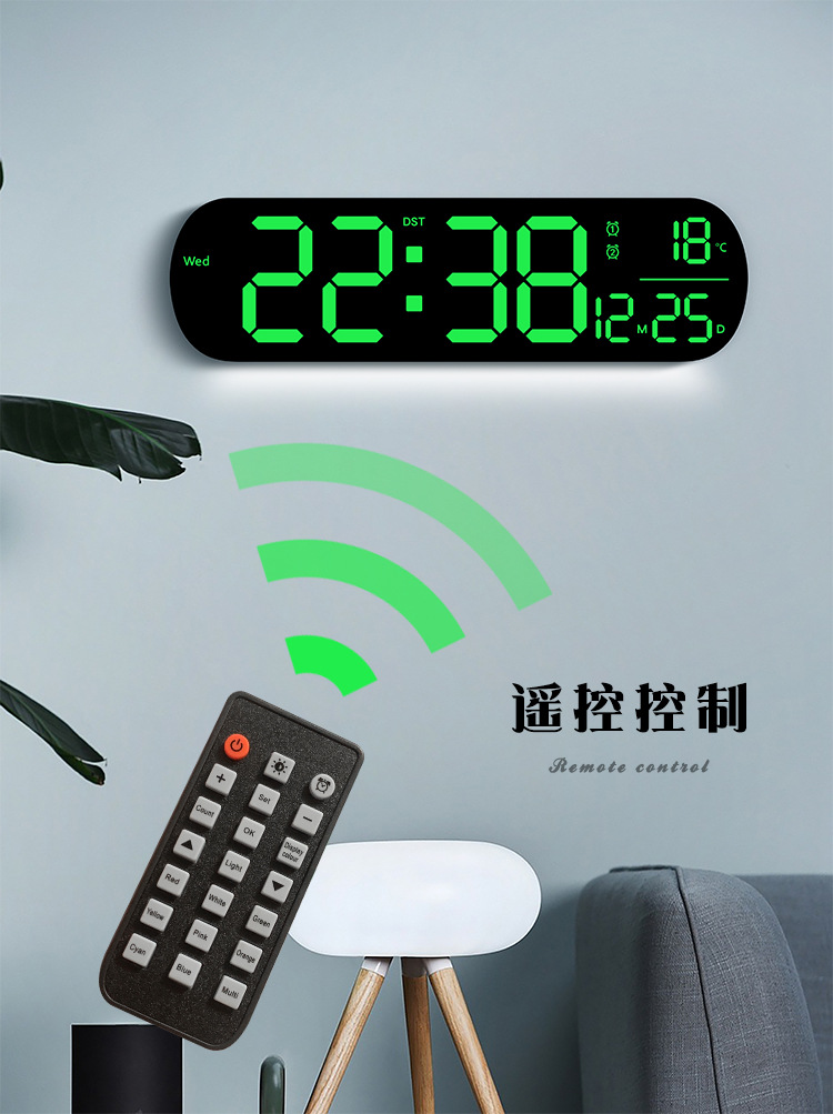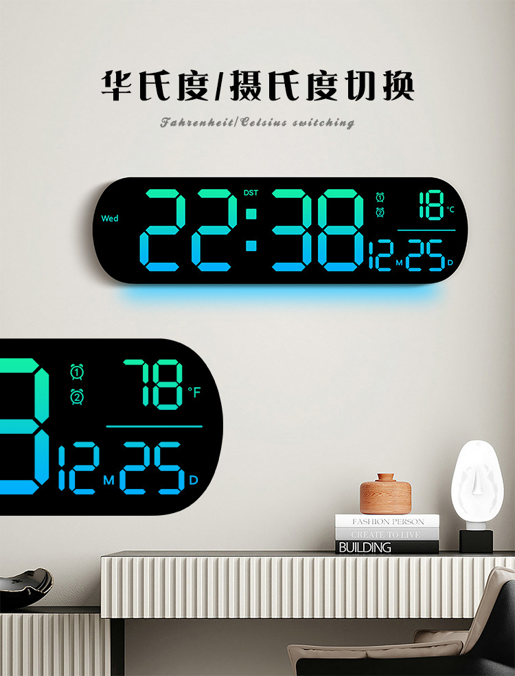 创意RGB变色挂钟多功能LED大屏时钟数字电子钟表客厅时钟6651R
