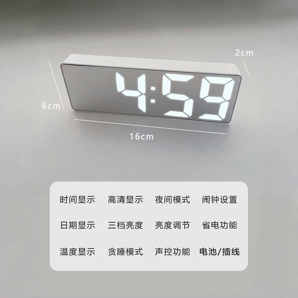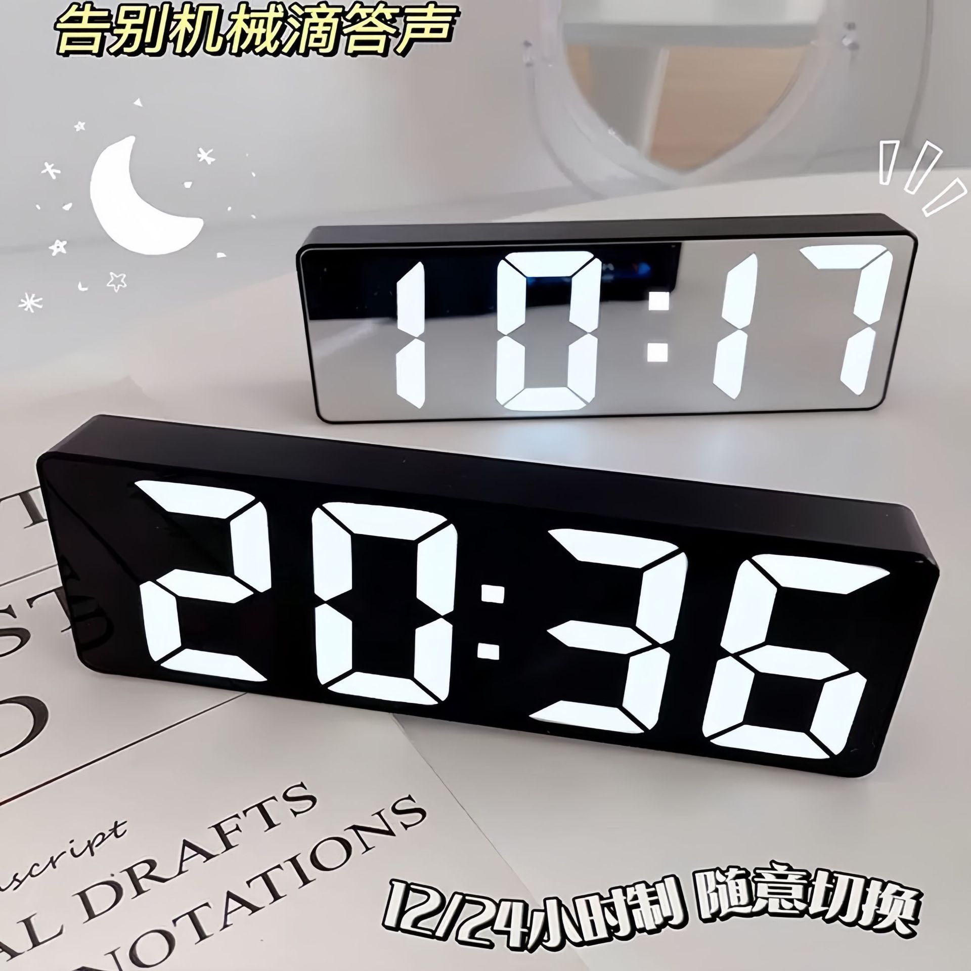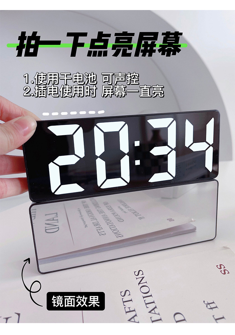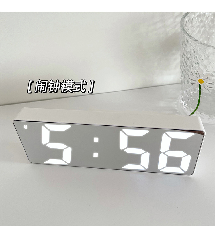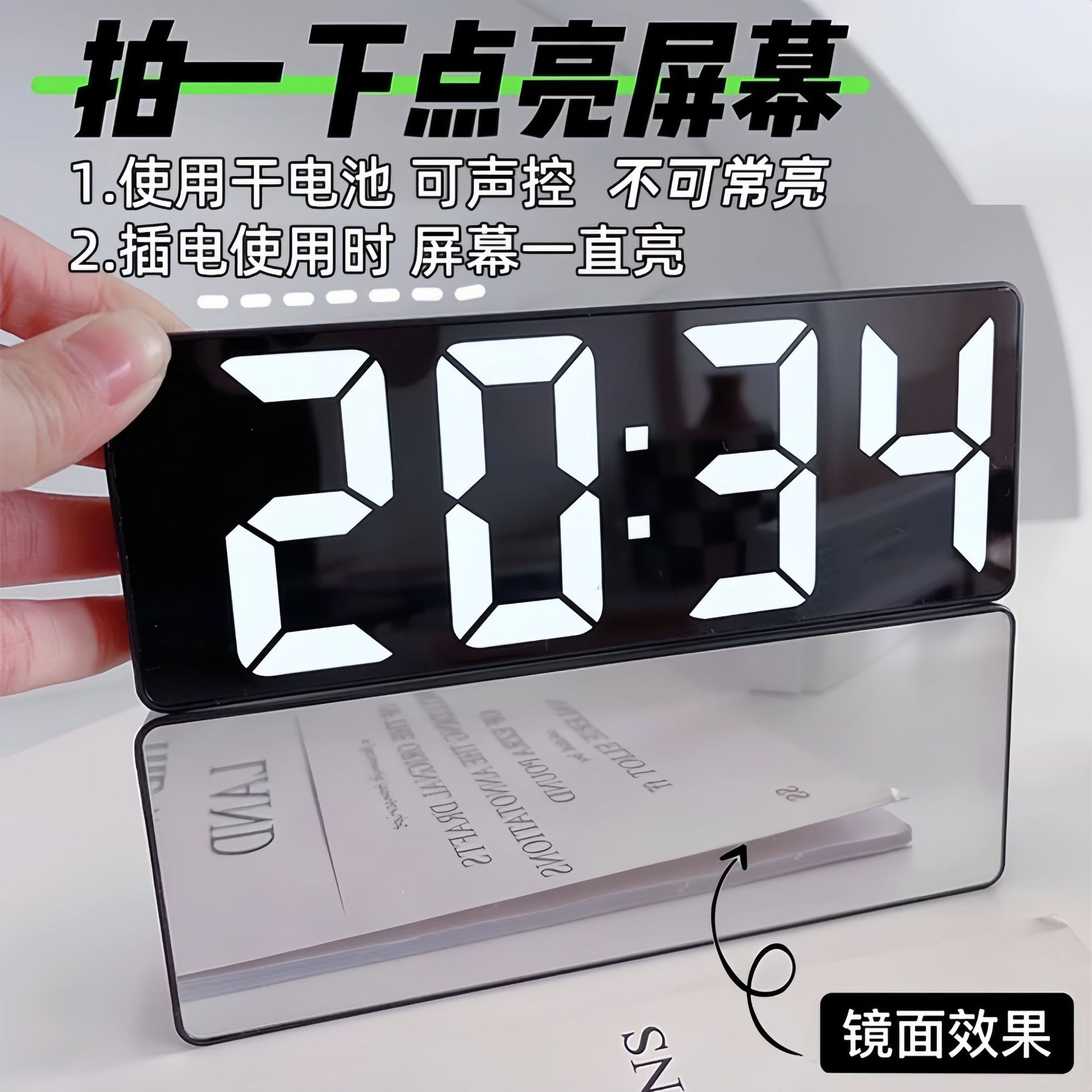 镜面时钟闹钟桌面静音智能钟计时间显示器卧室数字电子钟摆件台式