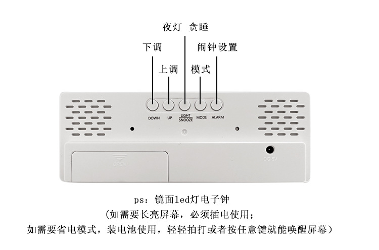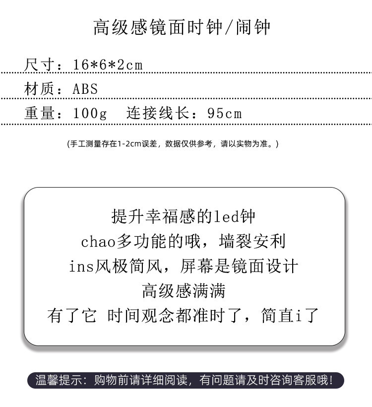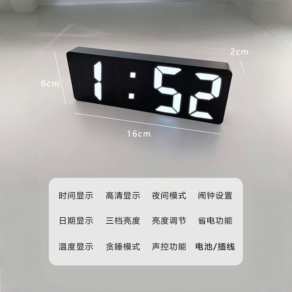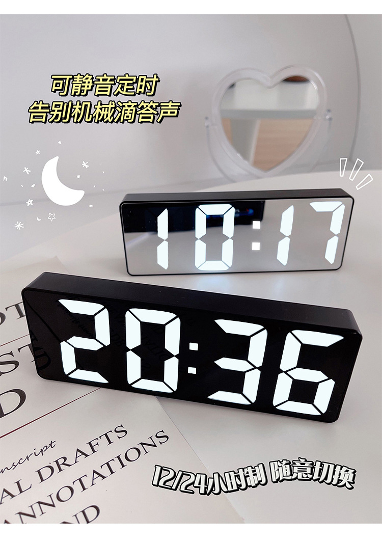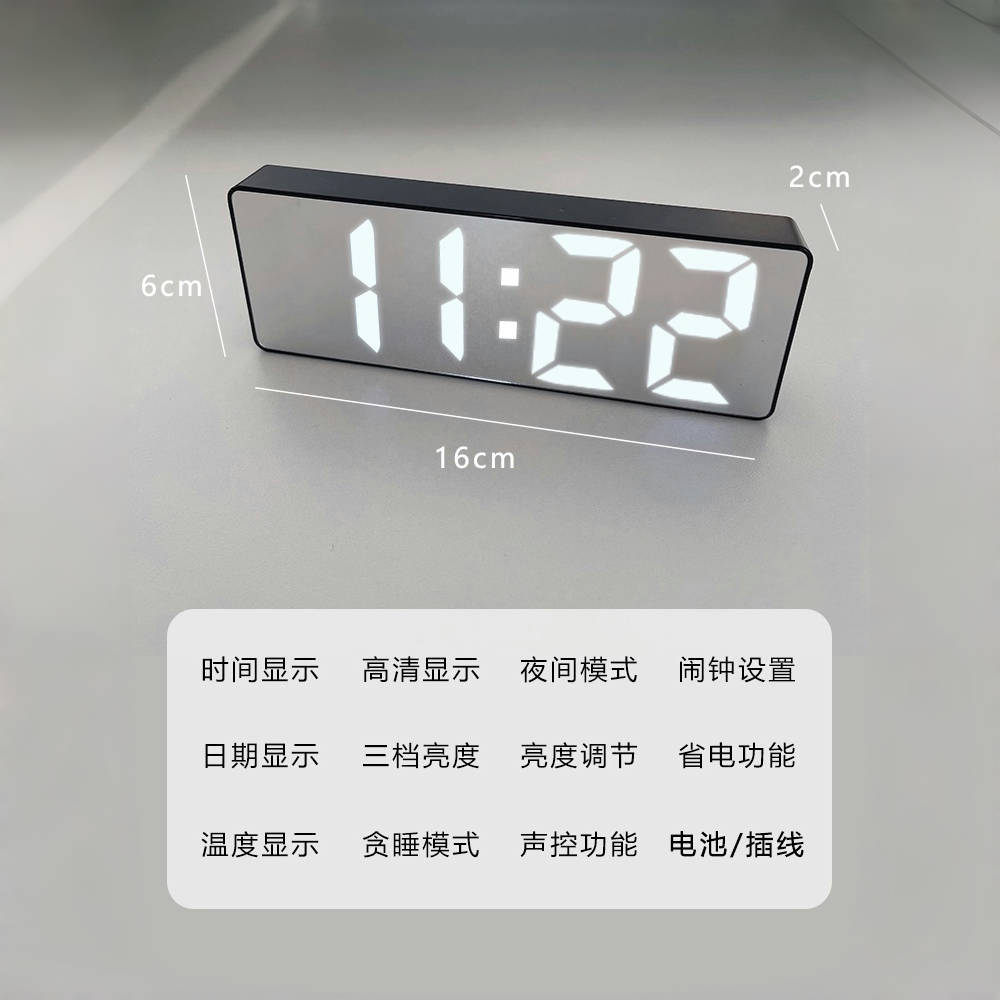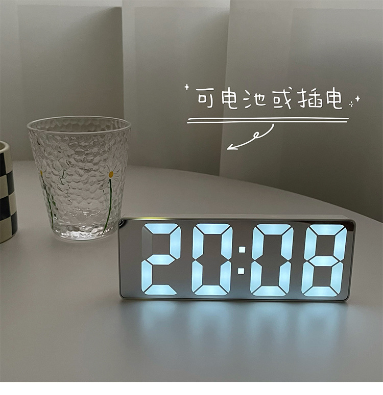 镜面时钟闹钟桌面静音智能钟计时间显示器卧室数字电子钟摆件台式