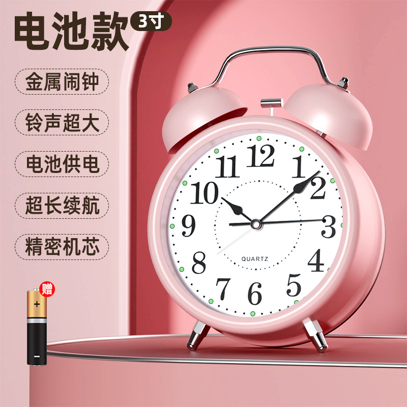 【3英寸简约粉】+【走时静音】【铃声超大】+送电池