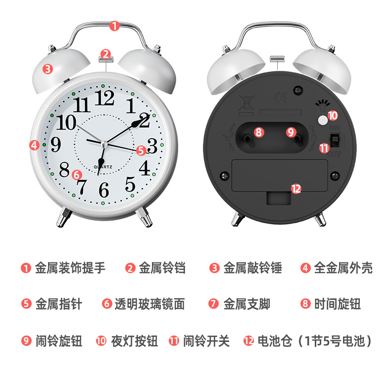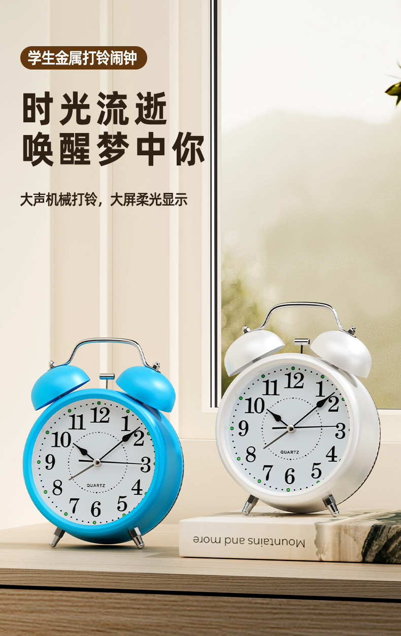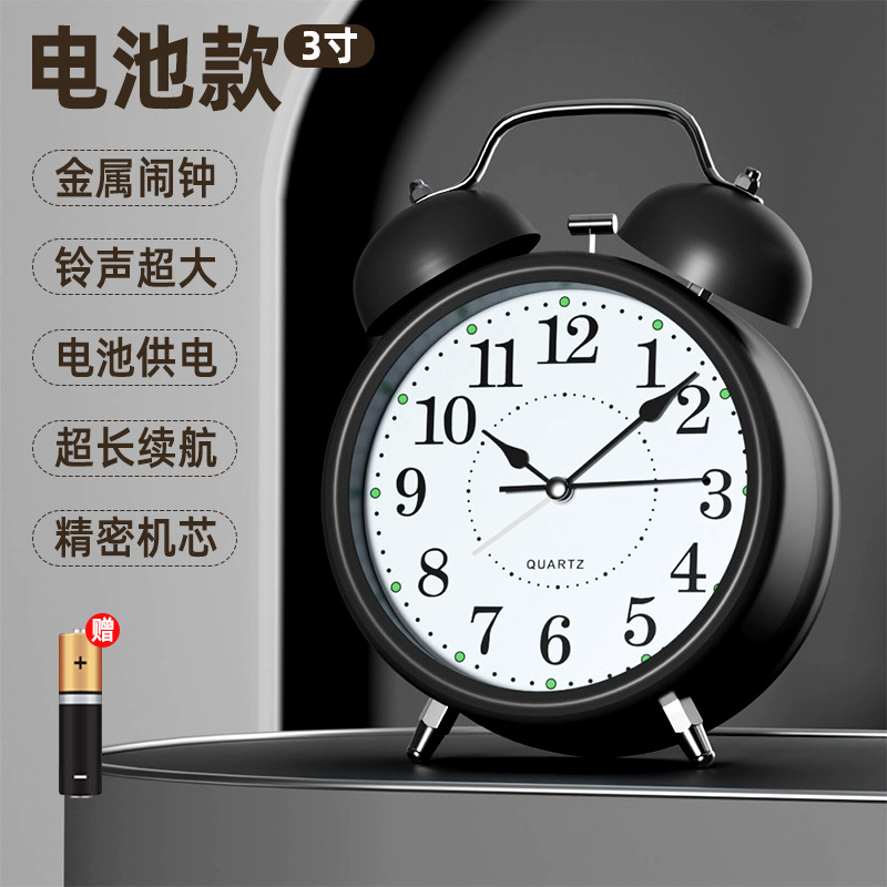闹钟5号电池学生叫醒起床神器2025新款闹铃床头台式高颜值小时钟