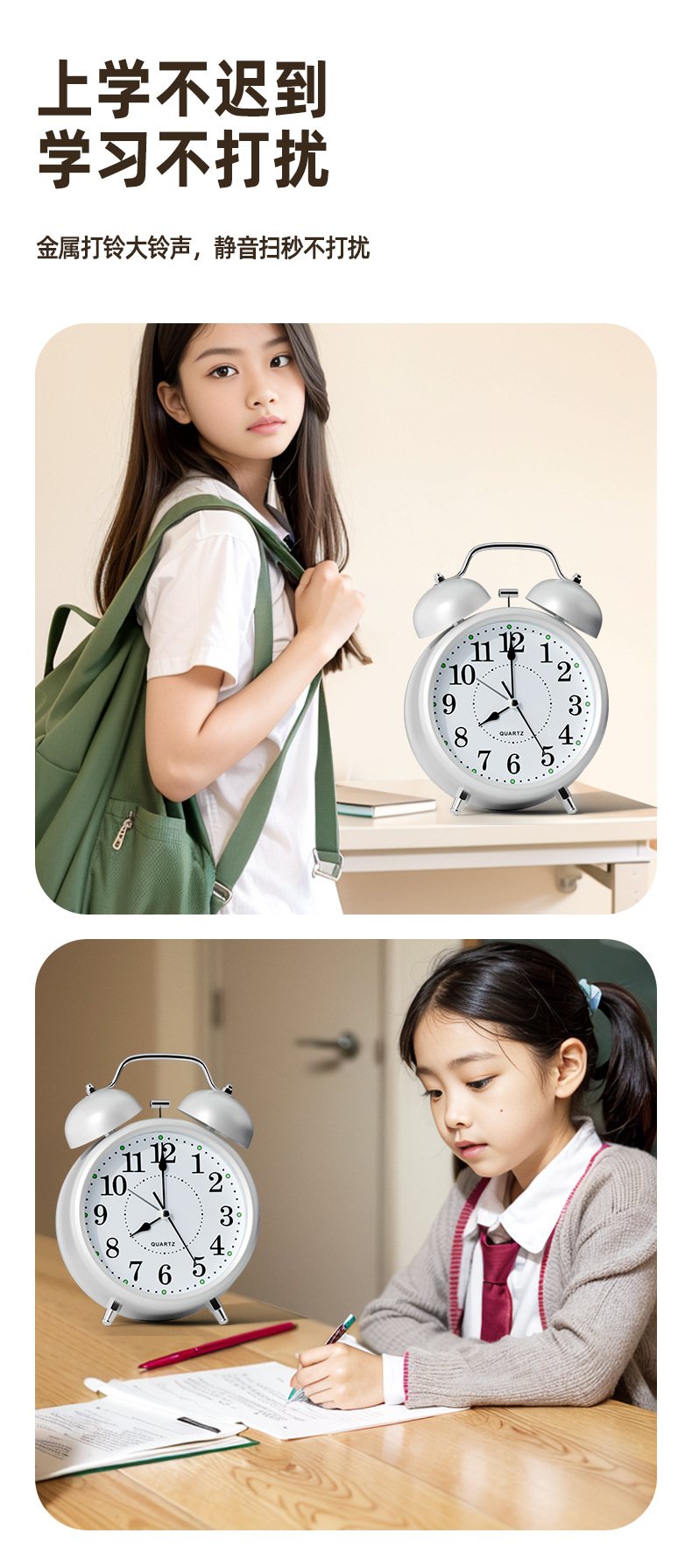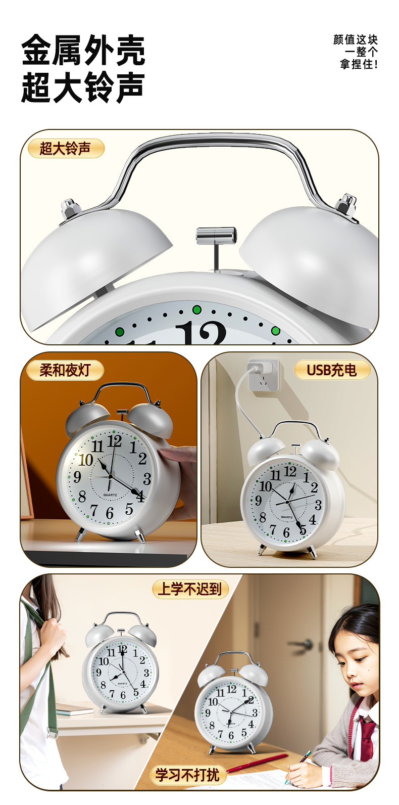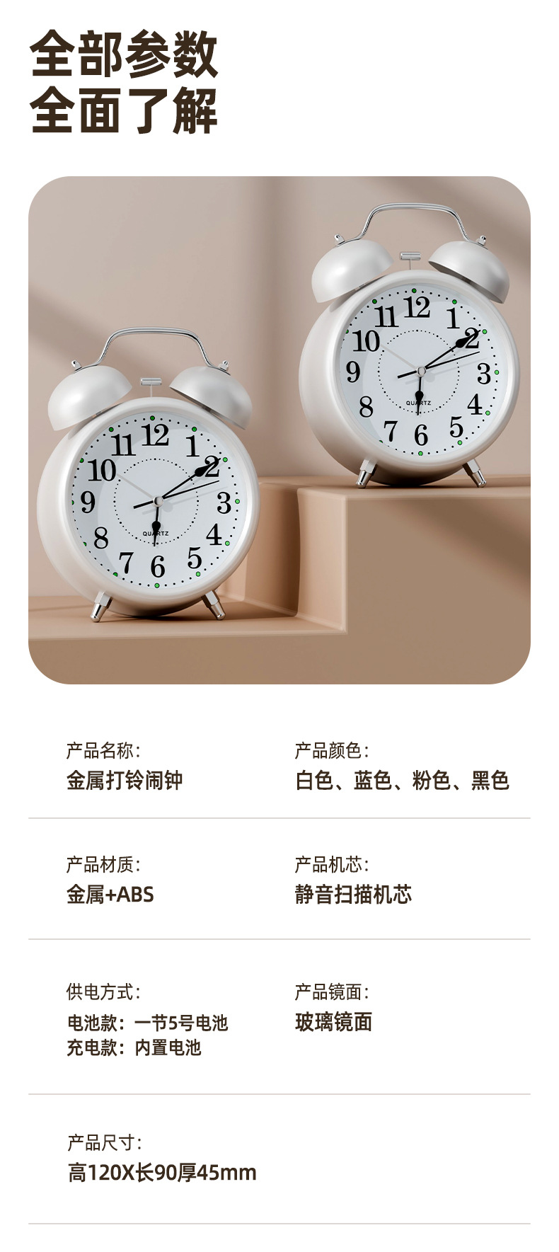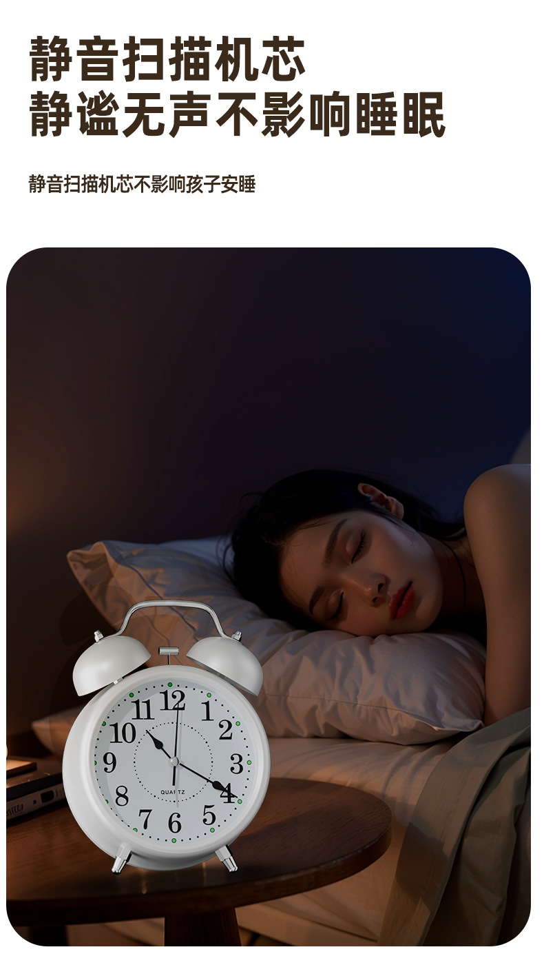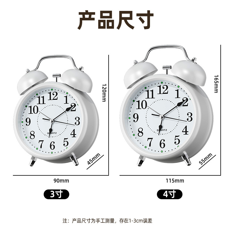 【3英寸简约白】+【走时静音】【铃声超大】+送电池