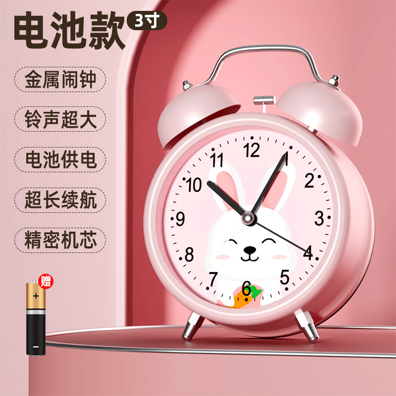 【3英寸胡萝卜兔简约粉】【走时静音】【铃声超大】+送电池