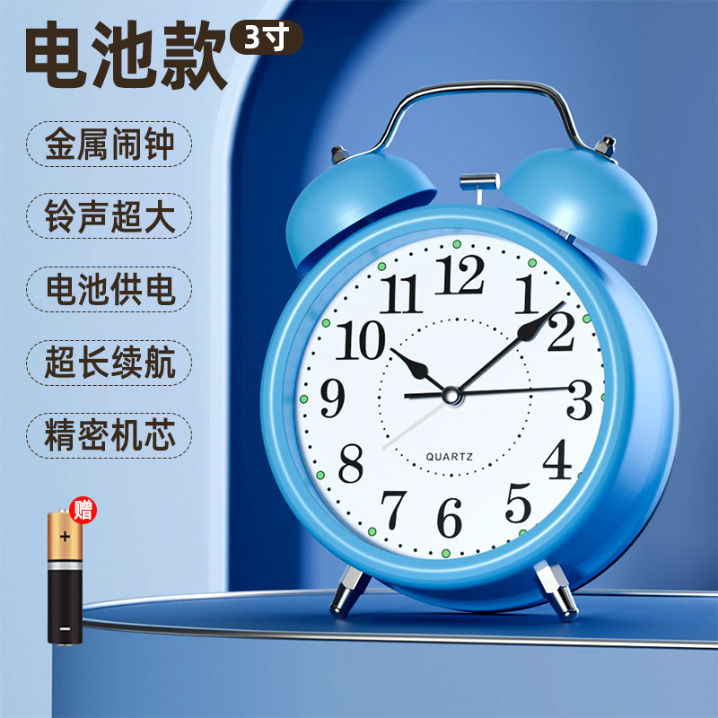 【3英寸简约蓝】+【走时静音】【铃声超大】+送电池