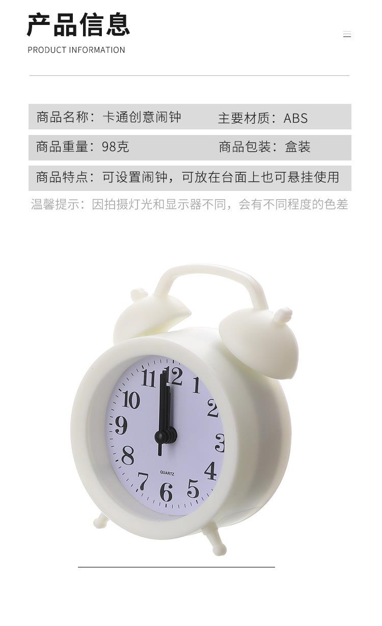 卡通儿童圆形闹钟桌面台式打铃钟表学生床头钟跳秒书桌钟表