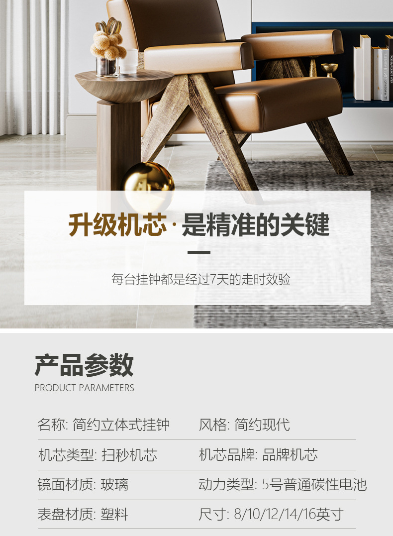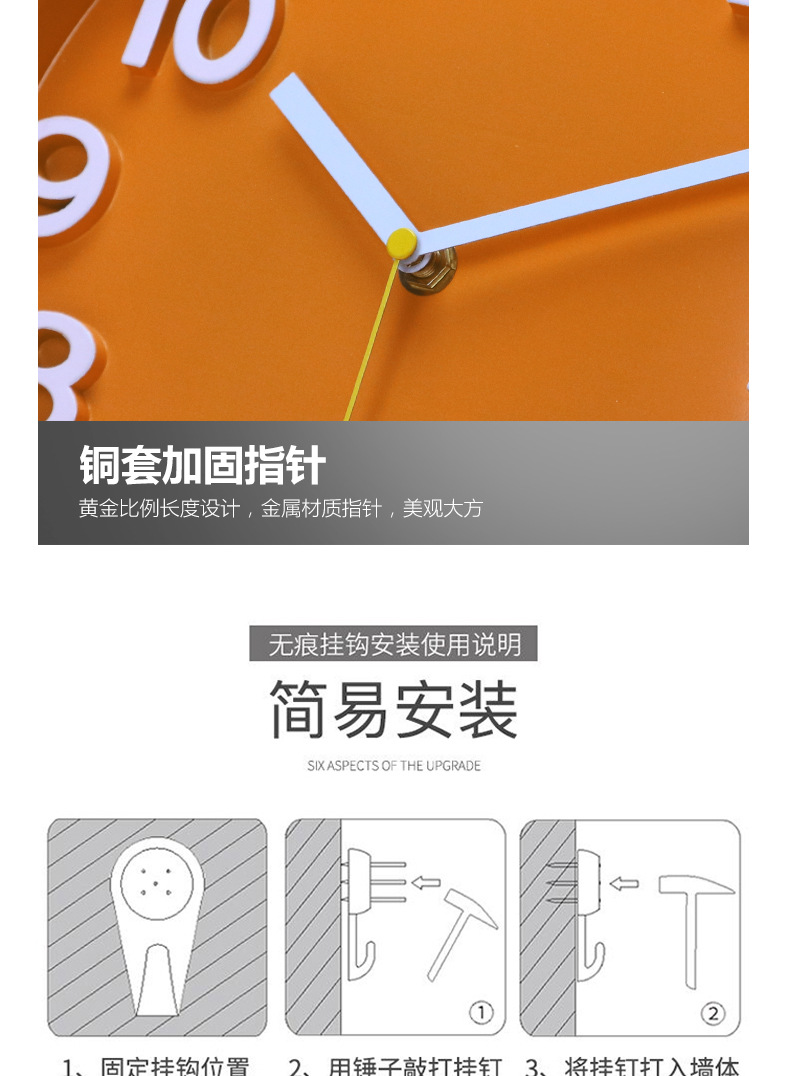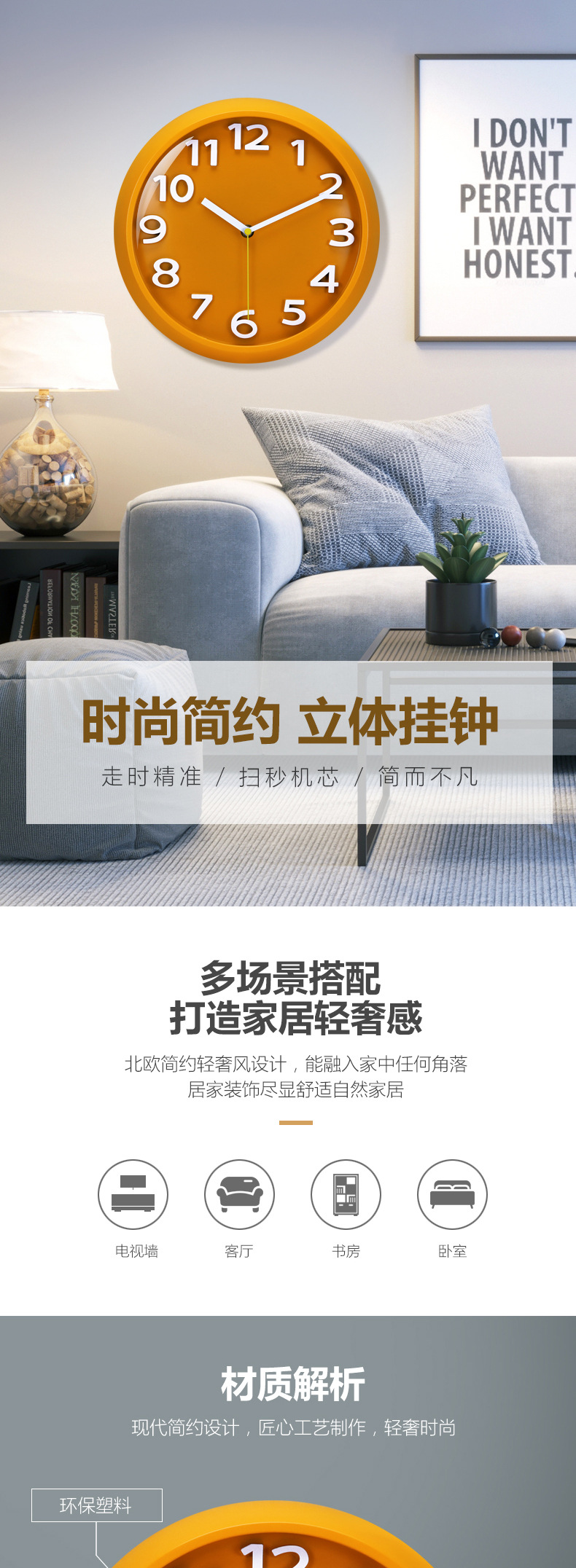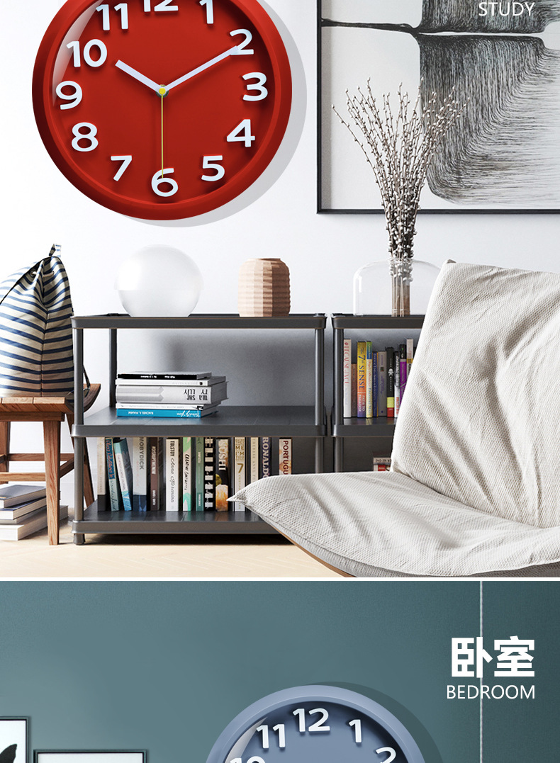 【14英寸35CM】简约时尚立体数字挂钟书房卧室时钟个性装饰钟表