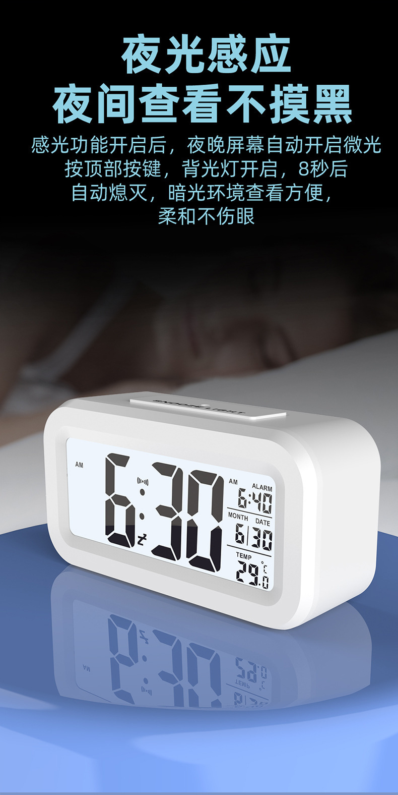 多功能智能电子钟夜光聪明钟LCD电子学生数字定时闹钟ins