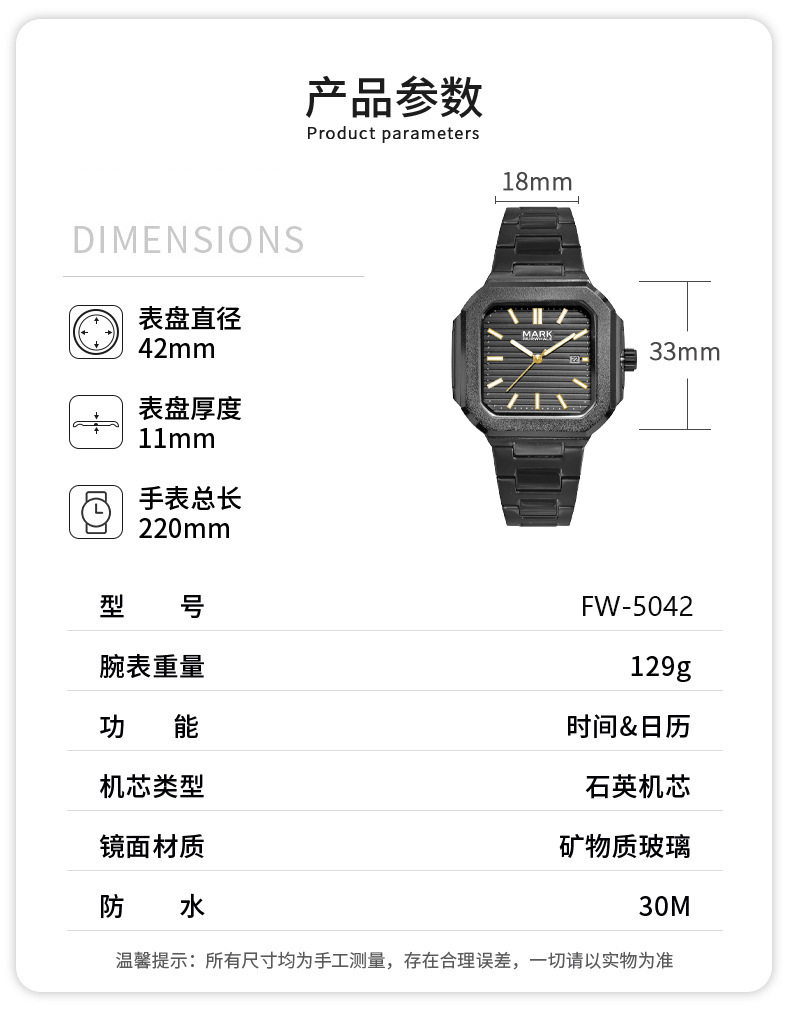 马克华菲品牌手表鹦鹉螺系列防水方形男士石英表单裸表