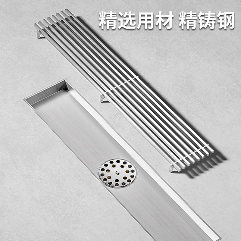 长条地漏304不锈钢拉丝银卫生间淋浴全铜芯防臭长方形大排量通用