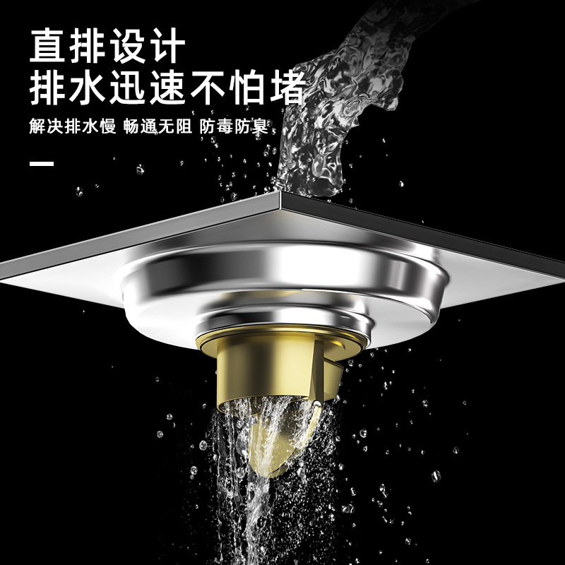 304不锈钢防臭隐形地漏拉丝银全铜地漏芯卫生间淋浴房洗衣机两用