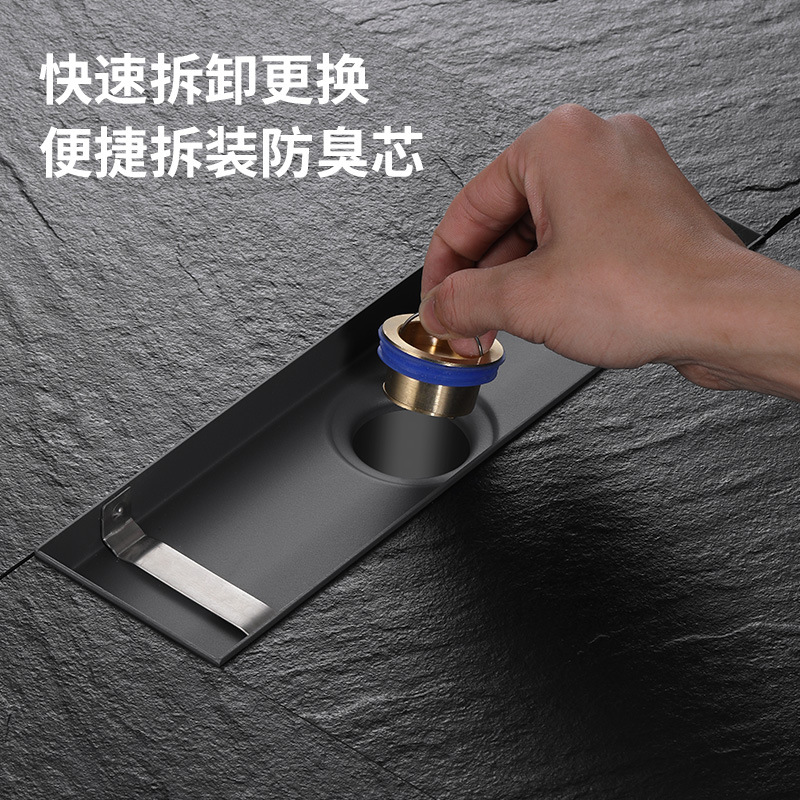 304不锈钢枪灰隐形地漏长条形下水道淋浴房卫生间防臭隐藏式长款